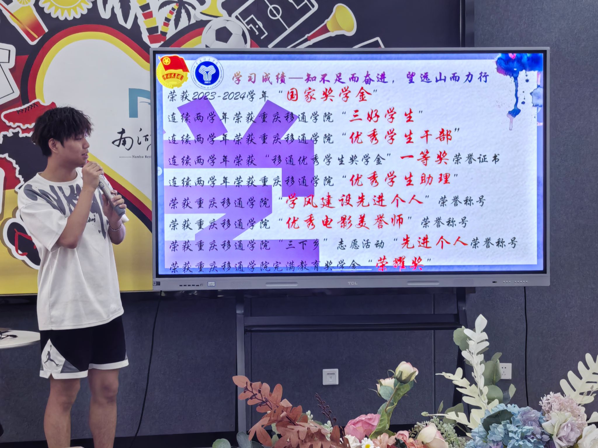 随后,学霸代表2022 级通信工程志向 2 班秦梓淞、3 班陈金桥进行了以“从 “普通” 到 “连获第一”,我的奖学金进阶之路”为主题的微分享讲座,他们围绕时间规划、课堂效率提升、团队互助等方面展开分享,以自身经历为同学们提供可借鉴的学习方法,强调 “自律” 与 “集体协作” 在学业与班级建设中的重要性。