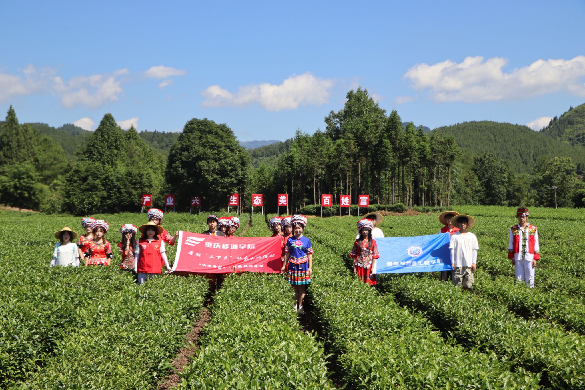 每年的盛夏时节,武陵山脉的云雾间总弥漫着沁人的茶香,它不仅浸润着峨溶镇的青山绿水,更承载着乡村振兴的希望。为探索产业升级之路,2025年7月4日,重庆移通学院通信与信息工程学院“峨溶茶探”乡村振兴促进团奔赴大坪茶园基地与茶厂,开启了一场与“茶”同行的乡村振兴实践。