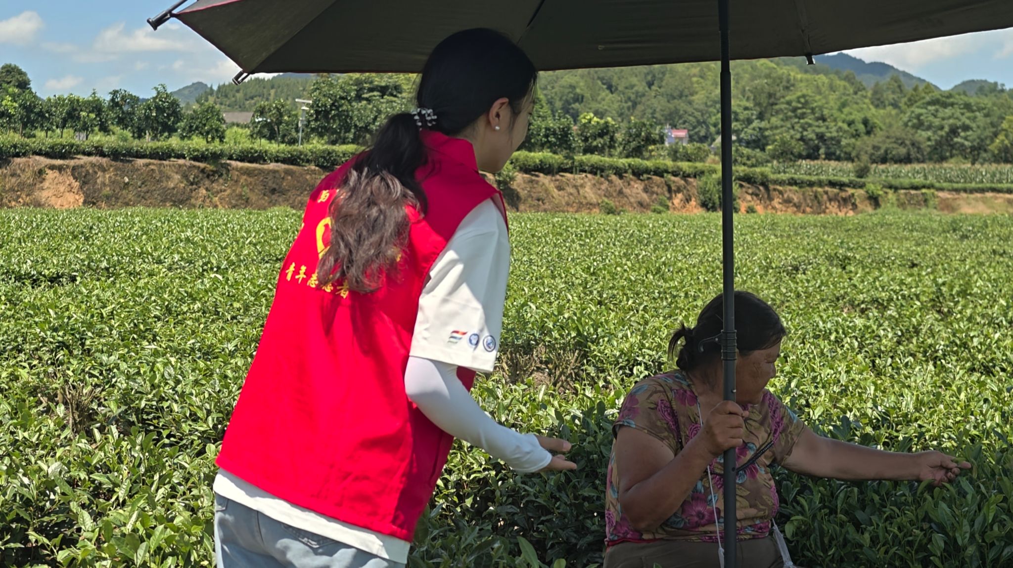 茶农们头戴草帽,腰挎竹篓,穿梭于层层叠叠的茶树间,他们遵循“一芽两叶”的严苛标准,指尖轻捻,将嫩绿的茶芽收入篓中。见此情景,峨溶茶探们围绕大坪村茶叶产业发展展开采访。茶农满怀自豪地说,以前大家不愿意采茶、收茶,在政府的帮助下,如今一切都大不相同。峨溶镇政府不仅提供免费茶苗,还划分免费采摘区。大家摘下的每一片茶叶都能变成实实在在的收入。哪怕是在炎热的正午时分,依然能看到众多茶农在茶园里忙碌的身影,他们用汗水浇灌着这片充满希望的土地,也收获着属于自己的幸福与满足。