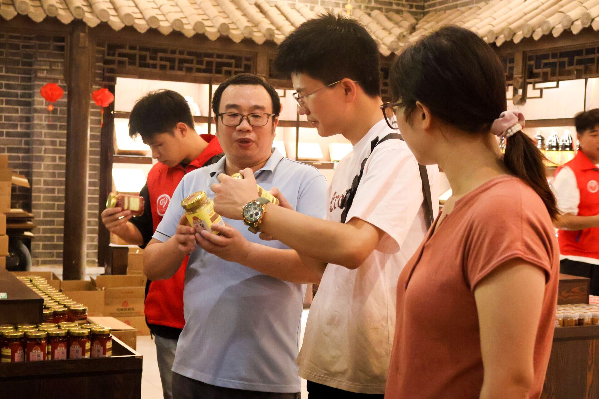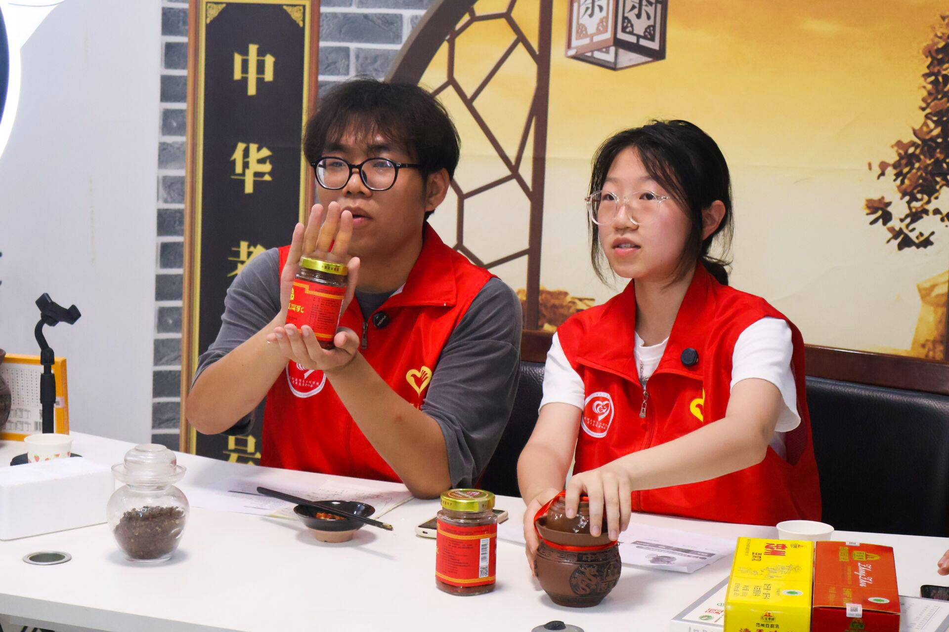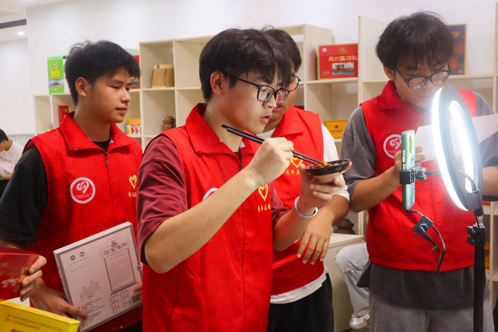 参观结束后,实践队架起直播设备,化身“非遗推荐官”。直播间内,忠州豆腐乳的醇厚底蕴被娓娓道来——从生态原料选取、独特发酵工艺,到屡获殊荣的品质认证,其独特风味跃然“屏”上。志愿者们还巧妙融入“忠”文化内涵,直播过程中更是加入忠州非遗矮人舞为在场的所有人加油助兴,使得每一笔订单不仅是商品交易,更是文化认同的传递。