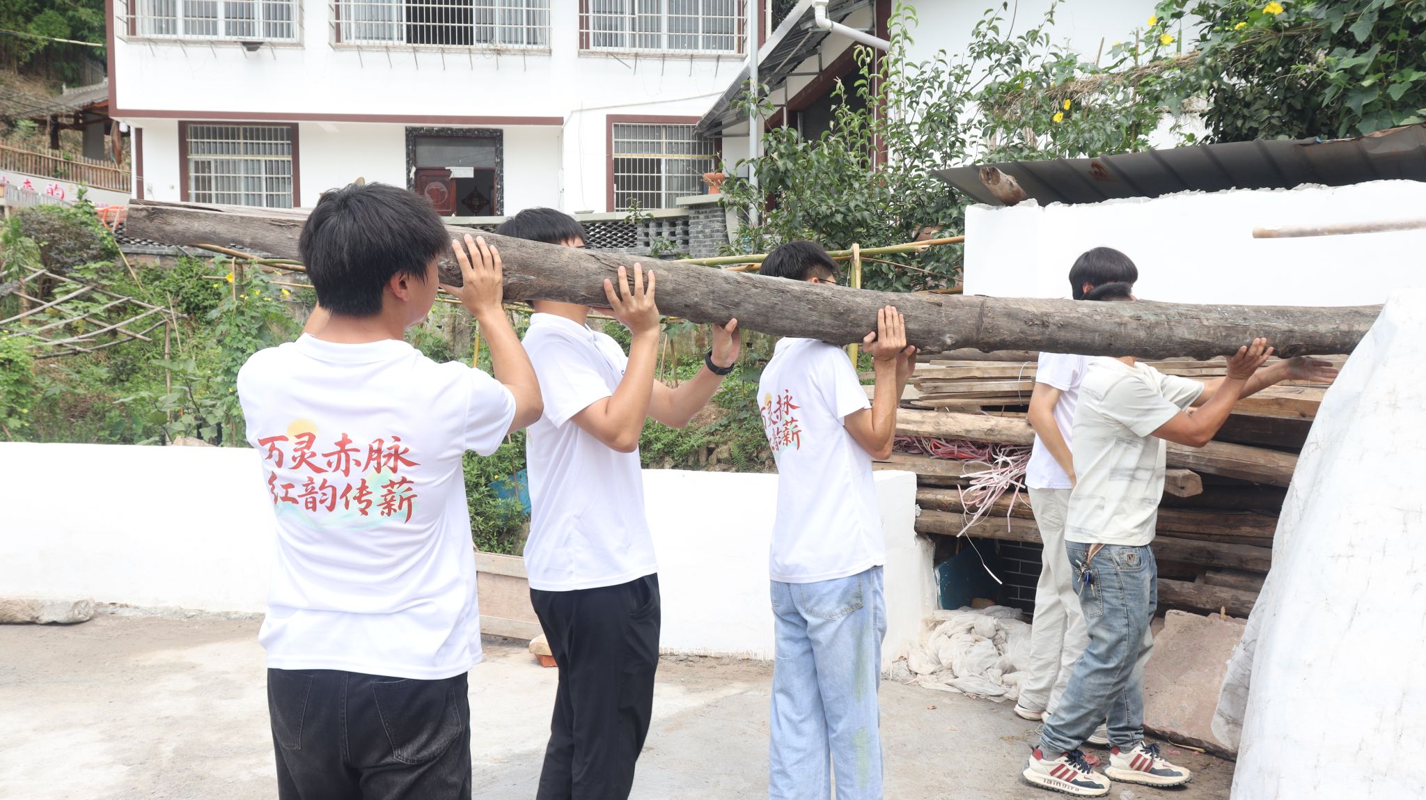 上午八点半,沙堡村党支部书记郑刚同志带着自制的手绘地图匆匆赶来:“咱们村正在创建巴蜀美丽庭院示范村,目前最缺的就是人手帮忙规整庭院。”了解到村里的实际需求后,同学们迅速行动。成员员骨干带头分成五个小组,有的拿着扫帚清理村民院落的杂草,有的用抹布仔细擦拭庭院围栏,还有的帮助独居老人搬运杂物。烈日下,汗水浸透了每个人的衣衫,但看到原本杂乱的庭院逐渐变得整洁美观,听着村民们一声声真诚的“谢谢”,大家都觉得所有的辛苦都化作了满满的成就感。