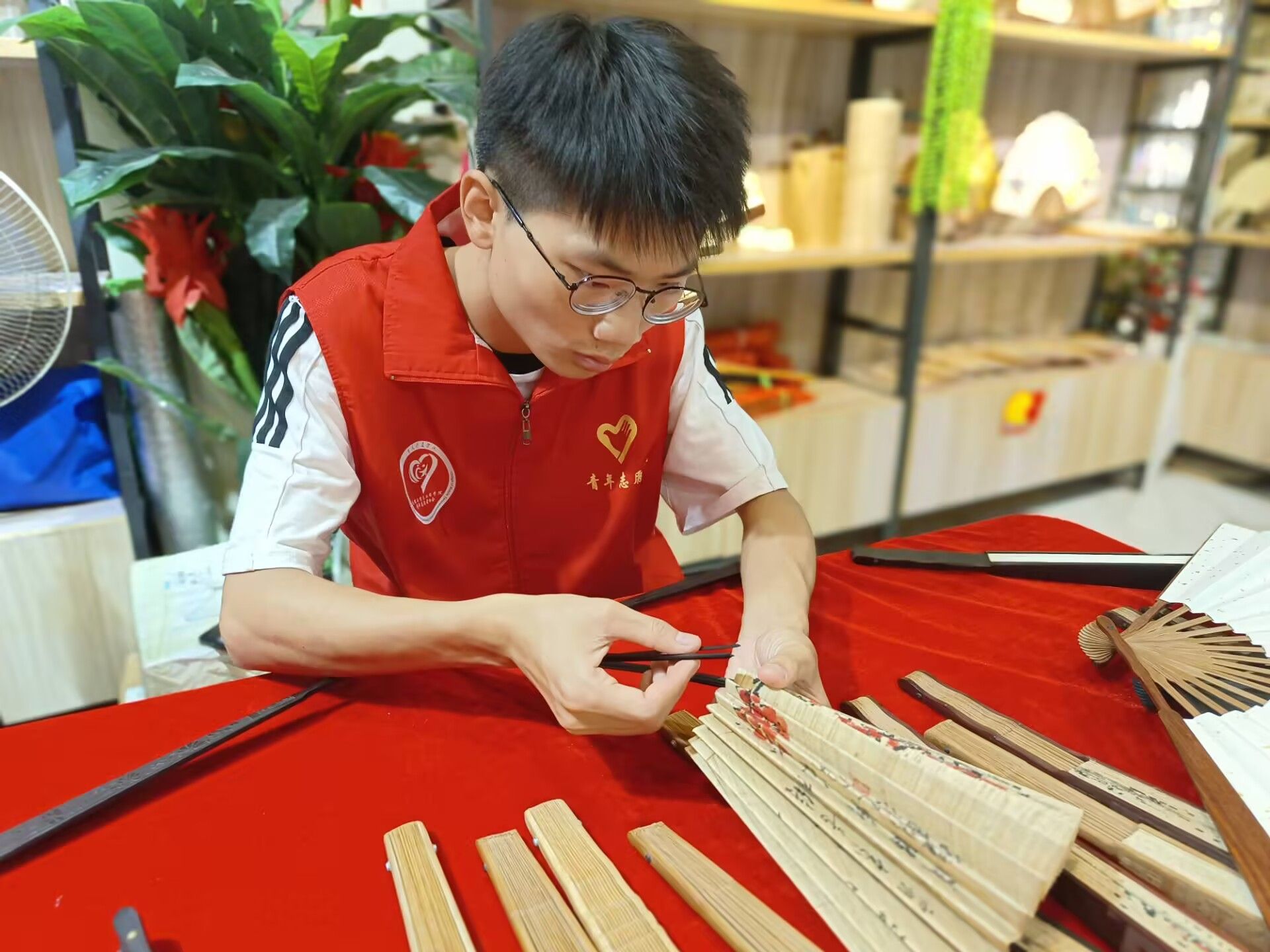 古镇斜阳里,折扇开合间藏着光阴的褶皱,麻花滚油中翻涌着烟火的传承。赵明虎师傅指尖的竹篾游弋如笔,在扇骨上勾勒出的不仅是花鸟,更是“老手艺人守得住清贫,耐得住寂寞”的执着——这与共产党人"板凳甘坐十年冷"的坚守,原是一脉相承。