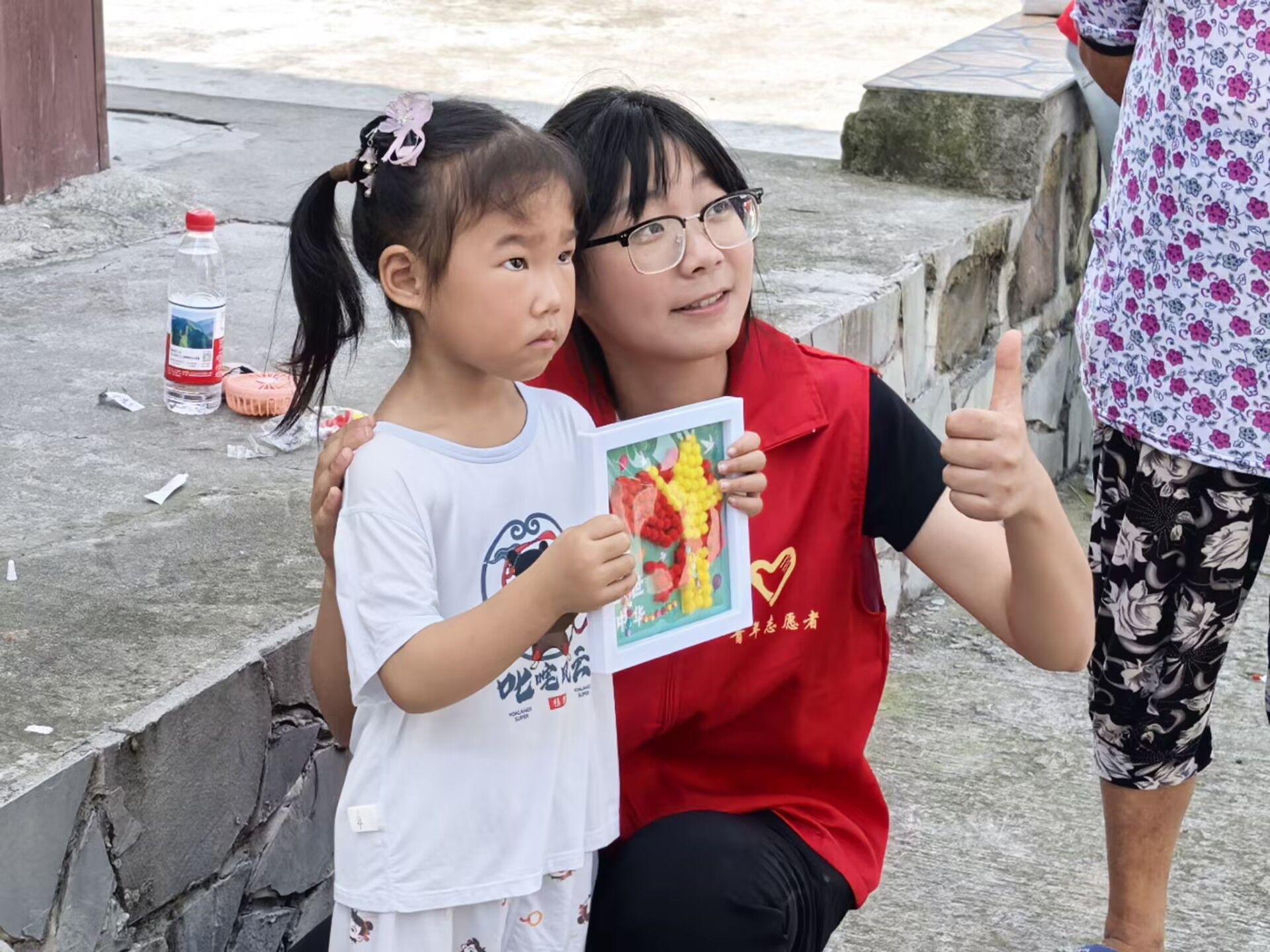 7月9日柳乃夫小院关爱活动里,冯雪娇同学教老人写毛笔字。78岁的张婆婆因手抖写不好“英”字,冯雪娇同学耐心握笔指导,当“英雄不朽”四字呈现在红纸上时,张婆婆眼眶微红,称“这辈子第一次写这么有意义的字”;随后,冯雪娇同学又带5个孩子拼国旗拼图,讲解五角星含义,孩子们欢呼雀跃的模样,让红色精神种子悄然扎根。