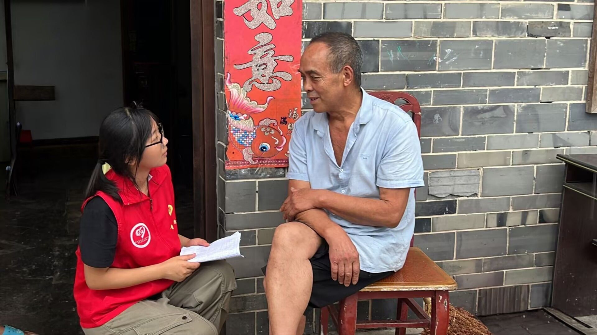 实践期间,冯雪娇同学承担“红色文化认知调研”与“非遗技艺寻访”两大核心任务,为团队调研报告积累详实素材。在红色文化调研中,冯雪娇同学与3名队员组成“古镇调研组”,顶着38℃以上高温,每日穿梭于路孔古镇青石板路与沙堡村农家院落,累计走访300余人次。面对不同群体,冯雪娇同学灵活调整沟通方式:与年轻村民交流时,以“万灵镇有哪些革命先烈事迹”的开放式问题引导深度探讨;对听力不佳的老人,放慢语速、配合手势,还请村书记协助翻译方言;和留守儿童对话时,通过“爷爷是否讲过抗战故事”挖掘家庭红色记忆,让调研更具温度。