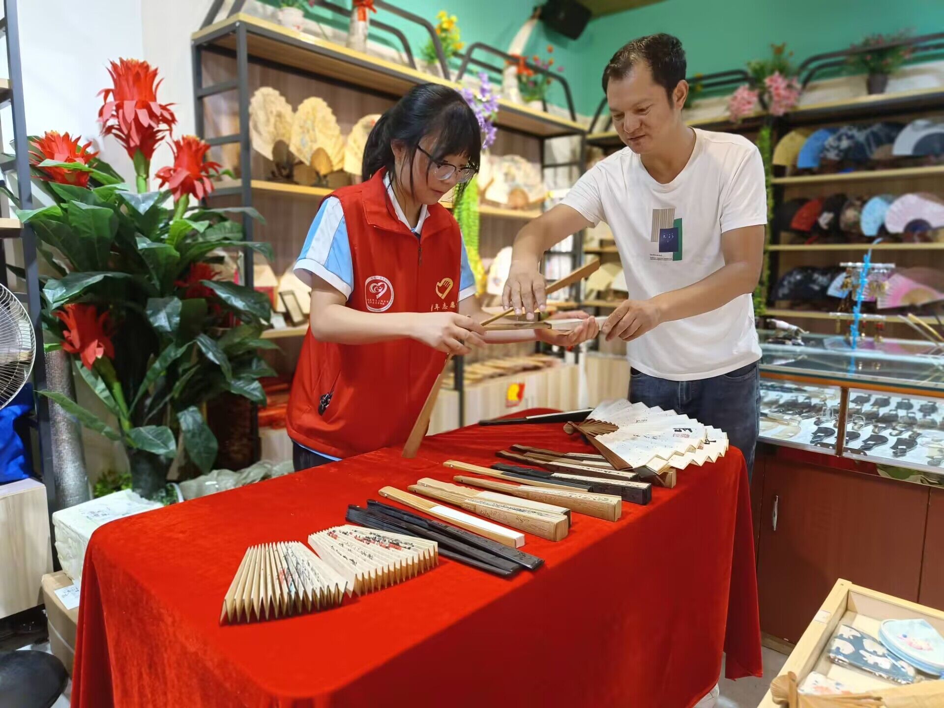 作为“非遗寻访员”,冯雪娇同学还走访古镇麻花店、叶儿粑作坊、夏布扇工坊:在麻花店,记录师傅“精选高筋面粉、柴火烘烤温度严控180℃”的技艺细节;在叶儿粑作坊,跟着匠人学用艾草汁揉面,感受“仙茅叶包裹保鲜3天”的传统智慧;在夏布扇工坊,了解“三年生楠竹需晾晒半年去潮”的复杂工序。这些一手资料为报告“非遗与红色文化融合”部分提供有力支撑,冯雪娇同学参与撰写的5000余字调研章节,为2万字总报告注入扎实基层数据。