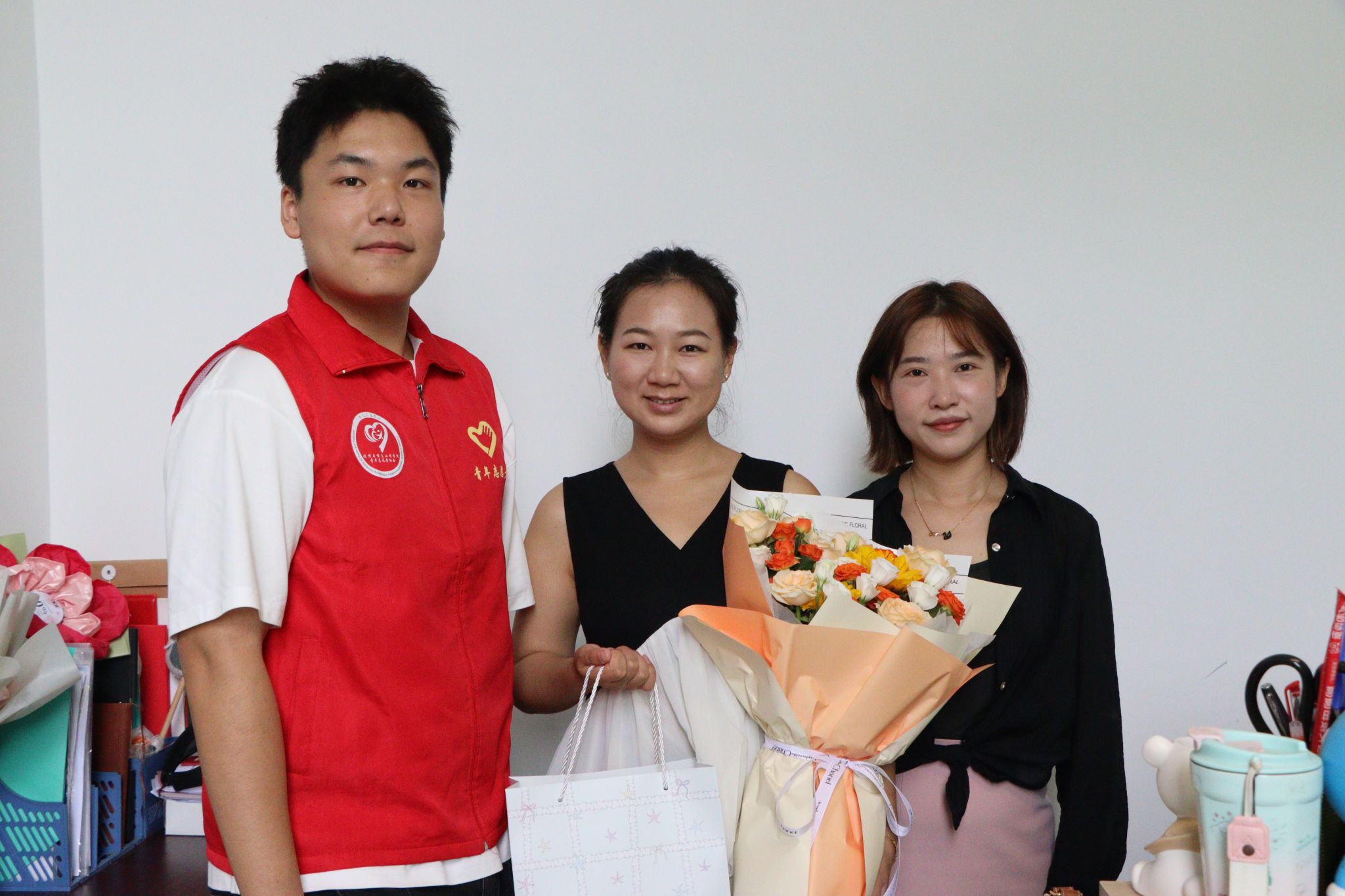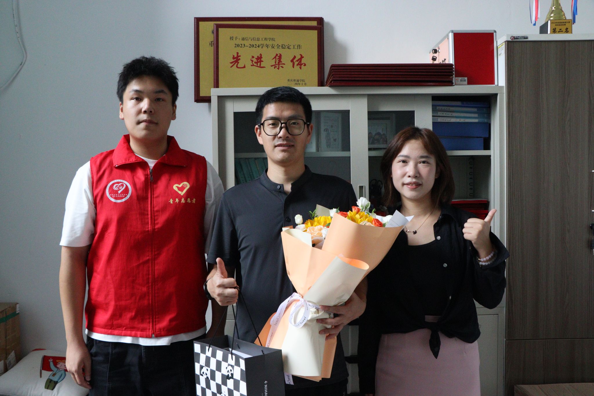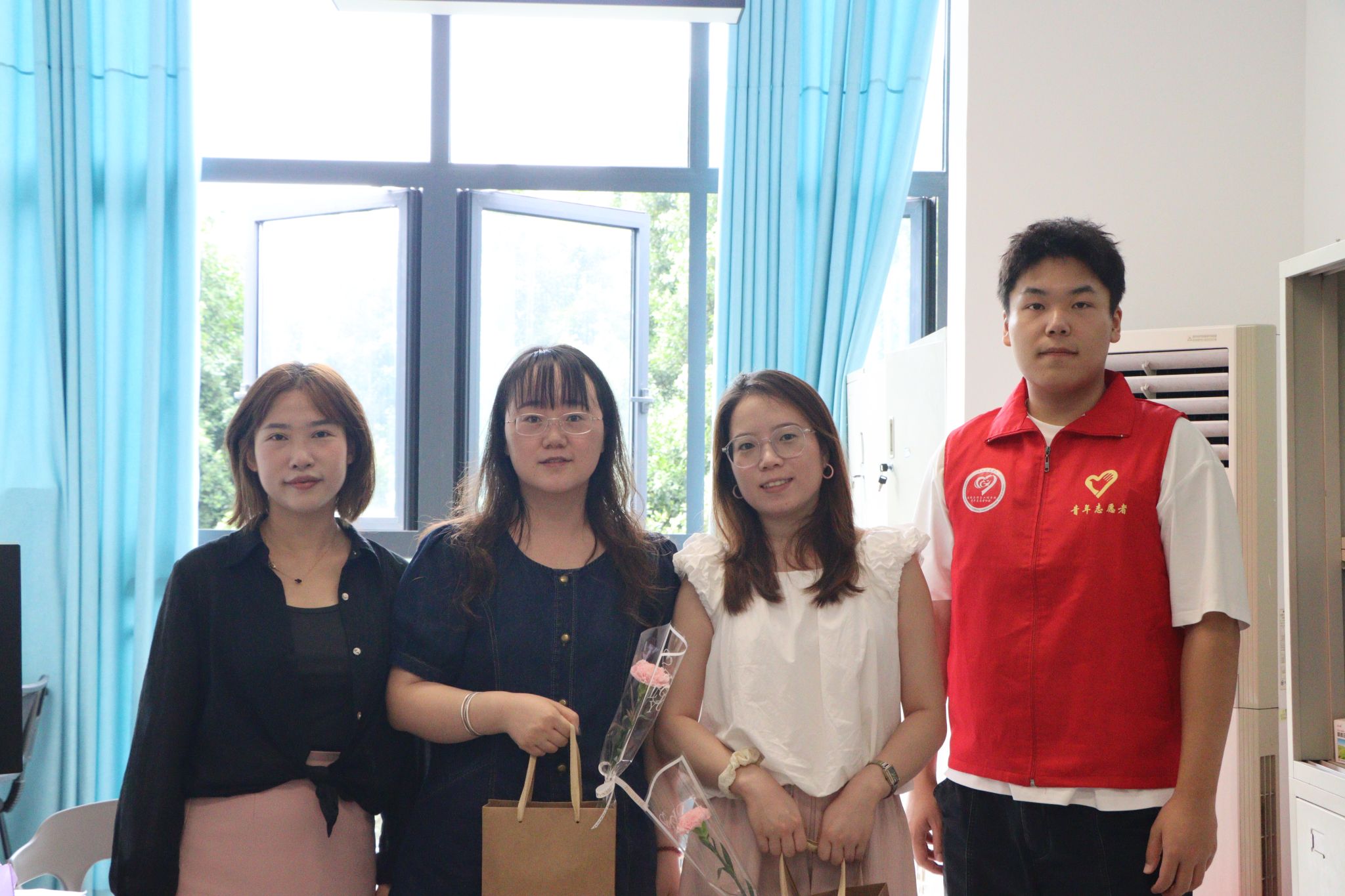 活动在欢快的氛围中徐徐展开,空气中弥漫着暖意融融的温情。志愿者代表向全体教师致以节日的诚挚慰问和美好祝福,感谢他们以渊博的学识和无私的奉献,滋养着一代代学子的成长,为学院发展注入不竭动力.随后,志愿者们依次为老师们献上鲜花,一束束芬芳饱含着学生对师恩的深深感激与崇高敬意。