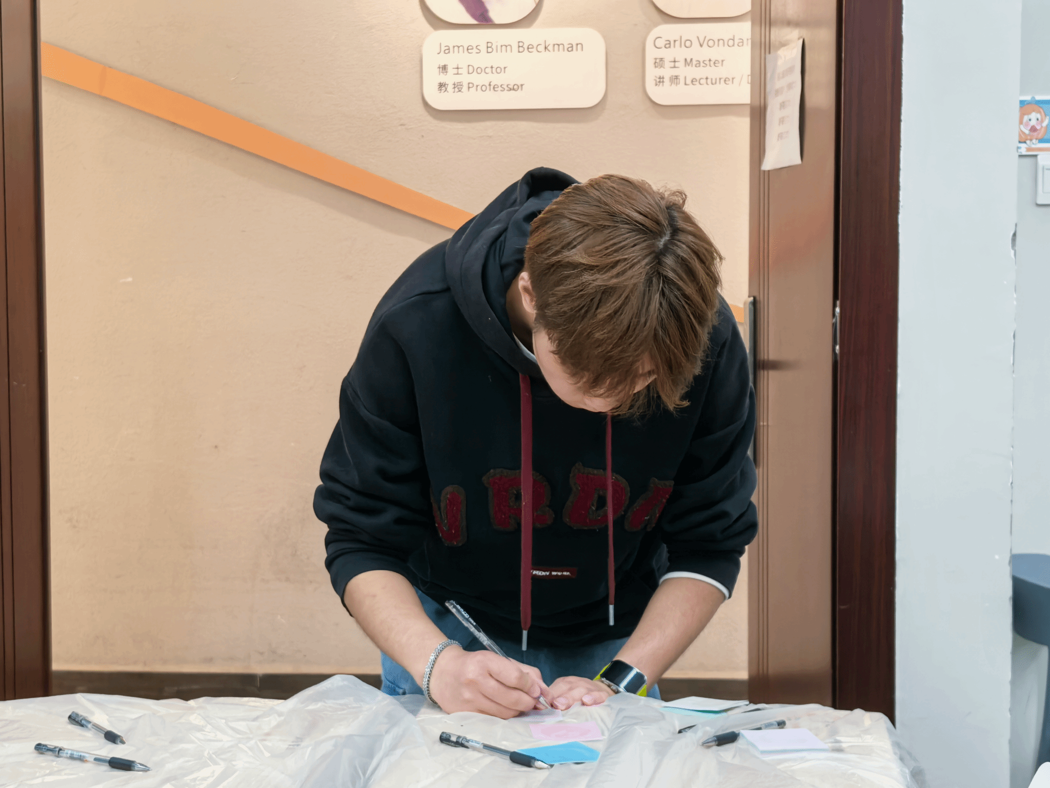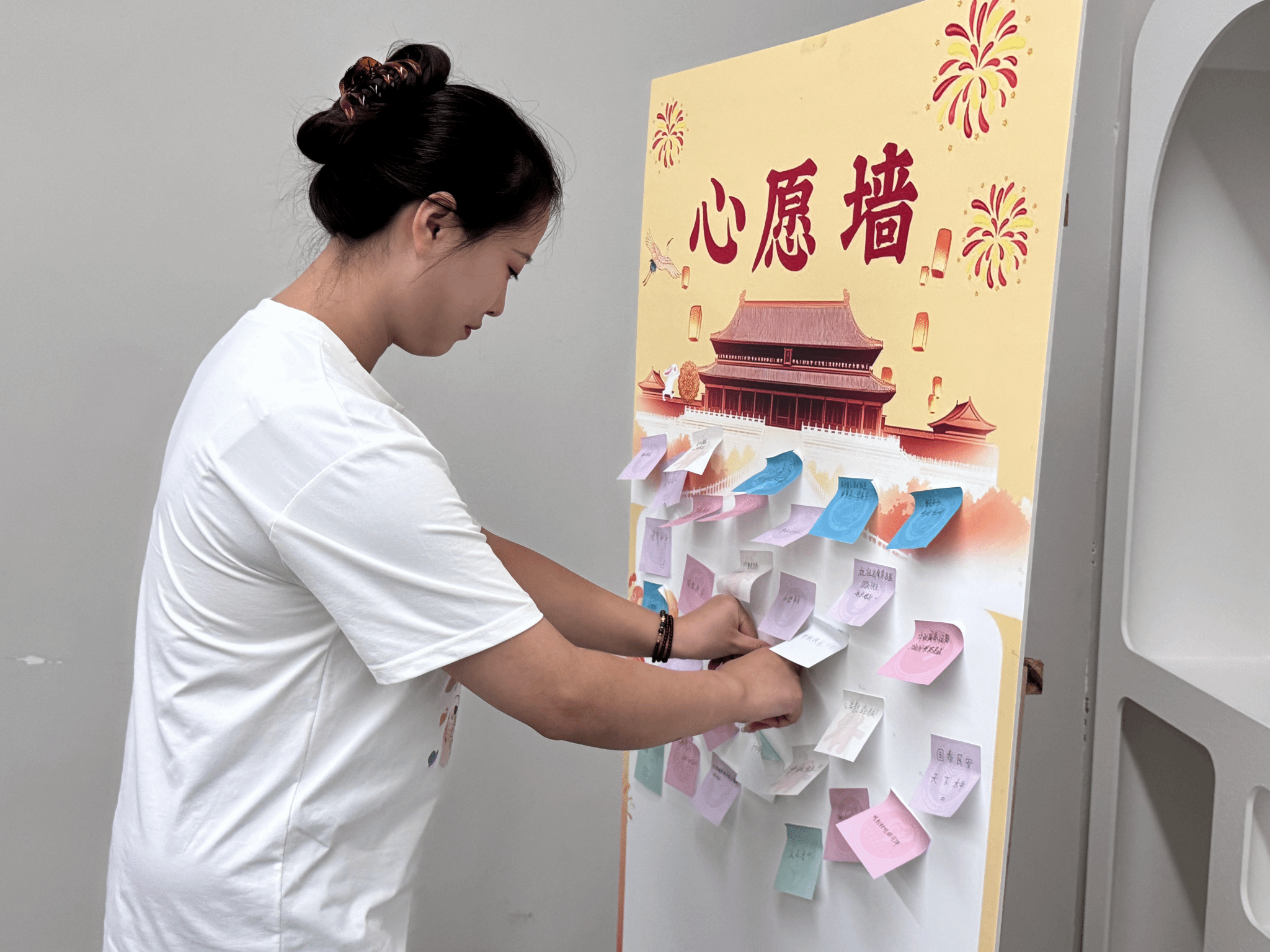 心愿墙前,五彩纸条像一串串跳跃的许愿星,被同学们一一贴上,瞬间凑成一片小小银河——有的写着给祖国的甜甜表白,有的写着悄悄的思乡心事,暖得像糖。灯谜区变成了“笑声发射场”,有人眯眉当侦探、有人一拍大腿喊出答案,谜语像烟花一样在欢笑中“噼里啪啦”开了花。