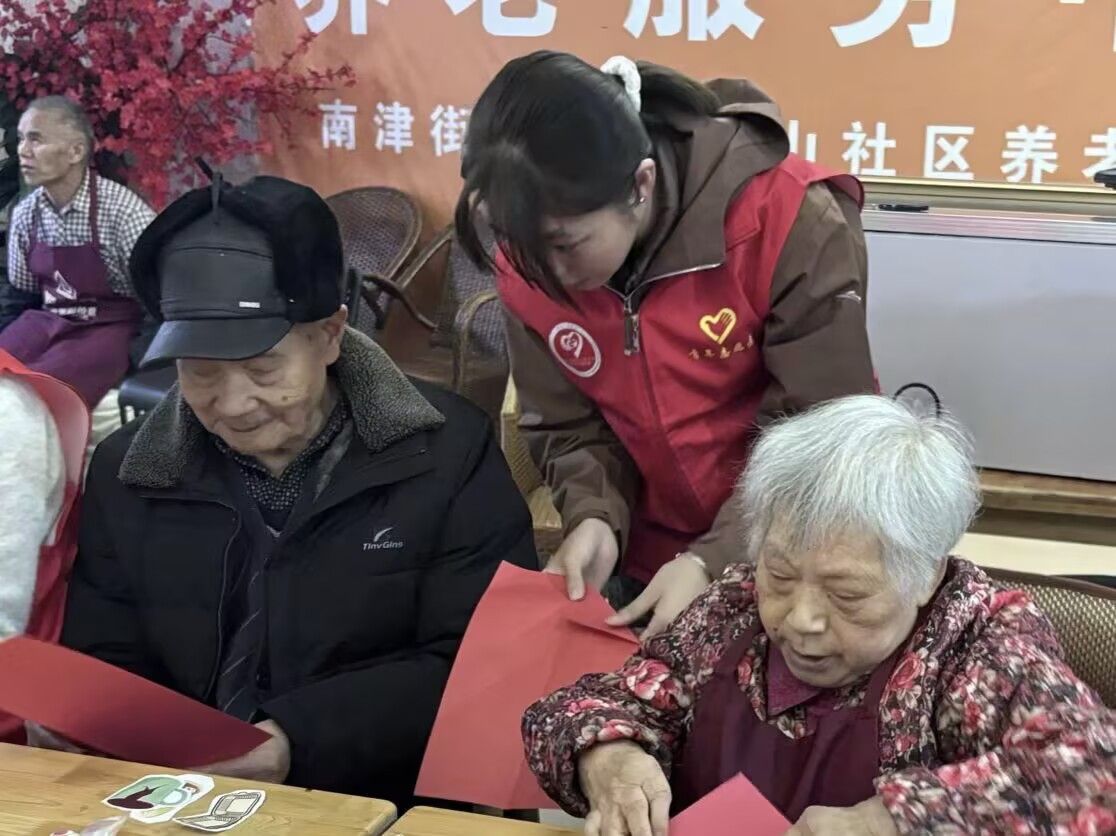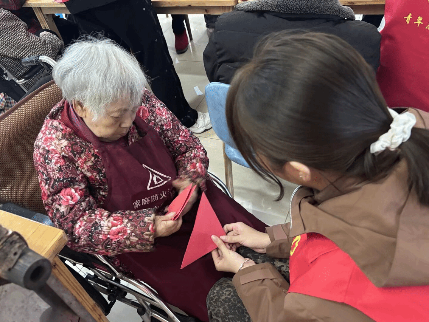 “变废为宝” 手工坊环节,无疑是整场敬老活动中最热闹、最动人的部分,成功将现场氛围推向高潮。活动现场早已贴心摆放好提前收集的旧报纸、塑料瓶、废旧纸盒等材料,胶水、剪刀等工具也整齐陈列,处处透着温暖的用心。志愿者们化身耐心的 “小老师”,一对一地围在老人身边,手把手指导操作:教老人们将旧报纸反复对折、压出纹路,一步步折成方方正正的垃圾盒;帮着修剪塑料瓶的瓶口,将普通的瓶子变成小巧玲珑的小花盆;老人们学得格外认真,布满皱纹的脸上满是专注与笑意。原本被丢弃的 “废弃物”,在大家的巧手下渐渐焕发生机,变成了一个个既实用又美观的手工作品。活动尾声,志愿者们与老人们手捧着各自的 “成果” 合影留念,镜头里满是欢声笑语。随后,志愿者们将这些充满心意的手工制品一一送到老人手中。这份细致入微的志愿服务,如同冬日里的暖阳,为整场活动画上了一个圆满又温暖的句号。