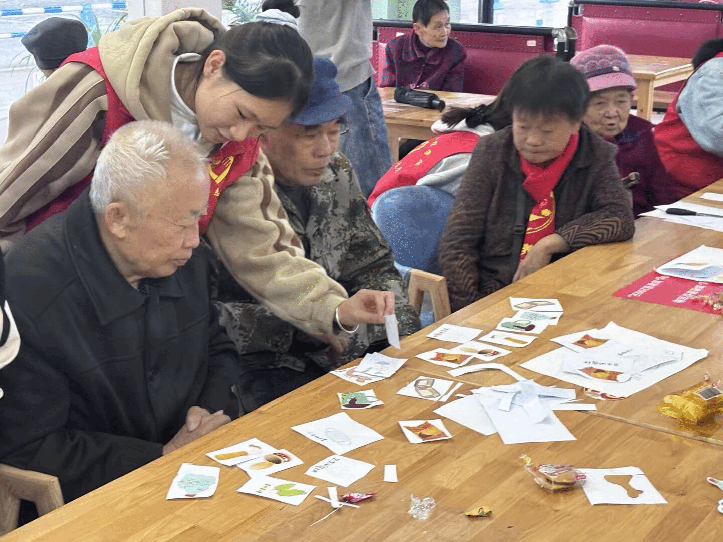 活动伊始,志愿者们提前抵达养老院布置现场,以“欢乐启航·我们是‘真人AI’”环节拉开序幕。志愿者扮演“使用者”提出垃圾分类问题,老人们则兴致勃勃地集体化身 “AI 语音助手”,响亮的 “可回收垃圾”“有害垃圾” 回答此起彼伏,在轻松的互动中悄然加深了对垃圾分类知识的记忆。紧接着的“动手动脑·我们是‘识图大师’”环节老人们有的凑近展板独立识别垃圾图片类别,有的结成小组围在分类桶旁,热火朝天地参与垃圾分类接力赛,不时传出阵阵笑声与喝彩声,整个养老院都洋溢着欢乐的气息。