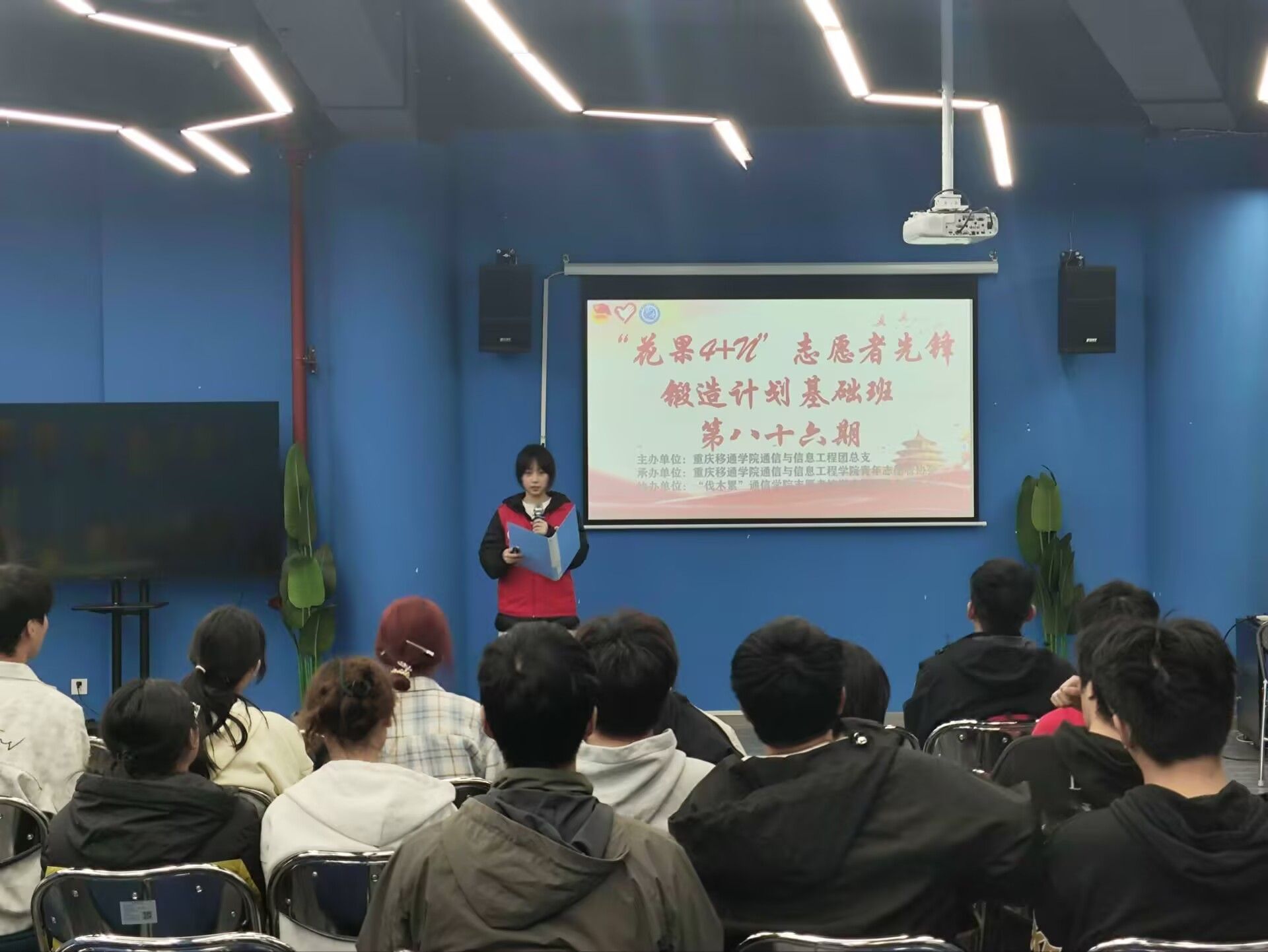 为提升志愿活动宣传力、增强志愿者成就感,沉淀高质量志愿影像库,通信与信息工程学院“伐木累”志愿者培训志愿服务专项支队于2025年10月31日14:30—15:30在天空书院揽江厅·师生交流室开展了以“光影暖心·志愿定格”为主题的“花果4+N”志愿者先锋锻造计划基础班第一期培训,通信与信息工程学院花果“4+N”基础班全体成员参与其中,共同学习如何用善意传播“镜头里的温度”。