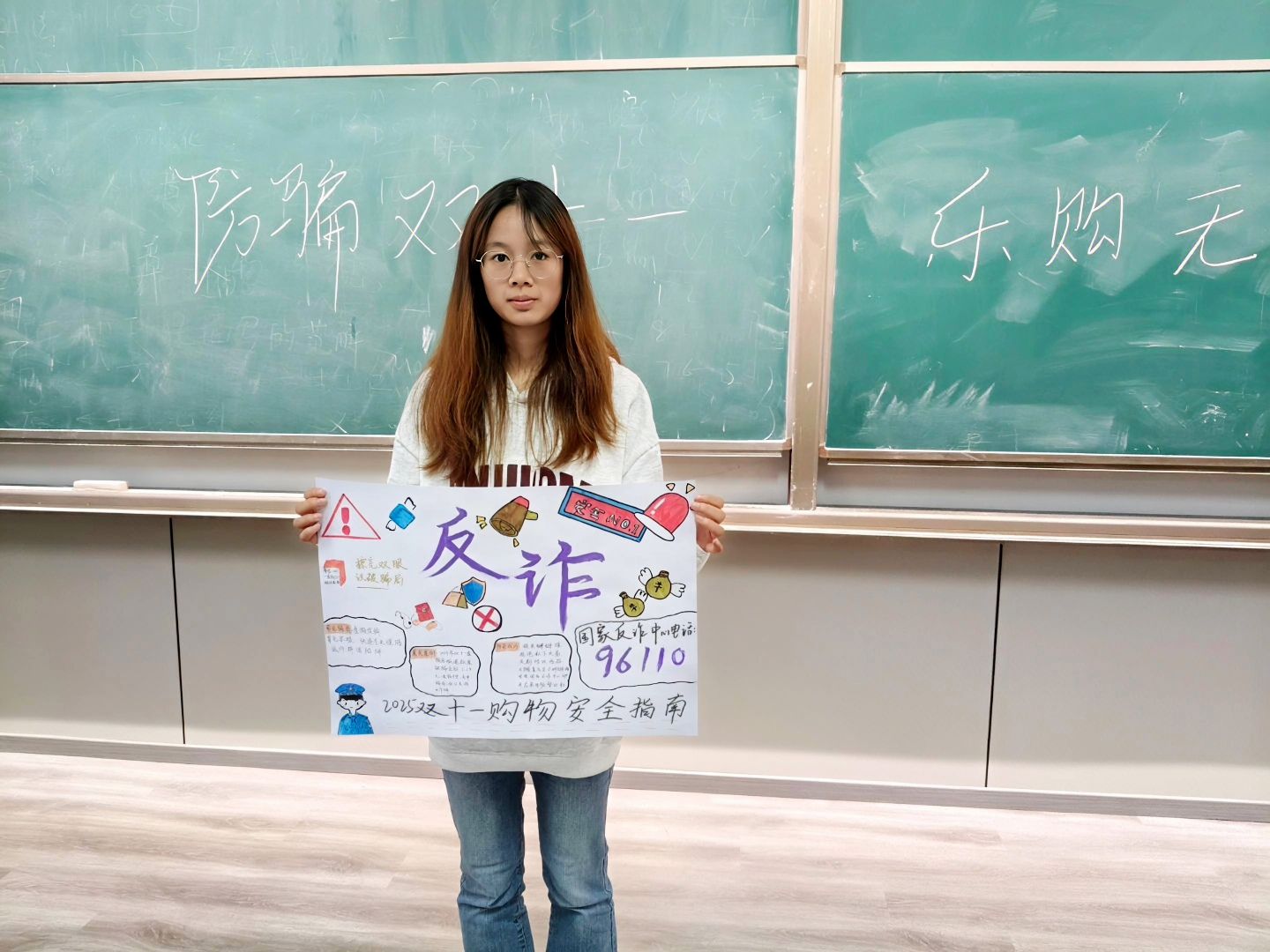 本次活动的成功举办,不仅帮助同学们在创意创作中掌握双十一反诈技巧、提升风险防范能力,还在校园内营造“主动防骗、安全消费”的良好氛围。未来,“飞鹰”反诈骗志愿服务队将持续关注学生需求,开展更多形式多样的反诈活动,切实为同学办实事、解难题,助力大家在安全、理性的消费环境中畅享校园生活。