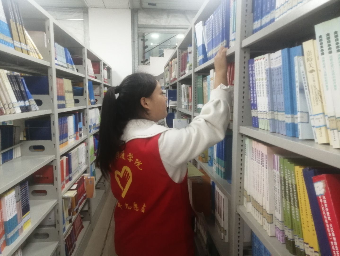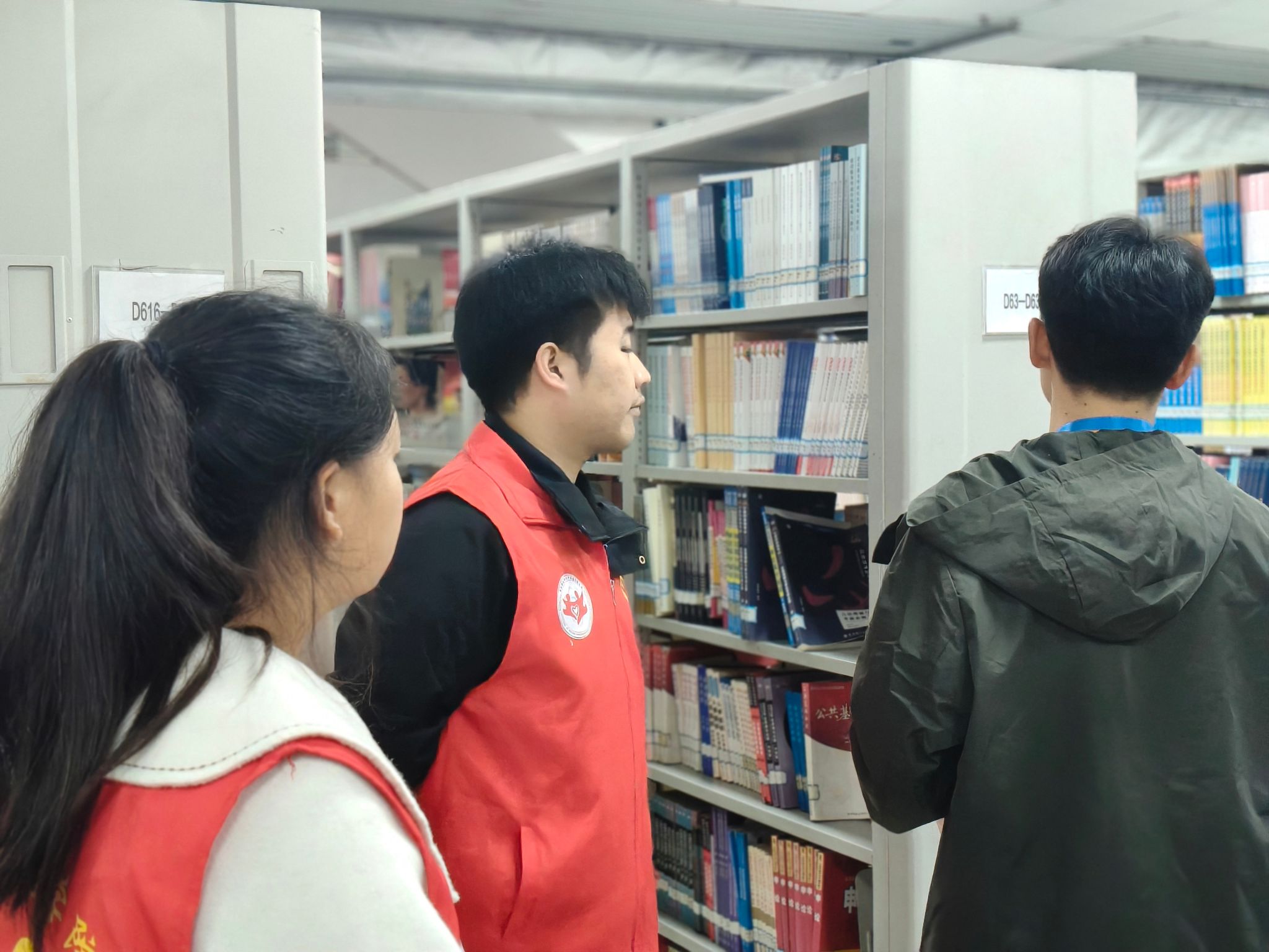 活动期间,志愿者们分工明确,以高效协作的状态投入服务。志愿者们不仅化身为“书籍守护者”,通过逐本核对索书号、按类别归位错位书籍等细致操作,确保每一本书都能精准“安家”;同时巡视阅览区,及时整理散落座椅的书籍与杂物,悉心维护整洁有序的阅读环境。志愿者们忙碌的身影与书架间的书香交相辉映,构成图书馆内一道充满生机与活力的风景线。