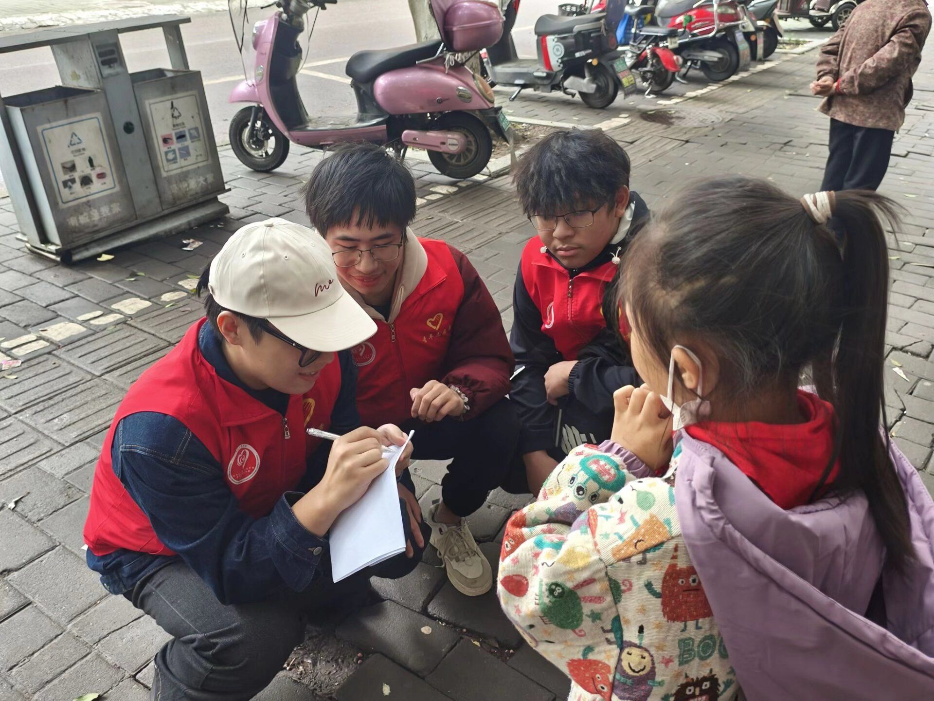 调研团队主要深入位于城市边缘、基础设施相对薄弱的社区,进行了调研。志愿者们通过问卷调查的方法,与留守儿童及其临时监护人进行了深入交流。初步发现,这些城市留守儿童虽地理上临近城市资源,但在实际生活中却面临着很复杂的困境。社区环境可能存在安全隐患,教育资源相对匮乏等问题。更重要的是,他们身处城市却因经济隔阂难以融入,更容易产生强烈的心理落差。志愿者们以亲切的语气拉近距离,耐心倾听孩子们的心声,认真填写调研问卷,主动提供作业辅导、趣味知识分享等暖心服务,用陪伴驱散孩子们的孤独感。其余队员跟拍,定格志愿者与孩子们互动的温馨瞬间。