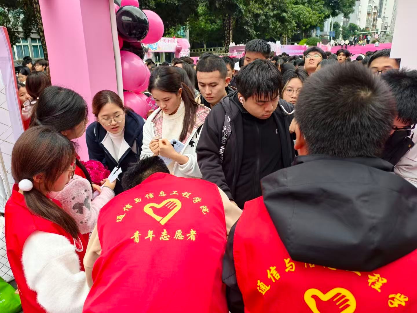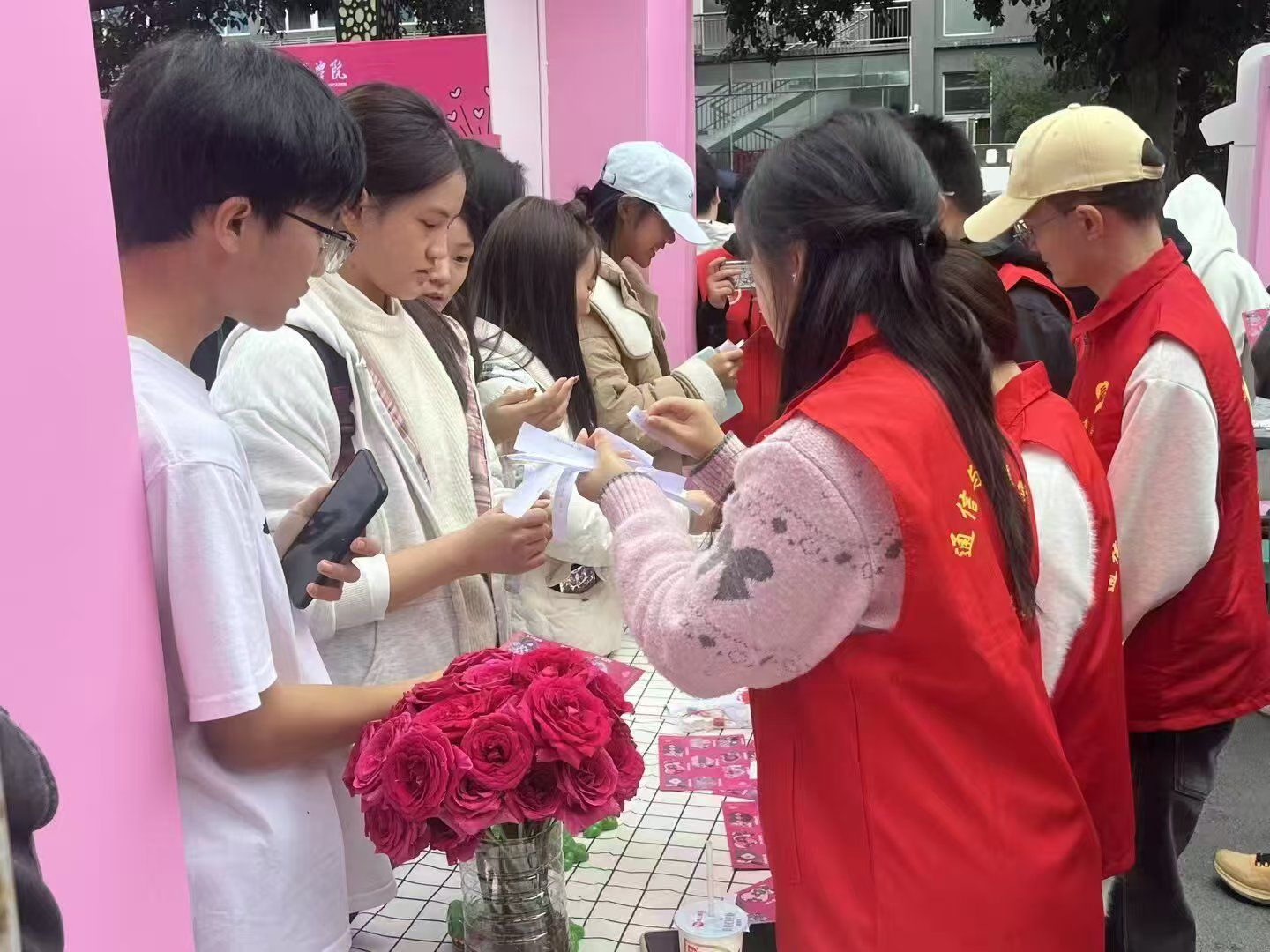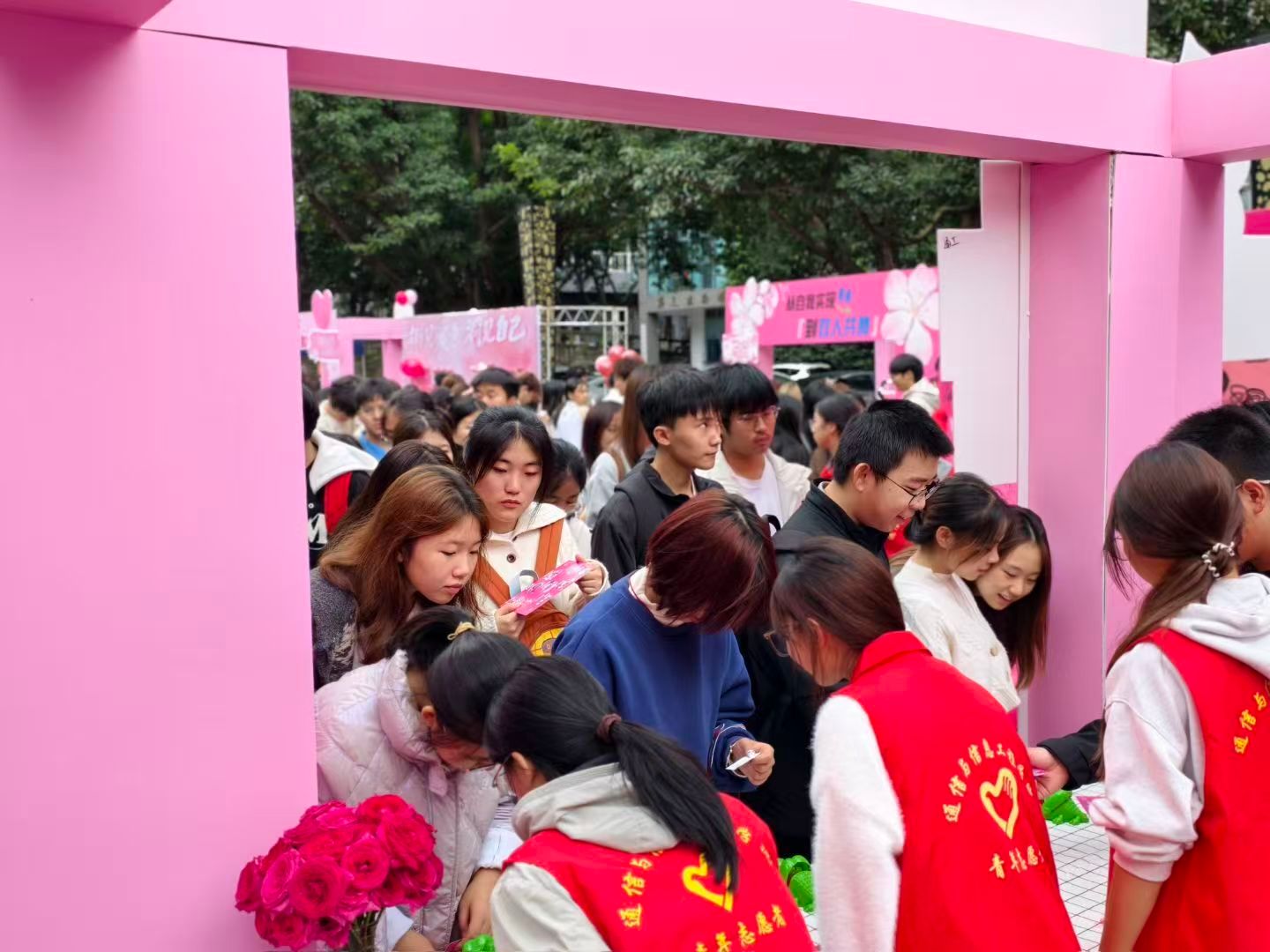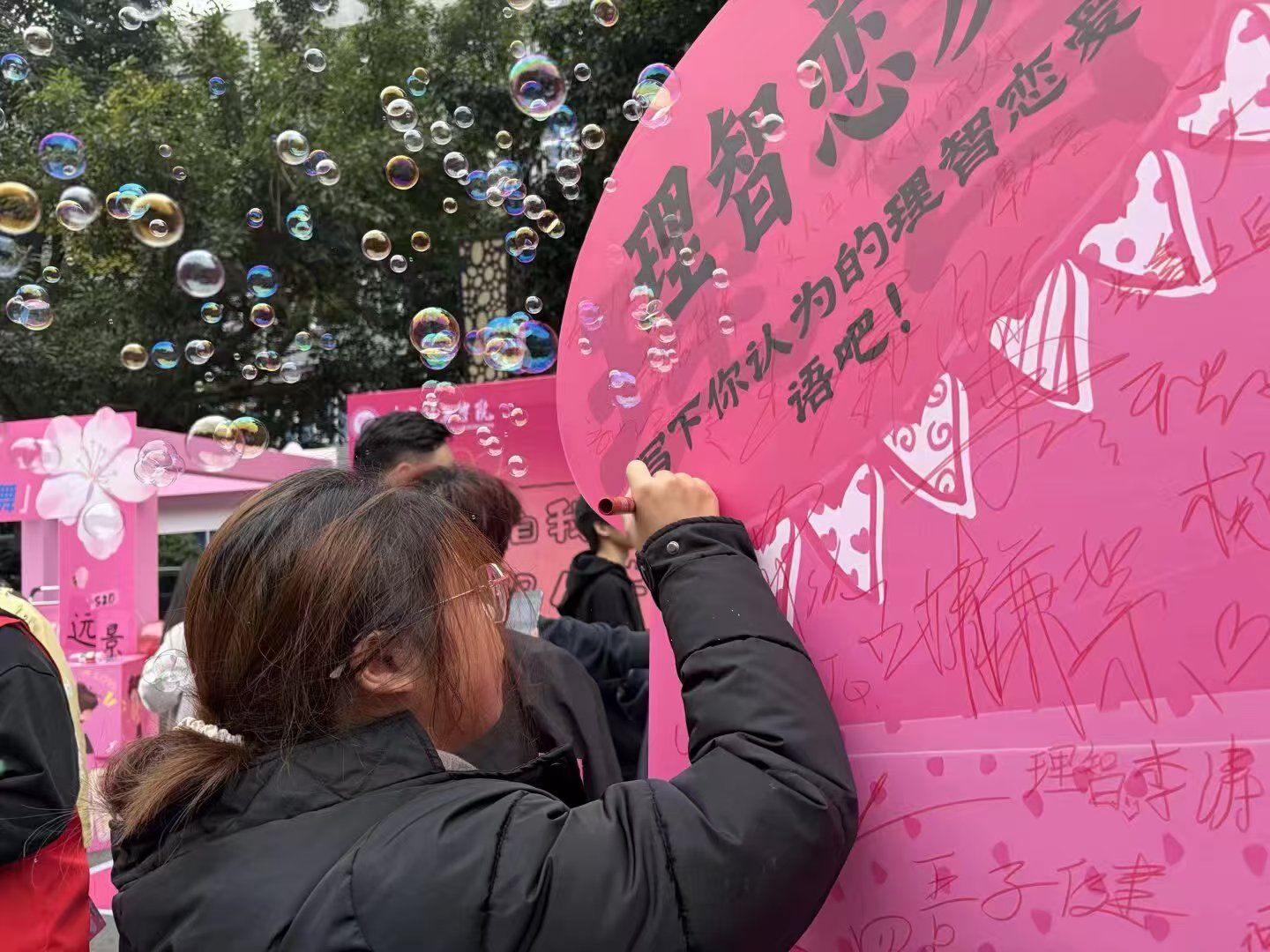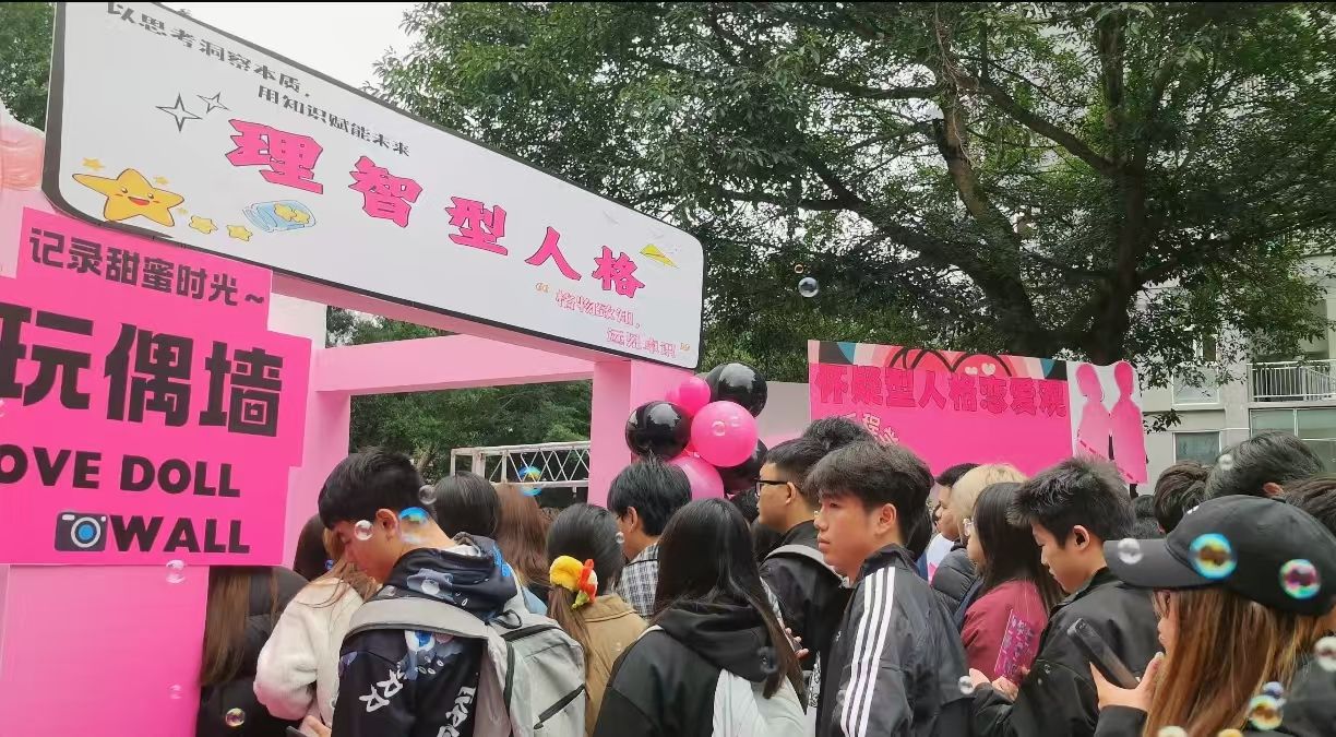 为了帮助同学们深入探索理智型人格特质,在亲密关系中平衡情感温度与理性分寸,在2025年11月12日,南校区黄桷树广场,一场以“理智人格,恋爱中的理性之光”为核心的互动体验活动在校园温馨落幕。活动现场以治愈粉色为主色调,漫天飞舞的泡泡交织出梦幻氛围,还设有软萌玩偶墙与个性签名打卡处,让同学们在浪漫场景中开启了一场趣味十足的人格探索与情感成长之旅。