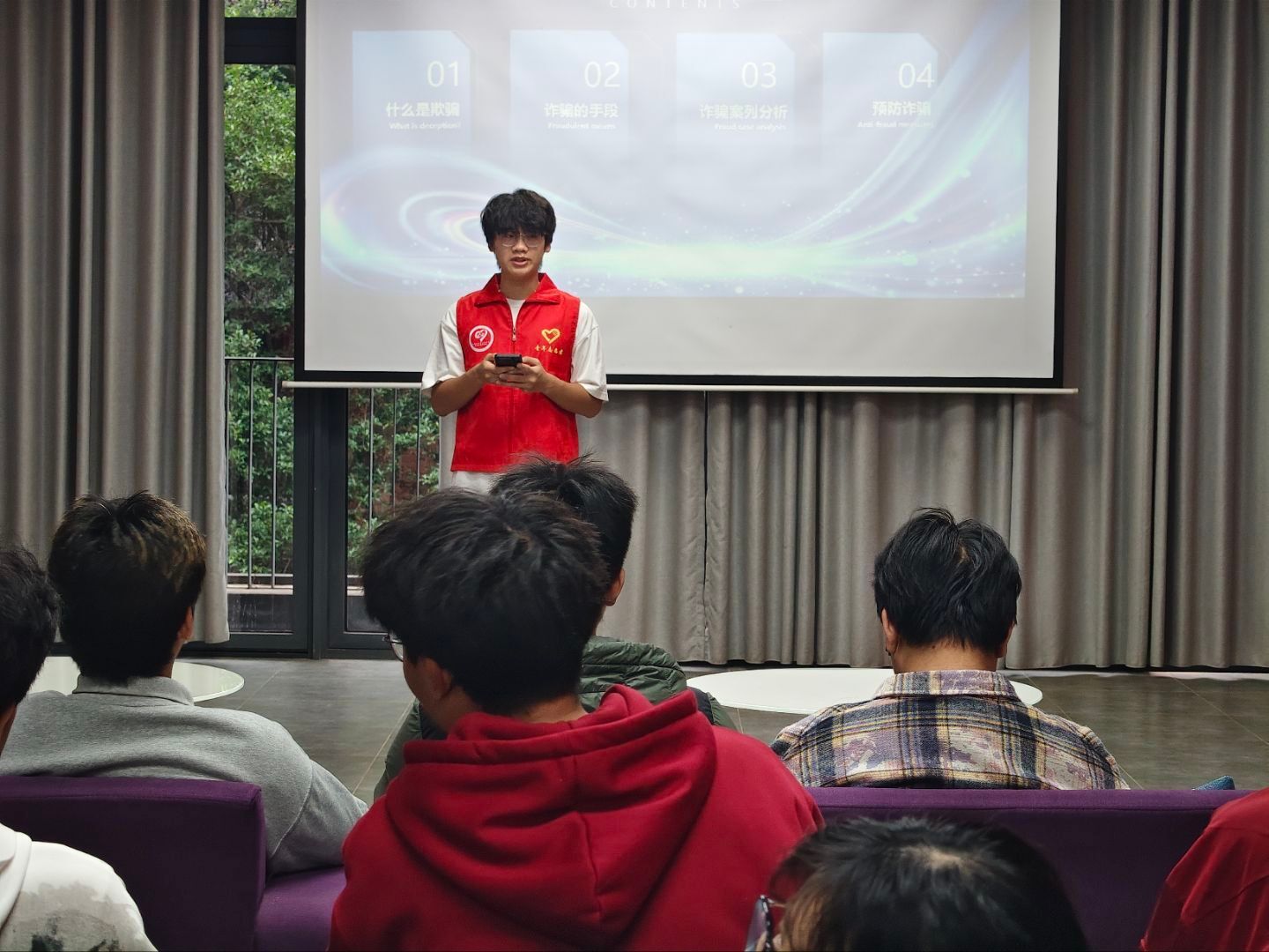 活动现场,志愿者们讲解聚焦校园及社会最新高发诈骗类型,涵盖网络刷单返利、虚假购物退款、冒充老师/家长借款、校园贷陷阱、游戏账号交易诈骗等诈骗场景展开详细的分享与解读。活动通过关于大学生等高发群体和节假日前后等高峰期数据化呈现诈骗的高发,深度剖析诈骗分子的“话术剧本”包括情感诱导、紧急施压、利益诱惑、技术手段等常用手段,伪基站、钓鱼链接、AI变声等技术工具的作案流程,让同学清晰熟练的掌握整个诈骗过程。为增强体验感和实操感,活动设置实景模拟互动环节,由志愿者模拟“诈骗分子”与同学现场对垒,完美还原从“接触诱导”到“转账受骗”的完整环节,直观暴露骗术中的可疑信号与逻辑漏洞。此次活动提高了同学们精准识别各类诈骗的特征分辨能力,增强了对风险信号的敏锐洞察力,使同学们掌握“反向核验”“拖延求证”等初步应对技巧,提升面对诱惑与施压时的理性判断能力,避免因冲动或侥幸心理受骗。