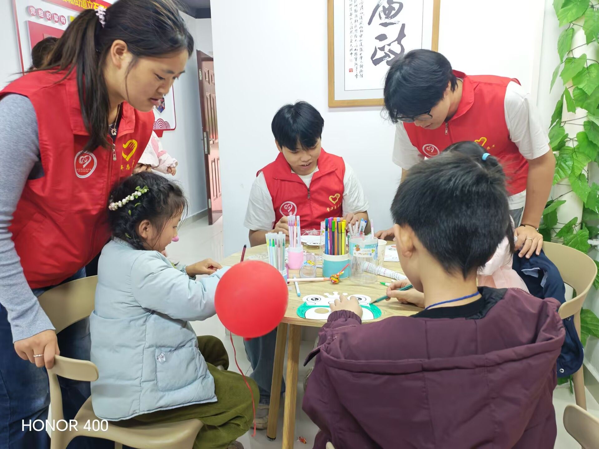 活动还特别设置了“手腕花扭扭棒”手工环节。大学生志愿者们俯下身来,耐心地教孩子们用扭扭棒制作小手工。这个过程,不仅锻炼了孩子们的动手能力,也让大学生志愿者们体会到“教导”与“传承”所带来的成就感。他们通过自己的劳动,为孩子们创造快乐,传播知识,深刻理解了“服务他人、奉献社会”的劳动精神内涵。
