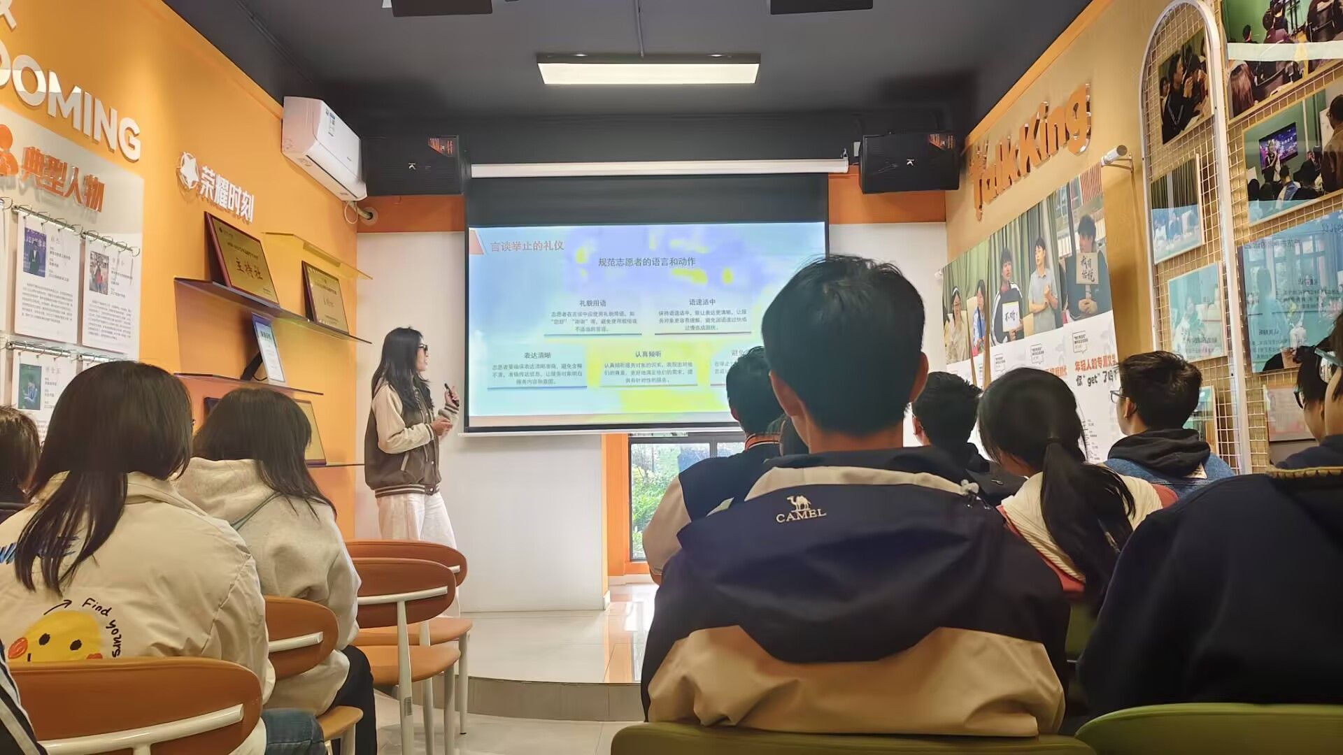 培训以“场景-话术-心法”三合一模板为核心,主讲人姜欣通过“银龄陪伴、宝贝不哭、无声有爱”三类典型场景,拆解志愿礼仪的实操细节:银龄服务中,示范“微蹲侧身”的站姿与“爷爷/奶奶”的亲切称呼;儿童陪伴时,展示半蹲平视的互动姿势与安抚话术;特殊群体服务里,强调“轻动作、慢语速”的贴心引导。从空白任务到完整礼仪流程,让基础班成员们30分钟内便掌握了“有温度、有分寸”的服务逻辑。