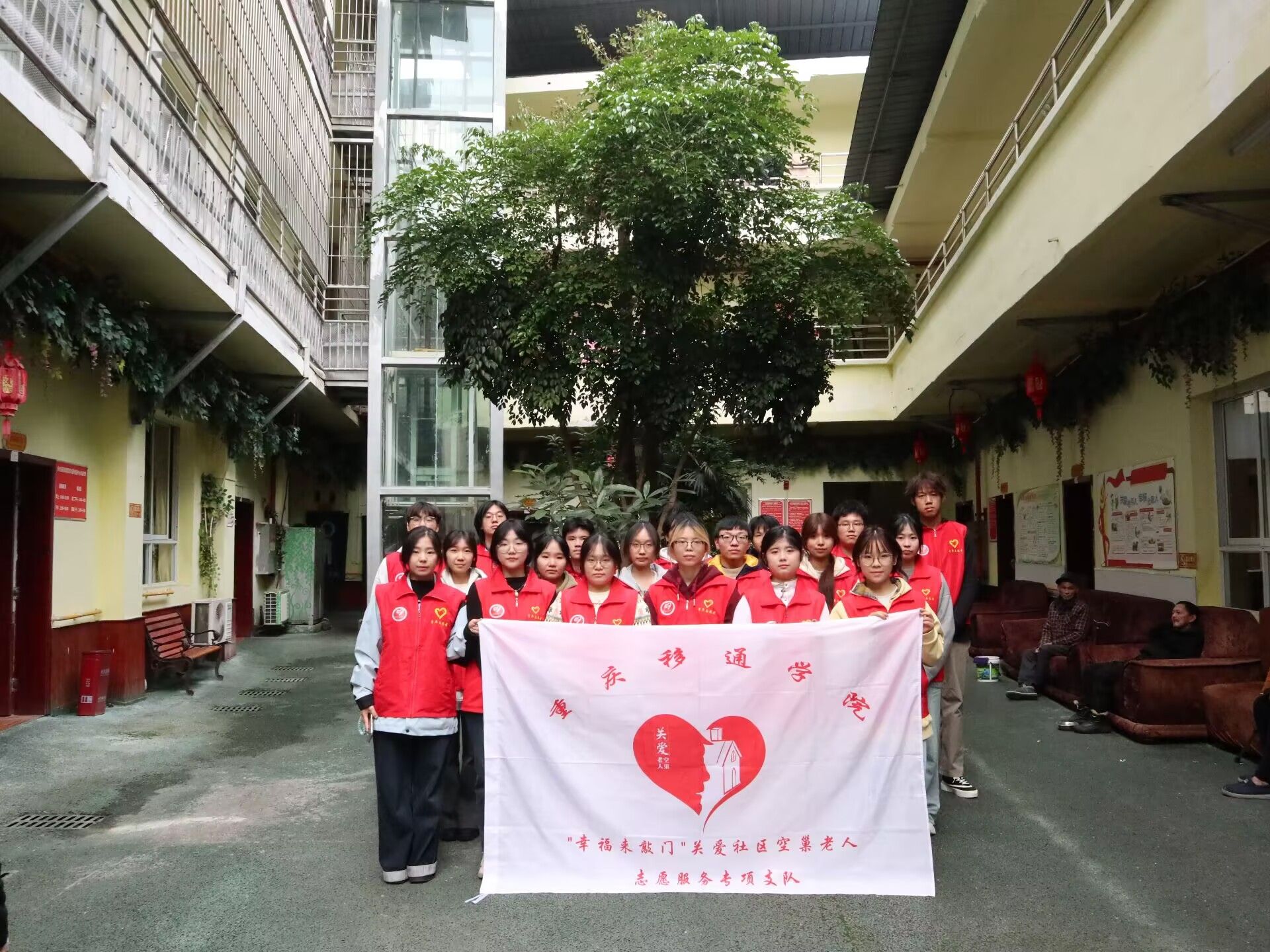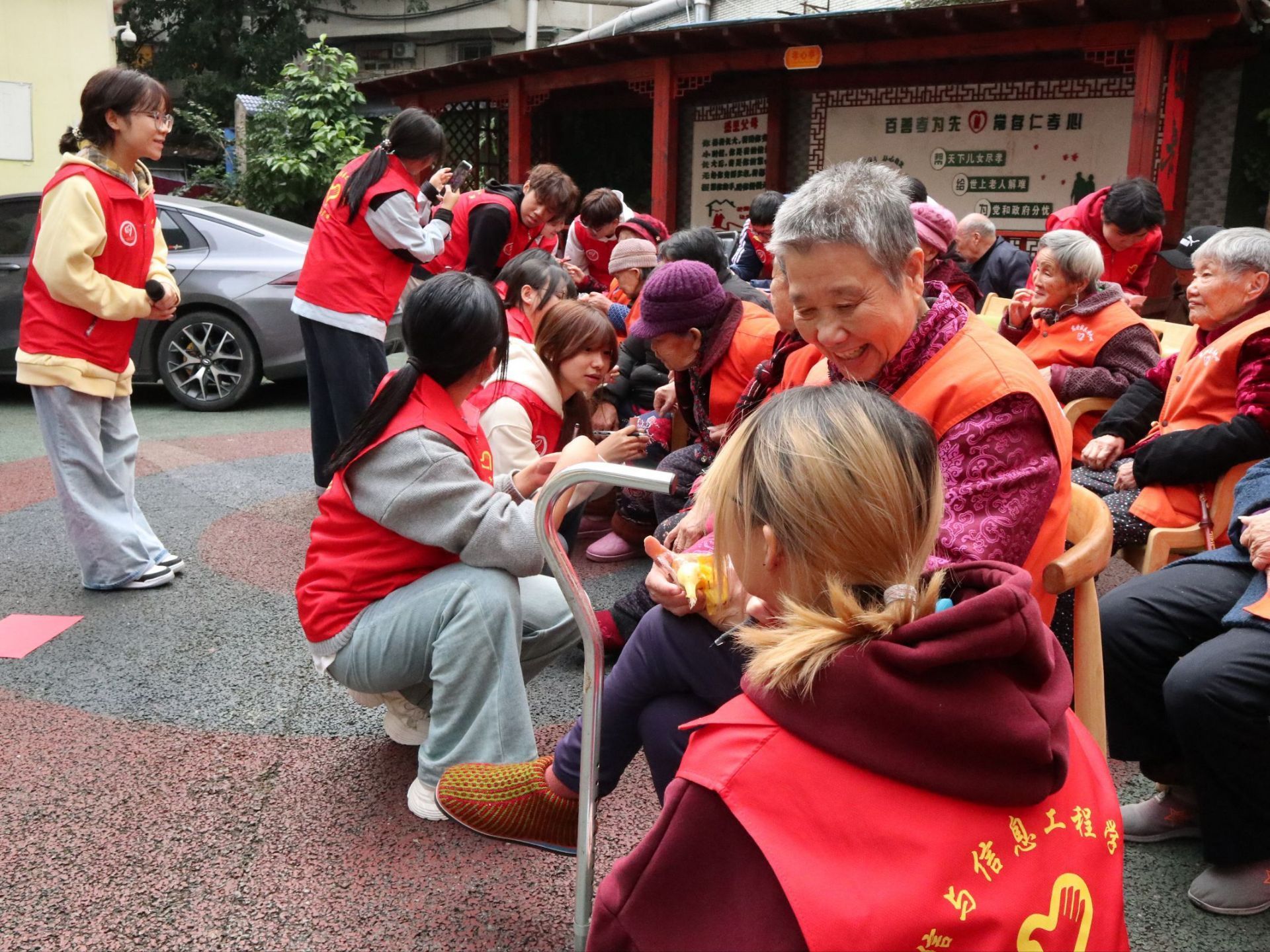 为弘扬中华民族尊老、敬老、爱老的传统美德,践行社会主义核心价值观,2025年11月21日下午14:00,“幸福来敲门”关爱社区空巢老人志愿服务专项支队联合淬炼商学院2025级财务管理15团支部,前往合川区慈爱家养老院开展以“用心关爱,用情陪伴”为主题的志愿服务活动。此次活动通过丰富的互动环节,有效提升了老人们的精神状态和生活乐趣,让他们感受到社会的温暖与关怀,更为养老院的长期发展注入了新的活力。