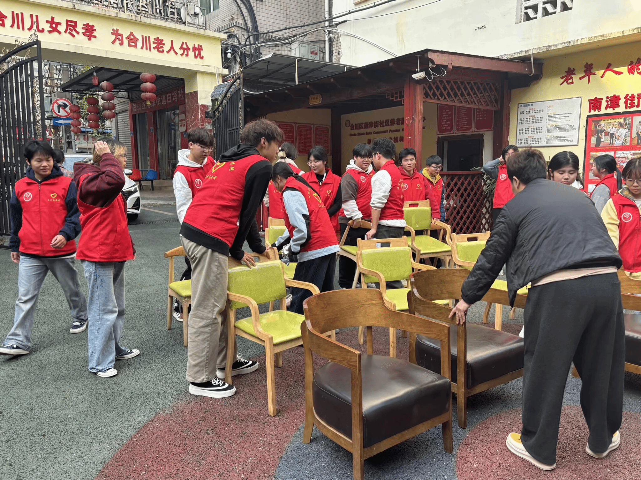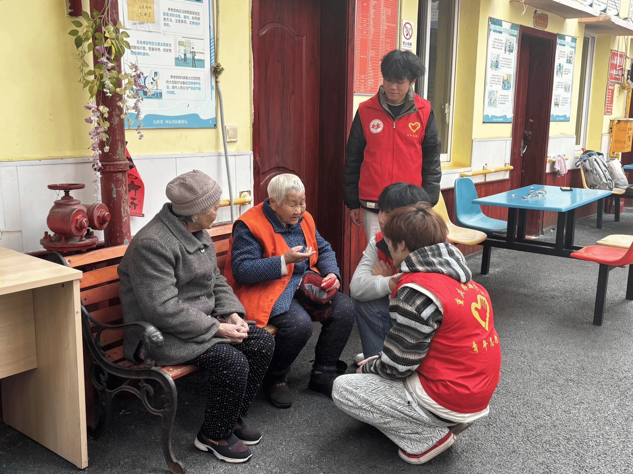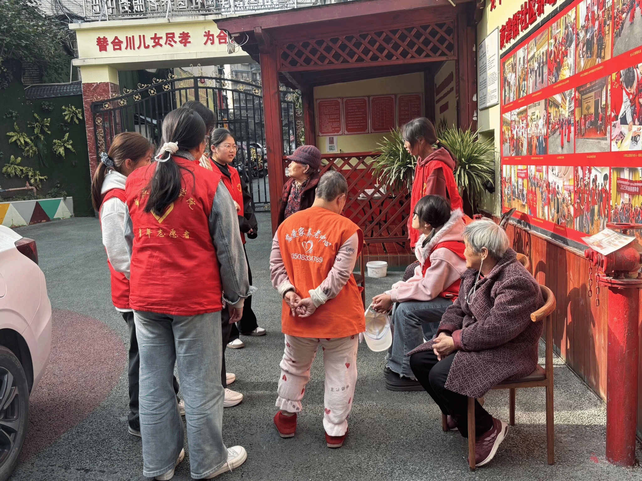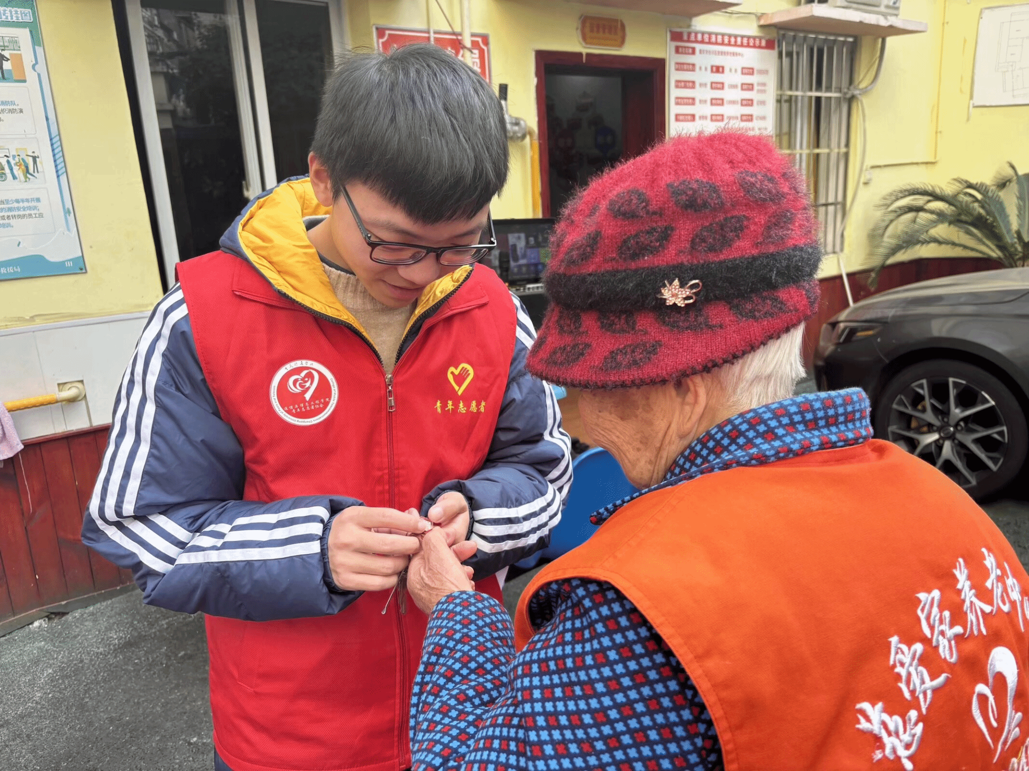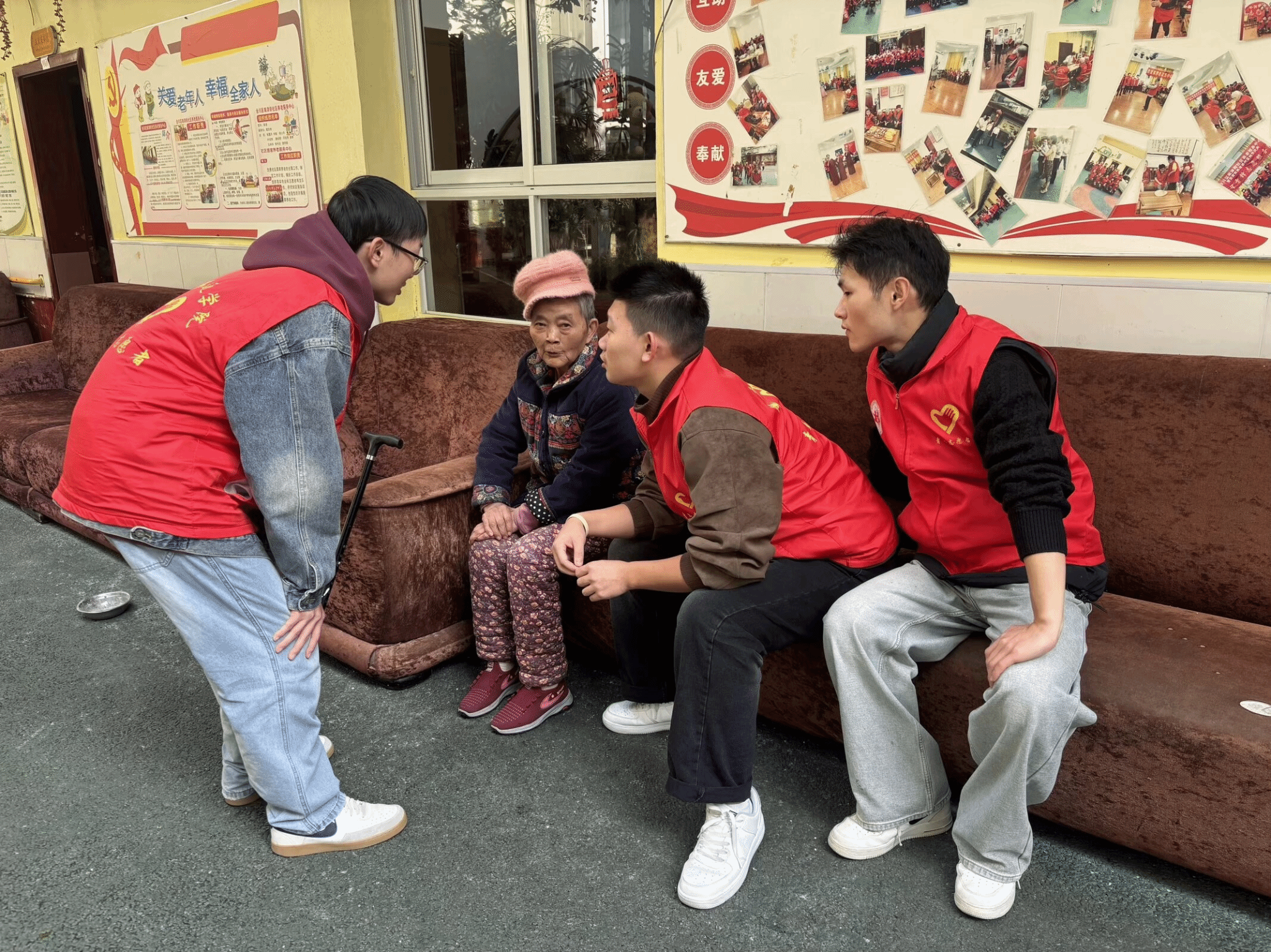 活动当日,志愿者们提前抵达养老院,有序完成场地布置后,主动搀扶行动不便的老人前往活动区域,一句句亲切的“爷爷”“奶奶”迅速拉近了彼此的距离。活动中,志愿者们分工协作、各司其职:陪聊组围坐老人身边,耐心倾听他们讲述年轻时的经历、生活趣事与人生感悟,老人们敞开心扉,脸上始终洋溢着慈祥的笑容;陪护组搀扶老人在院子里散步,沐浴温暖阳光、呼吸新鲜空气,还细致地为老人捶背揉肩,用贴心举动传递关怀;后勤组拿起清扫工具,认真打扫老人房间、整理内务,为老人们营造整洁舒适的生活环境。