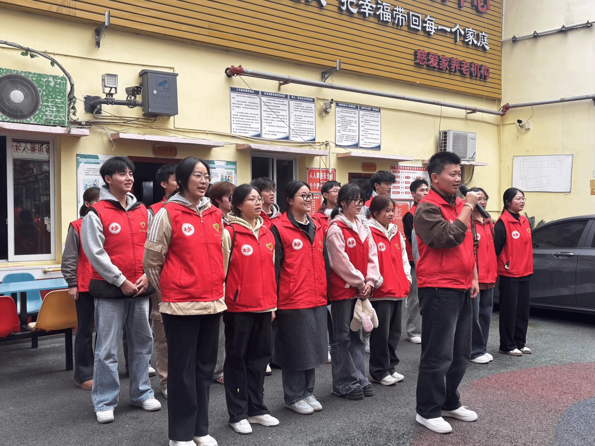活动前期,团支部秉持严谨细致的态度,多次与慈爱家养老院负责人沟通对接,全面了解院内老人的身体状况、兴趣爱好及实际需求,确保活动内容贴合老人生活。同时,支部完成志愿者招募与专项培训,明确陪聊陪伴、后勤保障、文艺展示等不同岗位的职责分工,并精心筹备清扫工具、慰问小礼品等物料,还提前排练《强军战歌》合唱曲目,从细节处为活动顺利开展筑牢基础。
