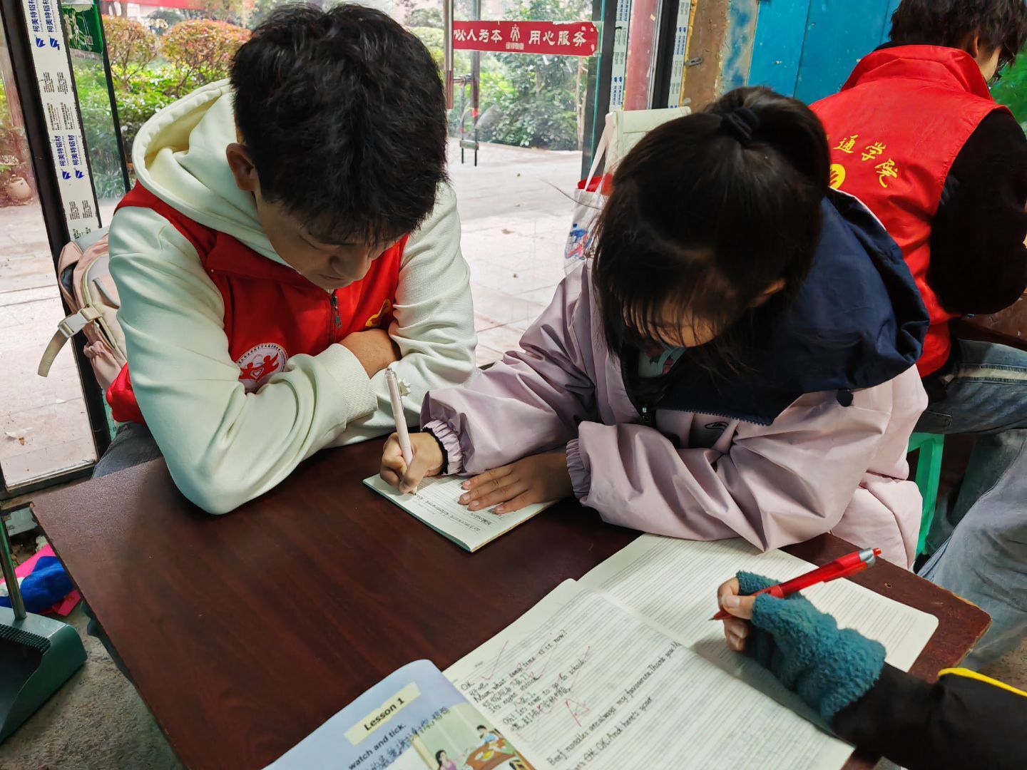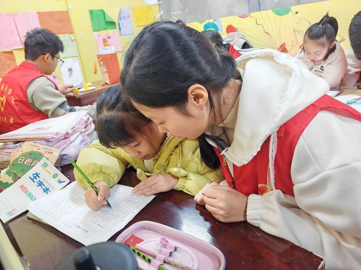 学业辅导环节率先开展,孩子们带着作业本、课本有序入场,志愿者们主动结对围坐,按需提供针对性帮助。面对数学难题,耐心拆解逻辑、梳理思路;碰到生字词,细致示范笔画、巩固读写;遇上背诵内容,陪伴反复朗读、强化记忆。全程无严肃说教,唯有温和引导与耐心陪伴,孩子们专注投入,不时露出豁然开朗的神情,活动室里弥漫着安静温馨的学习氛围。