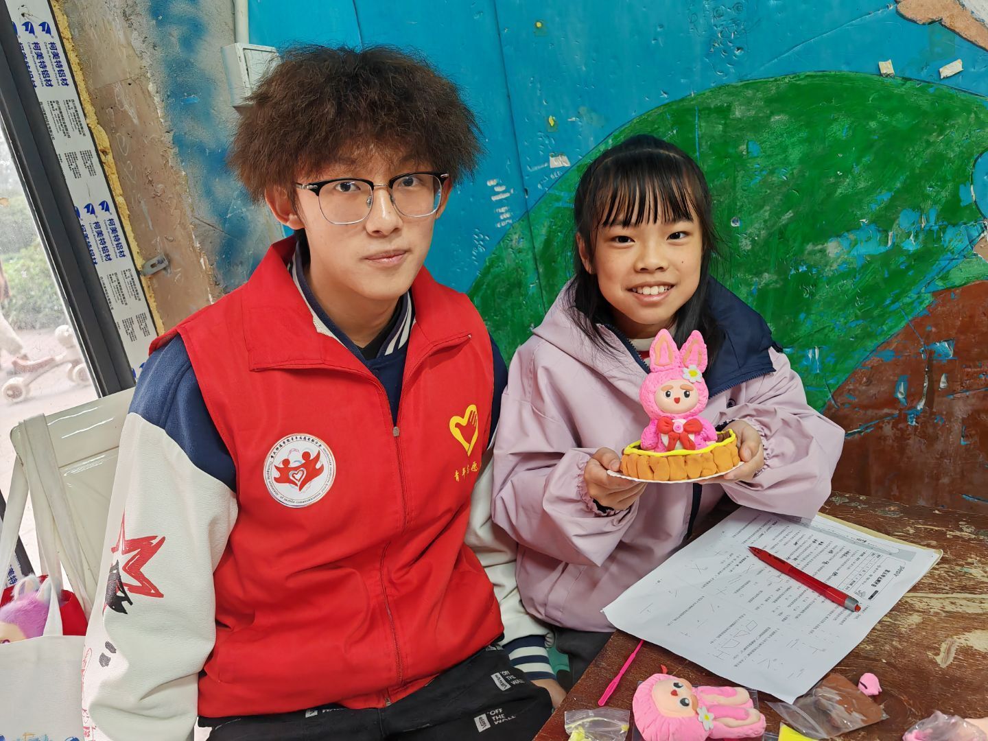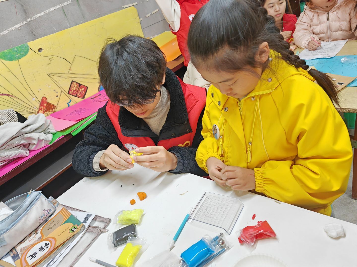 随着孩子们陆续完成作业,超轻粘土手工环节点燃现场热度。志愿者简单演示揉、搓、压、捏基础手法后,孩子们便尽情释放创意:有的专注塑造圆润可爱的小动物,有的搭配色彩创作鲜艳花草,有的脑洞大开捏制独特小房子,不少孩子还拉着志愿者合作,在材料传递、颜色搭配中互动协作。活动室里,孩子们的专注身影与欢快笑声交织,软乎乎的粘土在小手中变幻出一个个充满童真的创意作品。