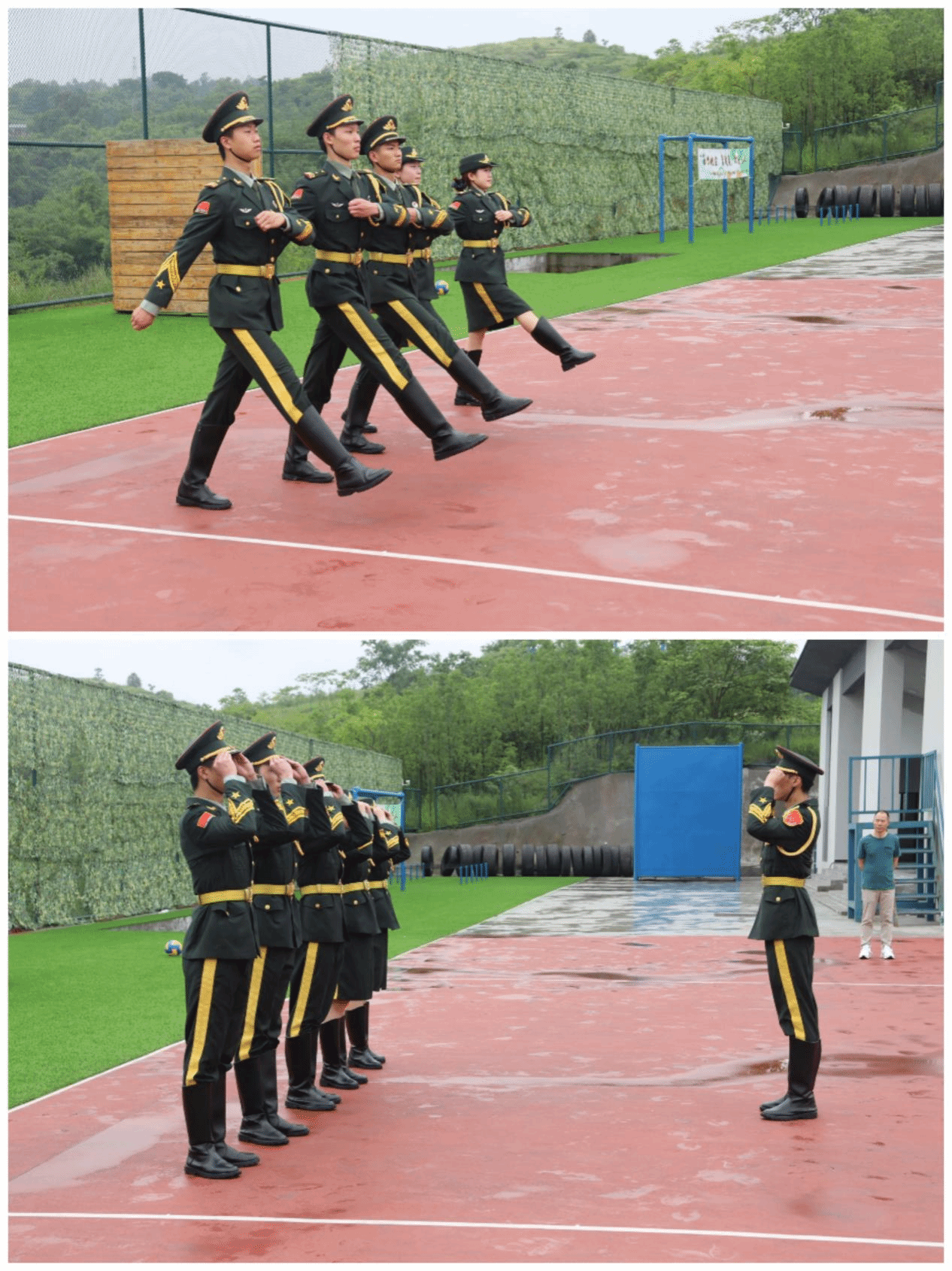 “携笔从戎,绽放青春光彩”,鲜艳的彩旗在微风中飘扬,仿佛在召唤着热血青年们投身军营。本次活动还邀请本校国旗护卫队的同学进行队列动作展示,包括立正、稍息、转体、报数等基本队列动作。在此过程让同学们从中感受到军人的严谨纪律和坚韧不拔的精神。通过此活动不仅能够增进同学们对部队的了解,还能激发同学们的爱国情怀和集体荣誉感。