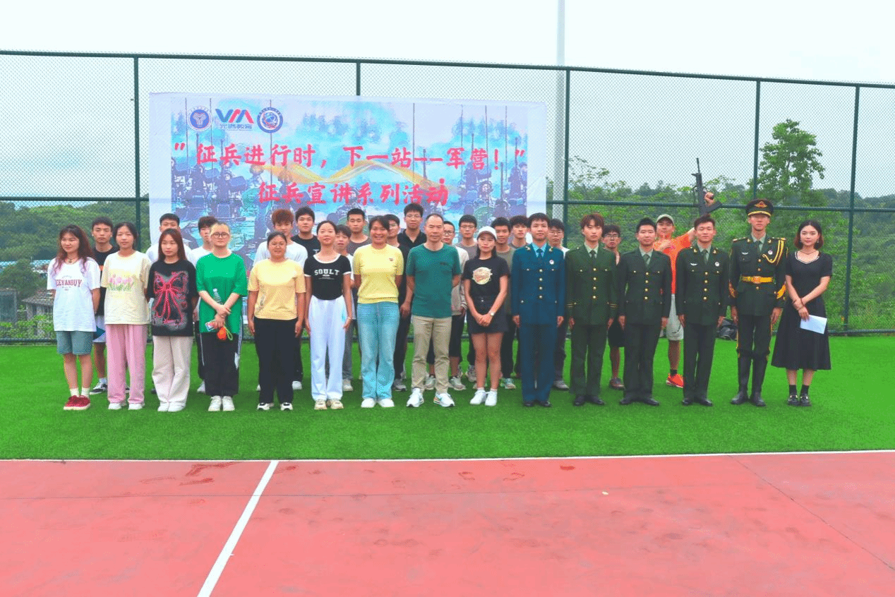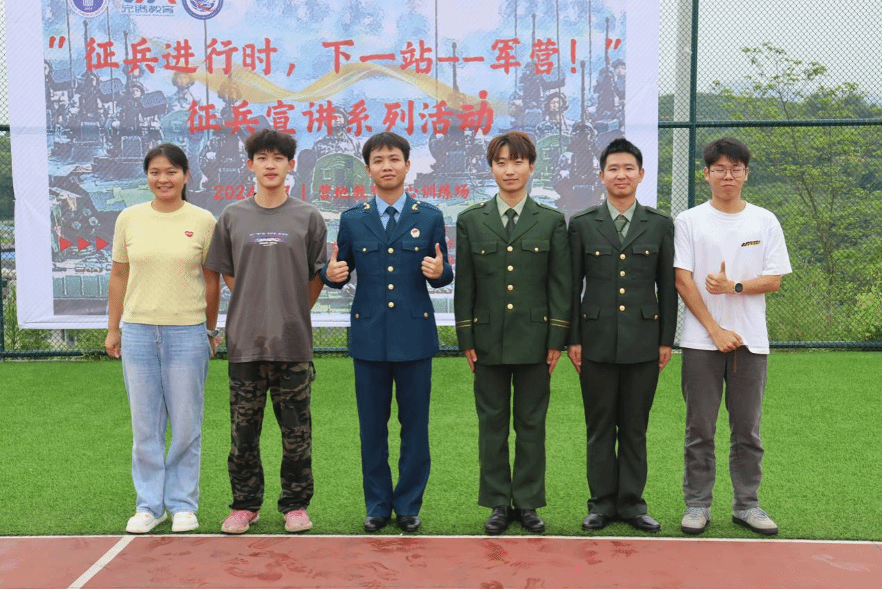 2024年6月7日13:00由通信与信息工程学院体育部联合迷彩俱乐部在营地教育中心训练场举办了一场“征兵进行时,下一站,军营”为主题的活动正在这里如火如荼地展开。这不仅是一次征兵宣传,更是一次点燃大学生爱国热情与责任担当的盛会。本次活动由綦江校区通信与信息工程学院的40余名师生共同参与。