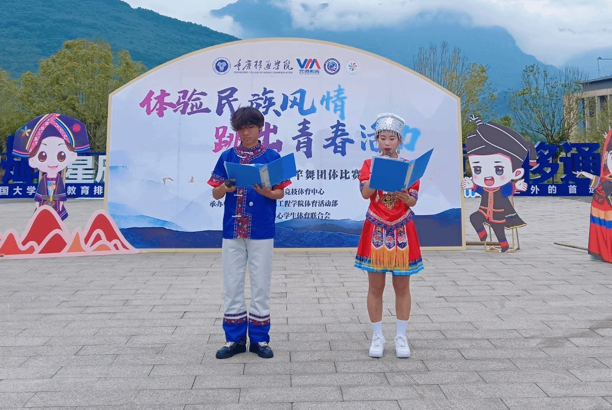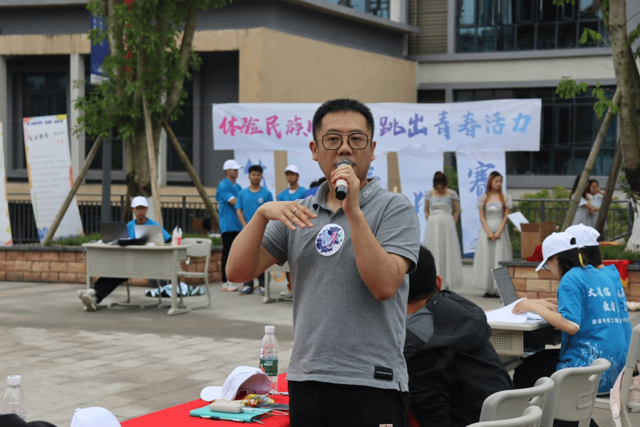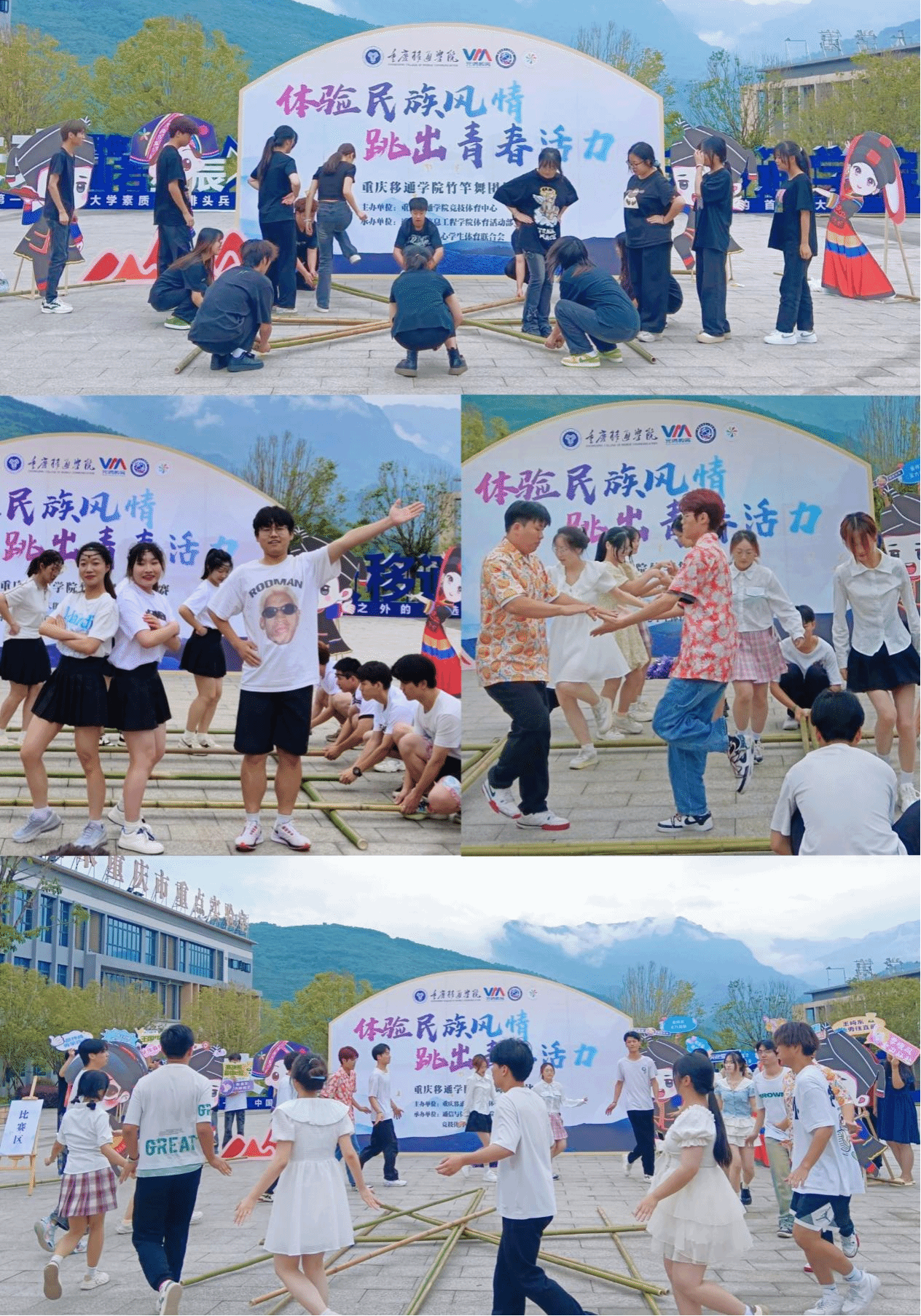 为积极响应校园体育文化节的号召,传承和弘扬我国传统民族文化,丰富校园体育文化生活,提高大学生团队协作能力,重庆移通学院“体验民族风情,跳出青春活力”竹竿舞团体比赛于2024年5月29日在图书馆前广场举行。此次活动由通信与信息工程学院体育活动部与竞技体育中心学生体育联合会联合举办,共有来自9个学院组成的8支队伍参赛,150余名同学欢聚图书馆门前,一起体验竹竿舞的乐趣,感受传统民族体育项目的魅力。