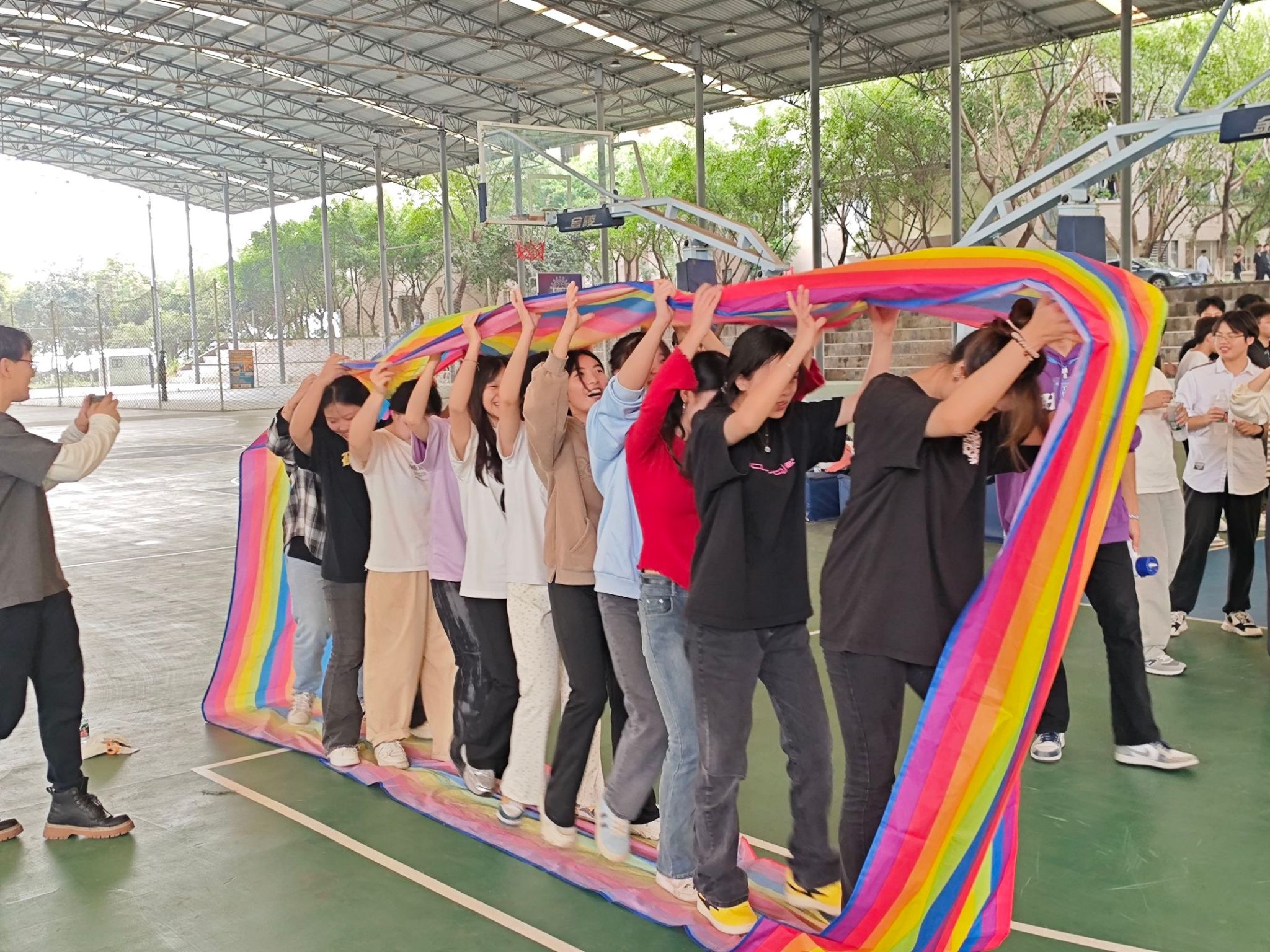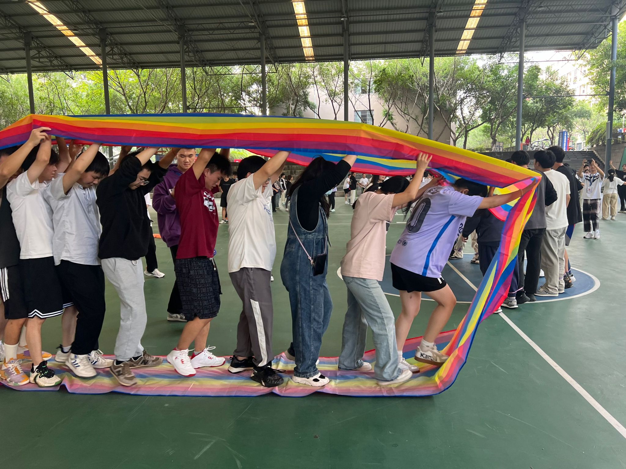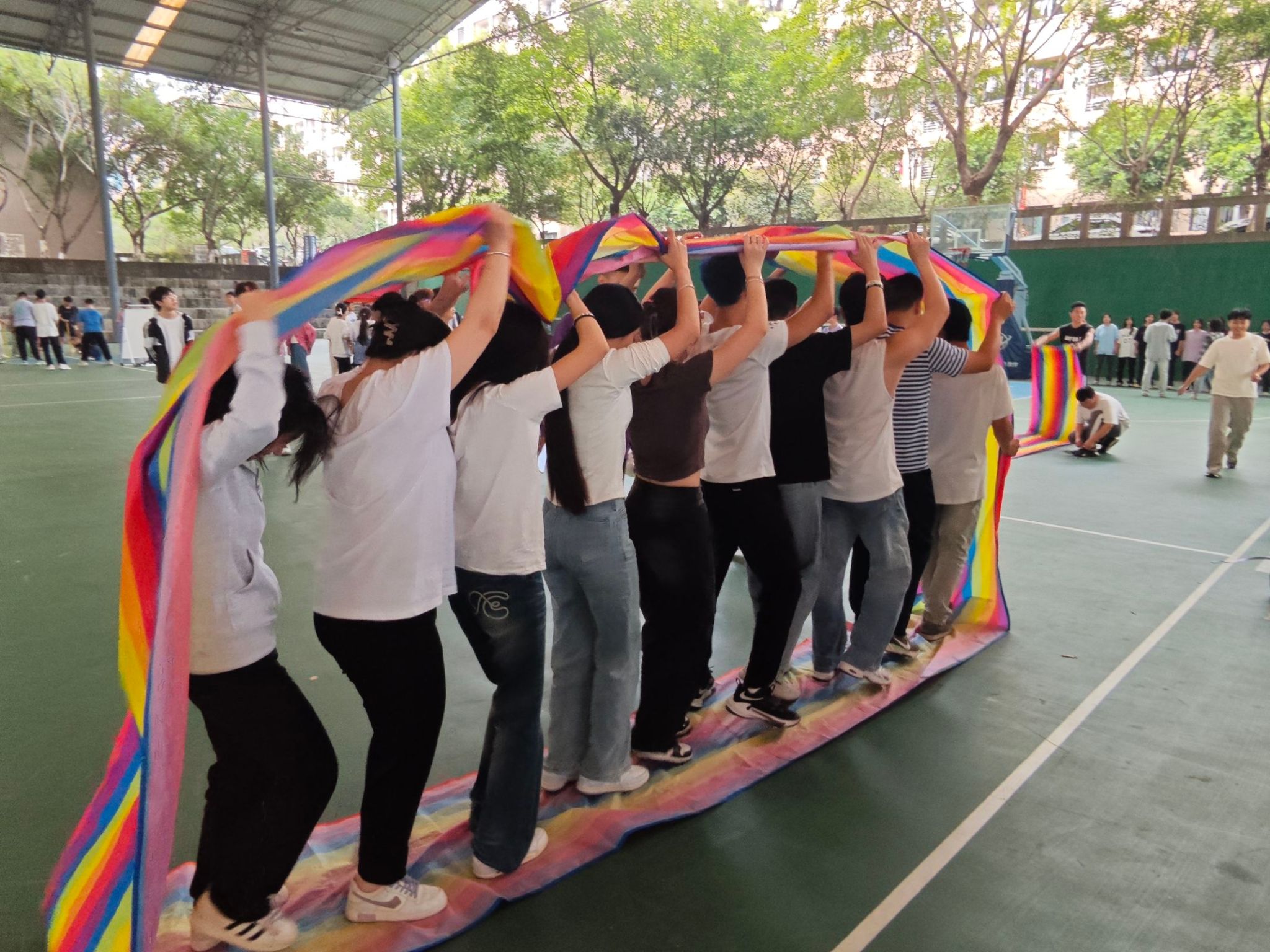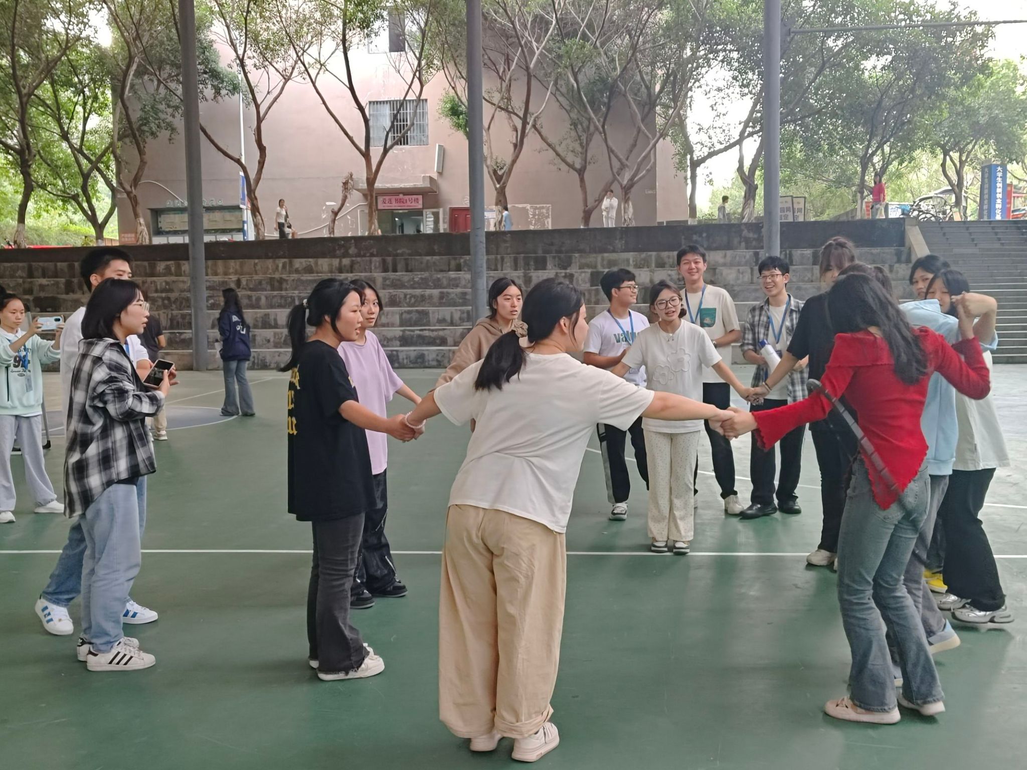 通过手拉手传递呼啦圈,老师与同学们在相互协作中增进了情感,同时也加深了彼此间的信任与了解。欢声笑语中,不仅促进了同学间的友谊,也增强了团队的凝聚力。这次活动再次印证了团结合作的力量,为参与者们留下了难忘的回忆。