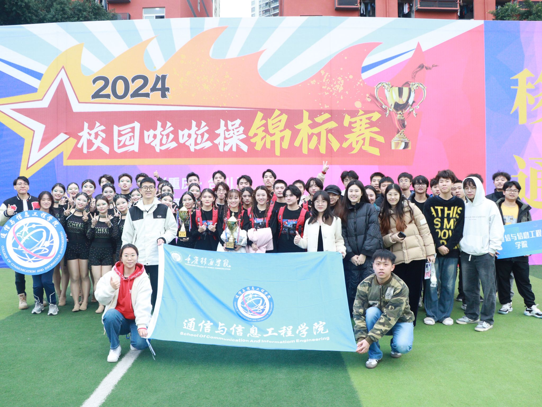 青春舞动—犹如奔腾的江河,永不停歇、一路高歌,展现出无尽的朝气与活力。2024年11月20日重庆移通学院(合川校区)2024校园啦啦操锦标赛在校田径场圆满举办。通信与信息工程学院共啦啦操和街舞两支队伍参赛,28位同学参加,荣获集体自选花球冠军、集体街舞亚军、团体总分第二名的好成绩。