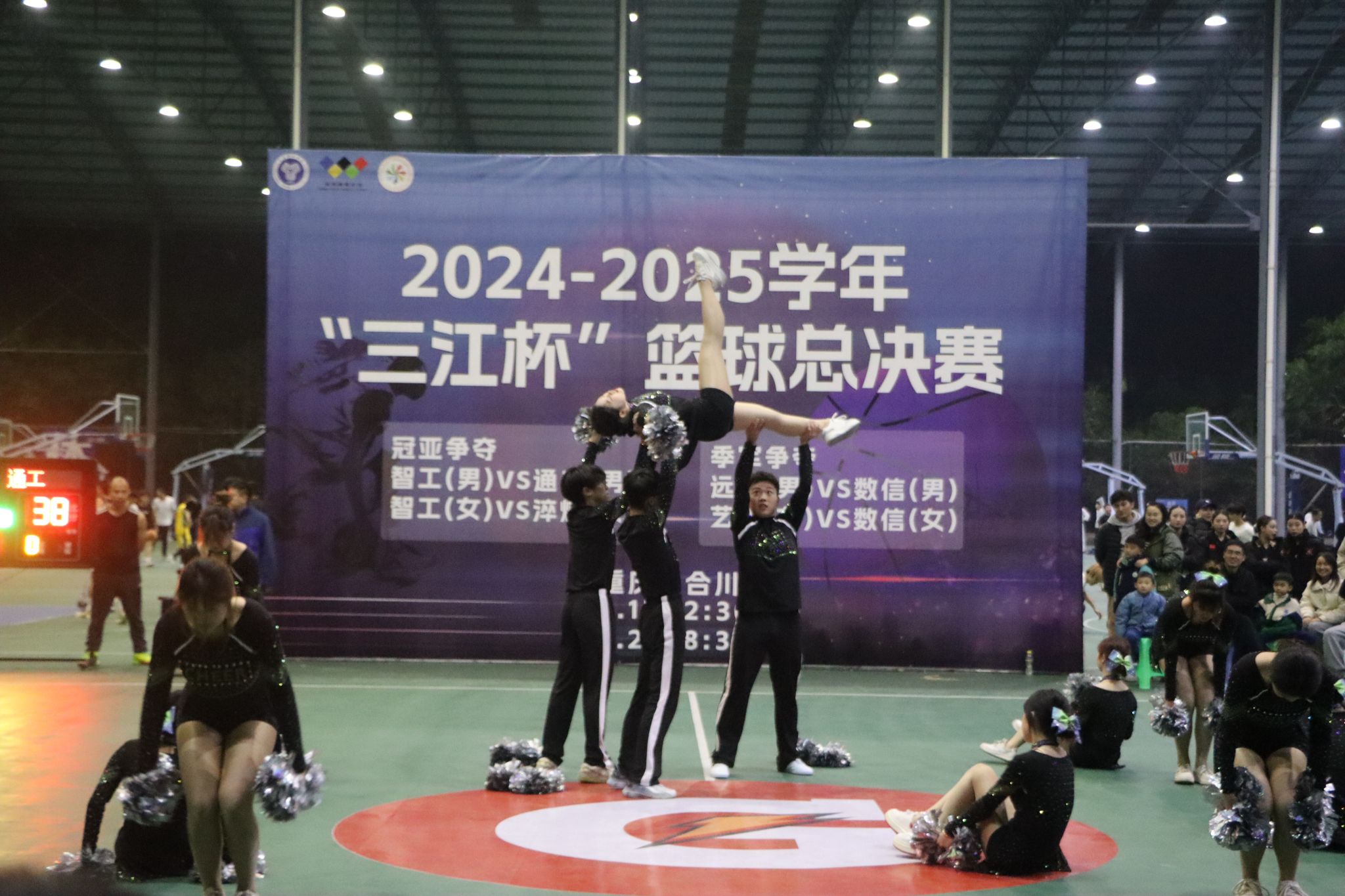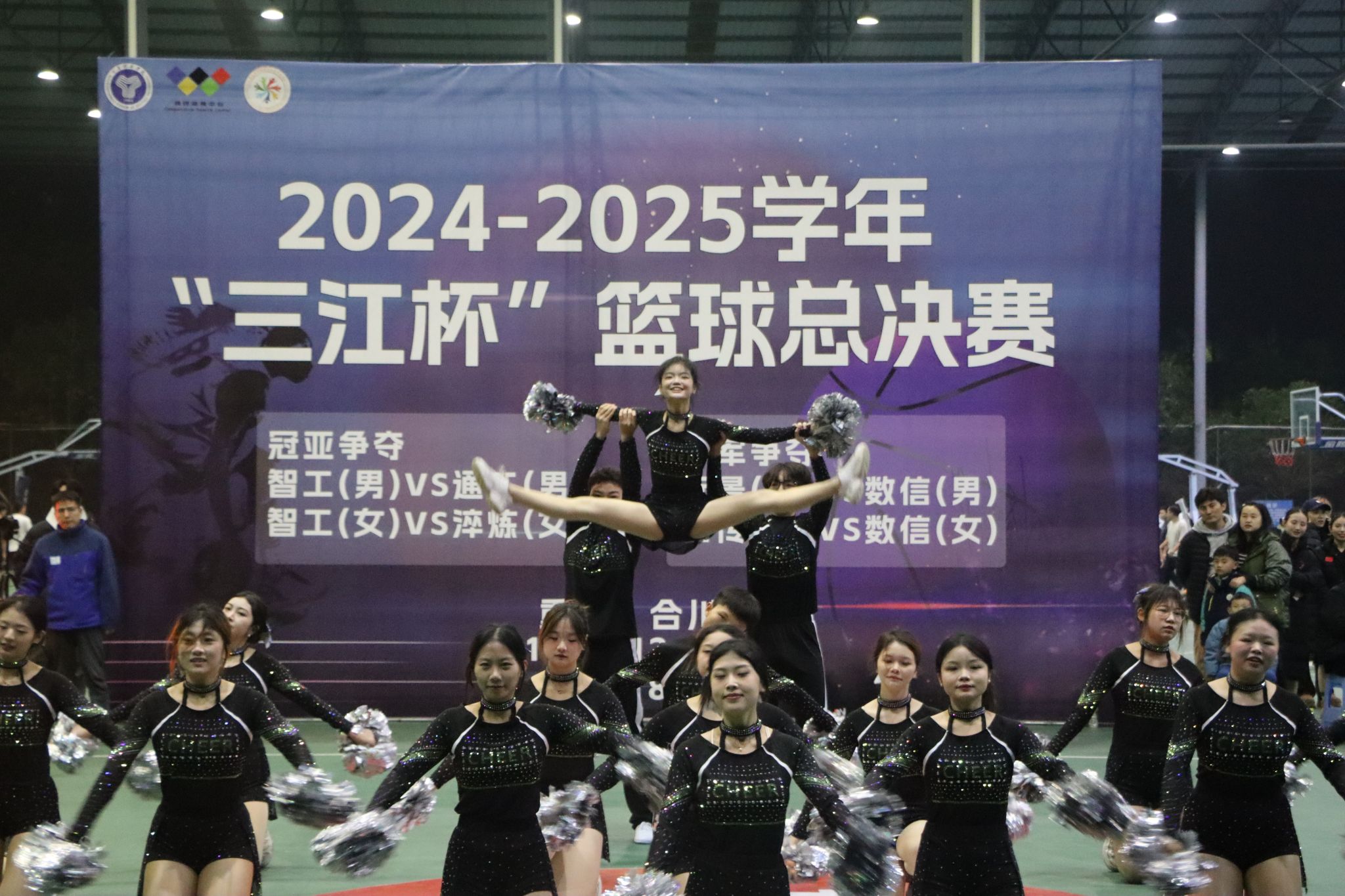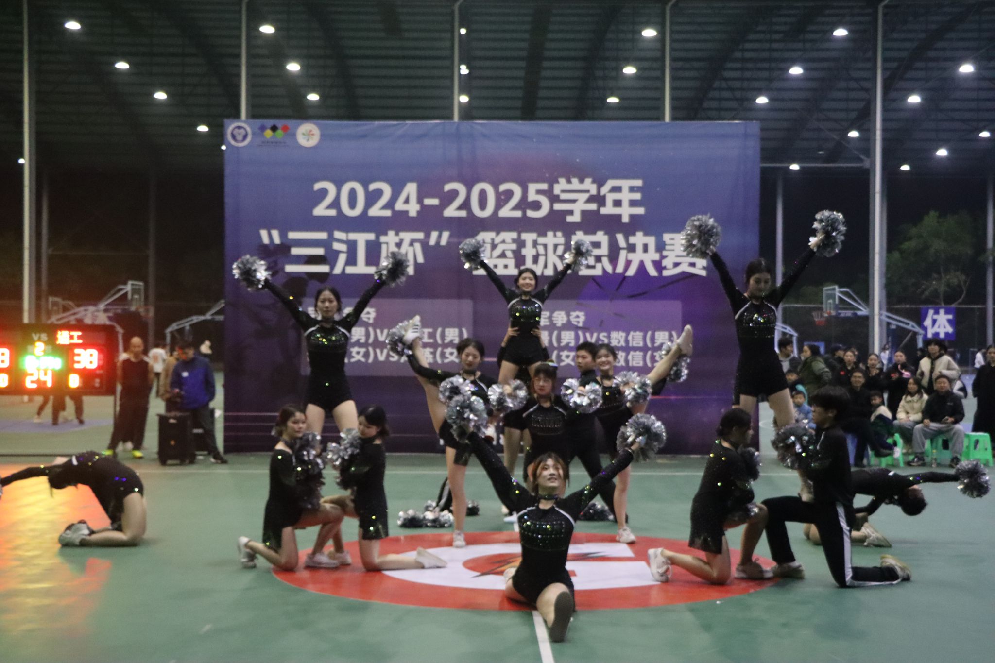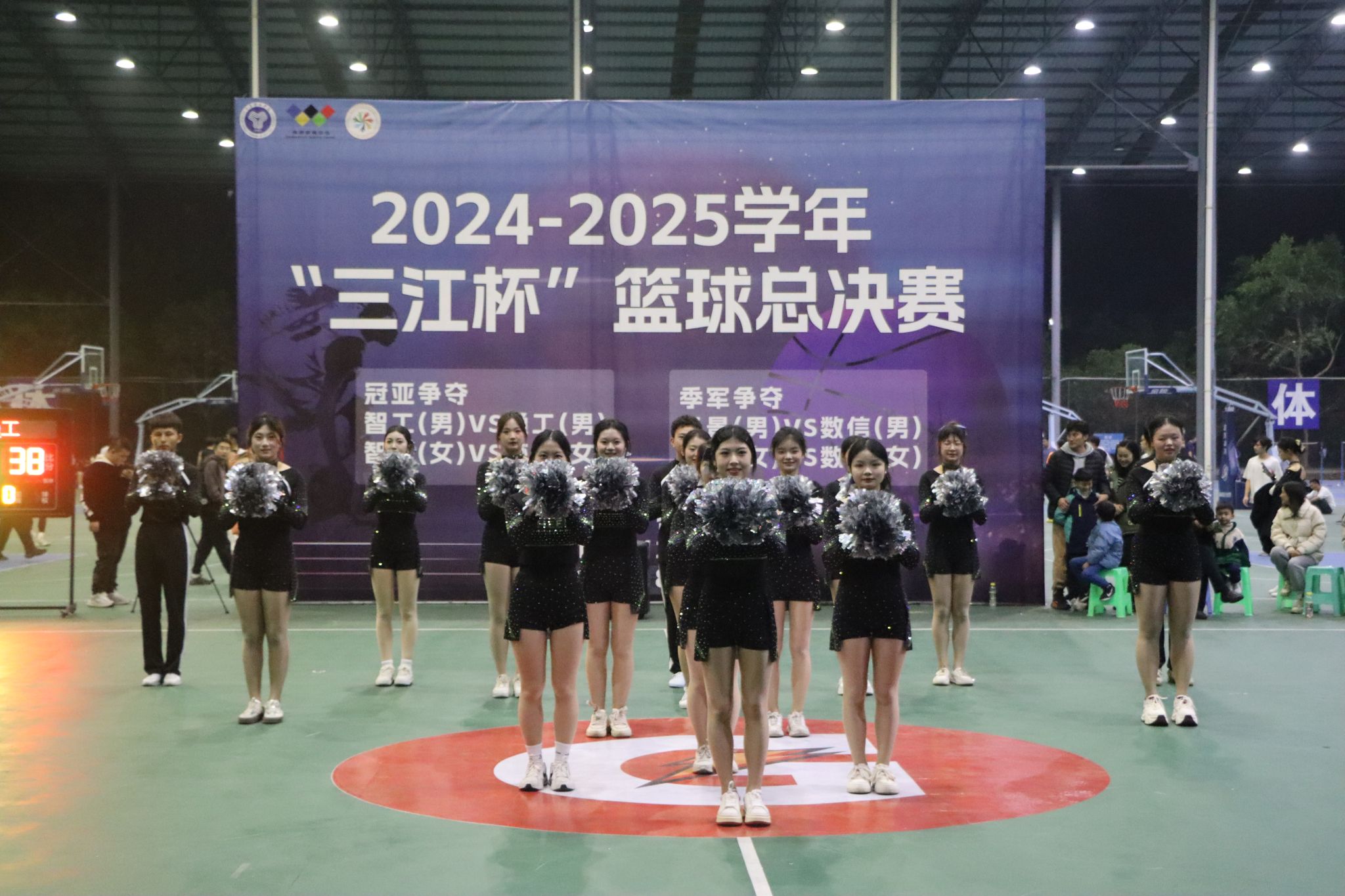 比赛虽然落幕,但篮球之魂却在每一位参与者心中熊熊燃烧。无论是场上的激烈对抗,还是场下的相互鼓励,都展现了通信与信息工程学院学子们积极向上、勇于拼搏的精神风貌,通信与信息工程学院啦啦操队也在中场休息时来为队员们加油打气!。
