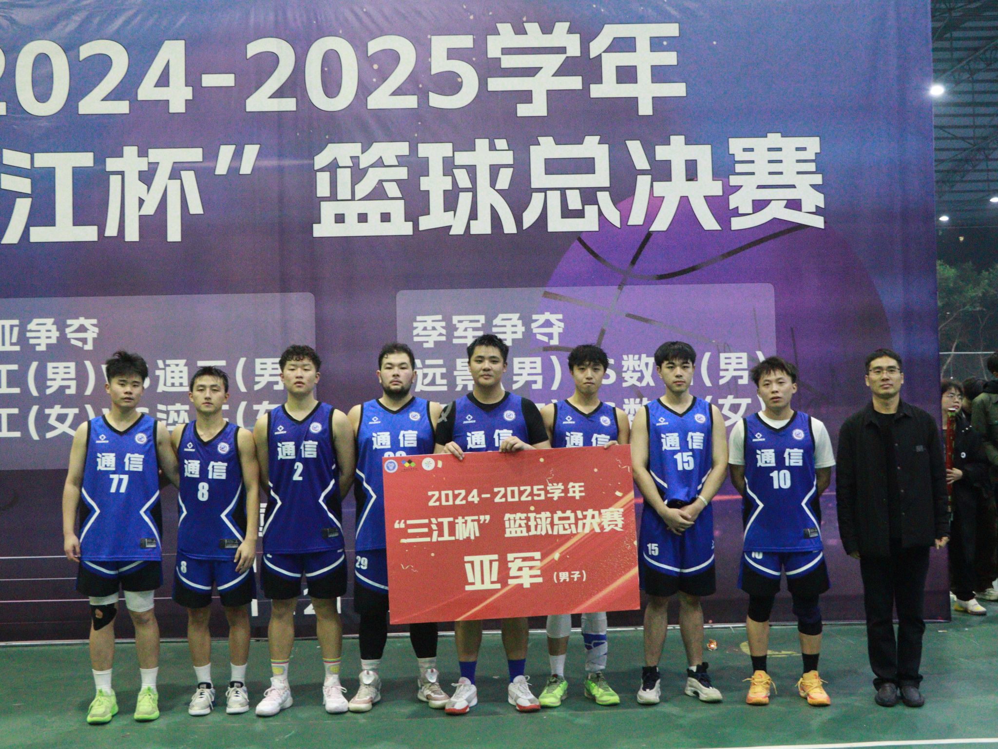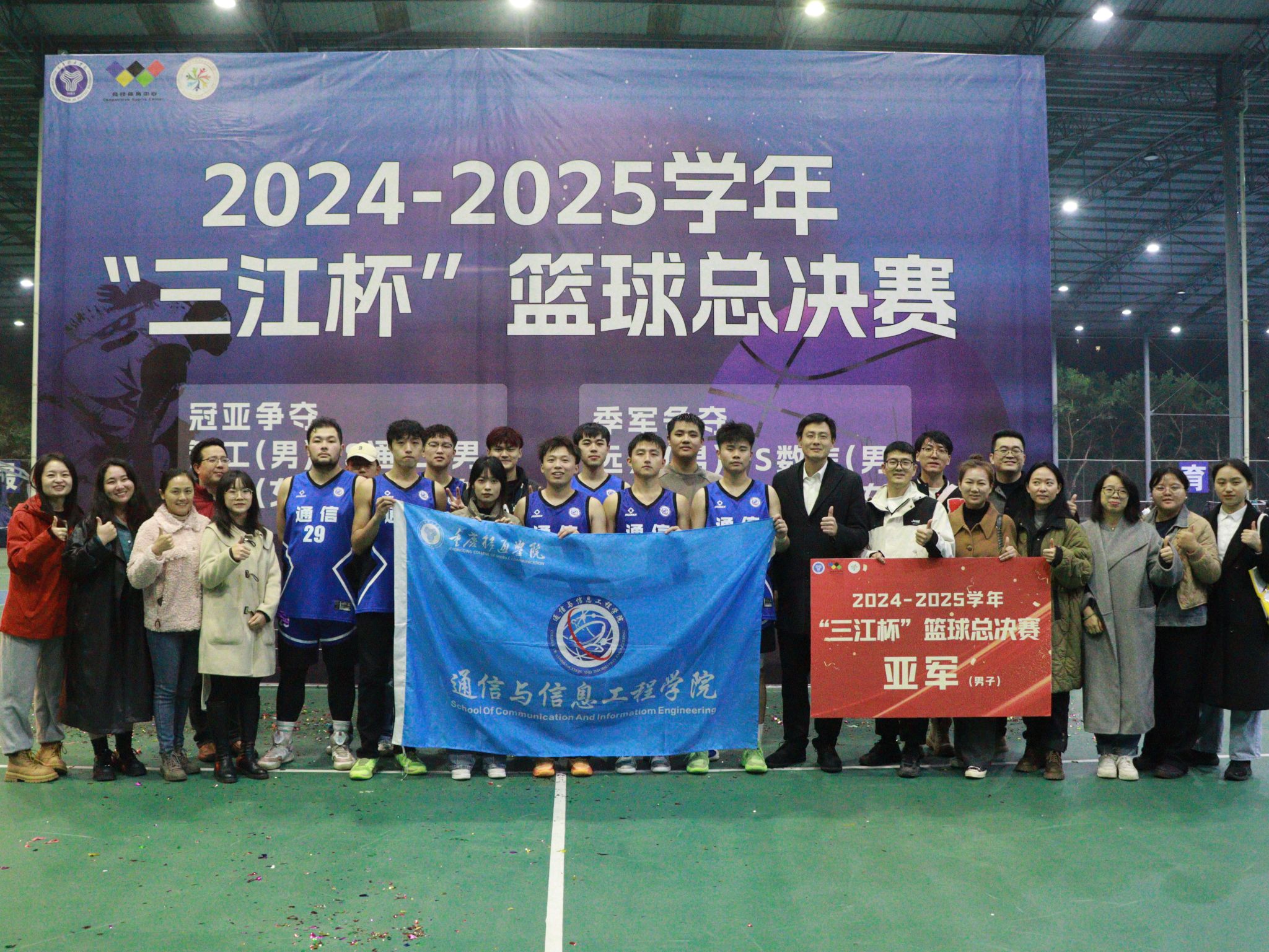 2024年11月21日,通信与信息工程学院“三江杯”篮球决赛于19:00在风雨球场开赛。通信男篮一往无前、奋勇拼搏获得本次“三江杯”篮球亚军。