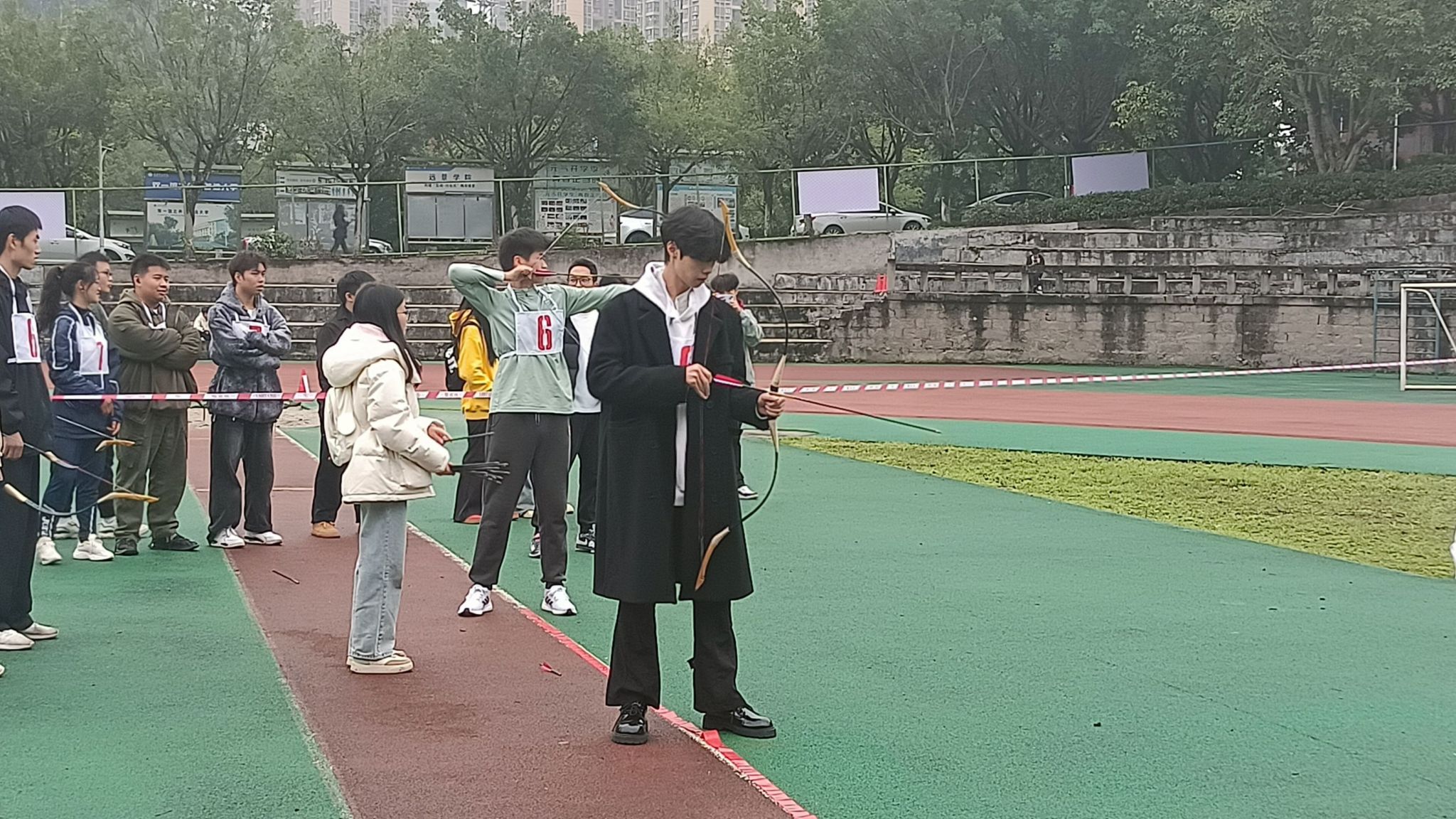 通信学子轻抚特制弓身,纹理镌刻民俗印记。拉弓发力时,坚毅神情透壮志,矢志所往,是对技艺尊崇、对传统赓续。此项目通信学子表现亮眼,凭借出色发挥荣获本场第二。