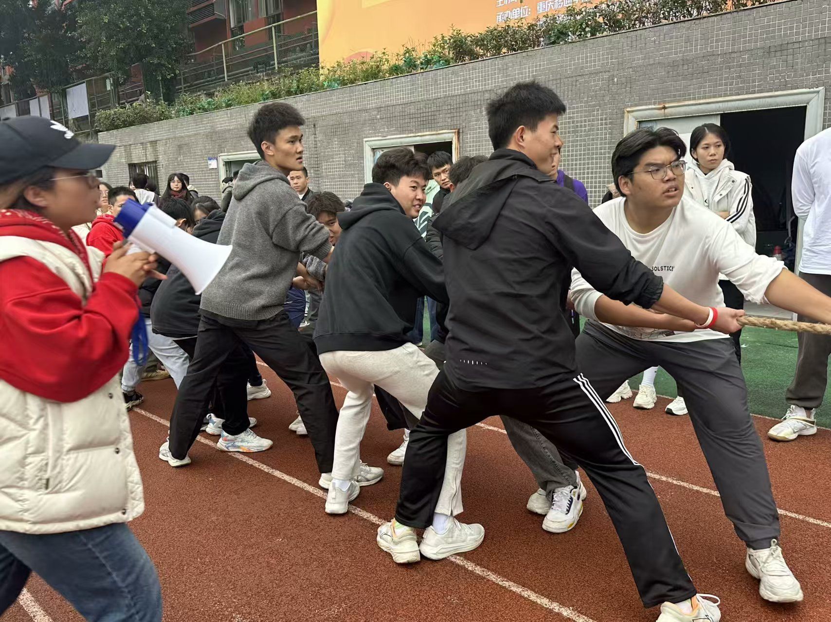 赛场上,那根粗壮拔河绳似纽带,串联起通信学院健儿。他们双手紧握、脚掌蹬地,肌肉紧绷、目光坚毅。每一次奋力拉扯,皆汇聚各位参赛队员的磅礴之力,伴随震天呐喊,将团结一心的热忱凝于绳间,拔动的是向胜利奋进、共筑情谊的赤诚之心,通信学子团结一致取得此项目二名。