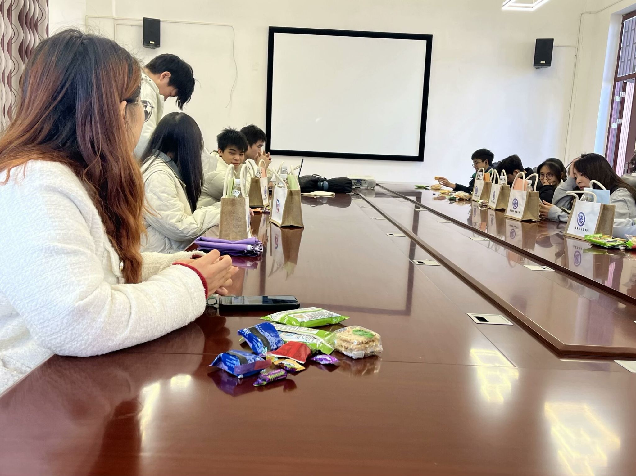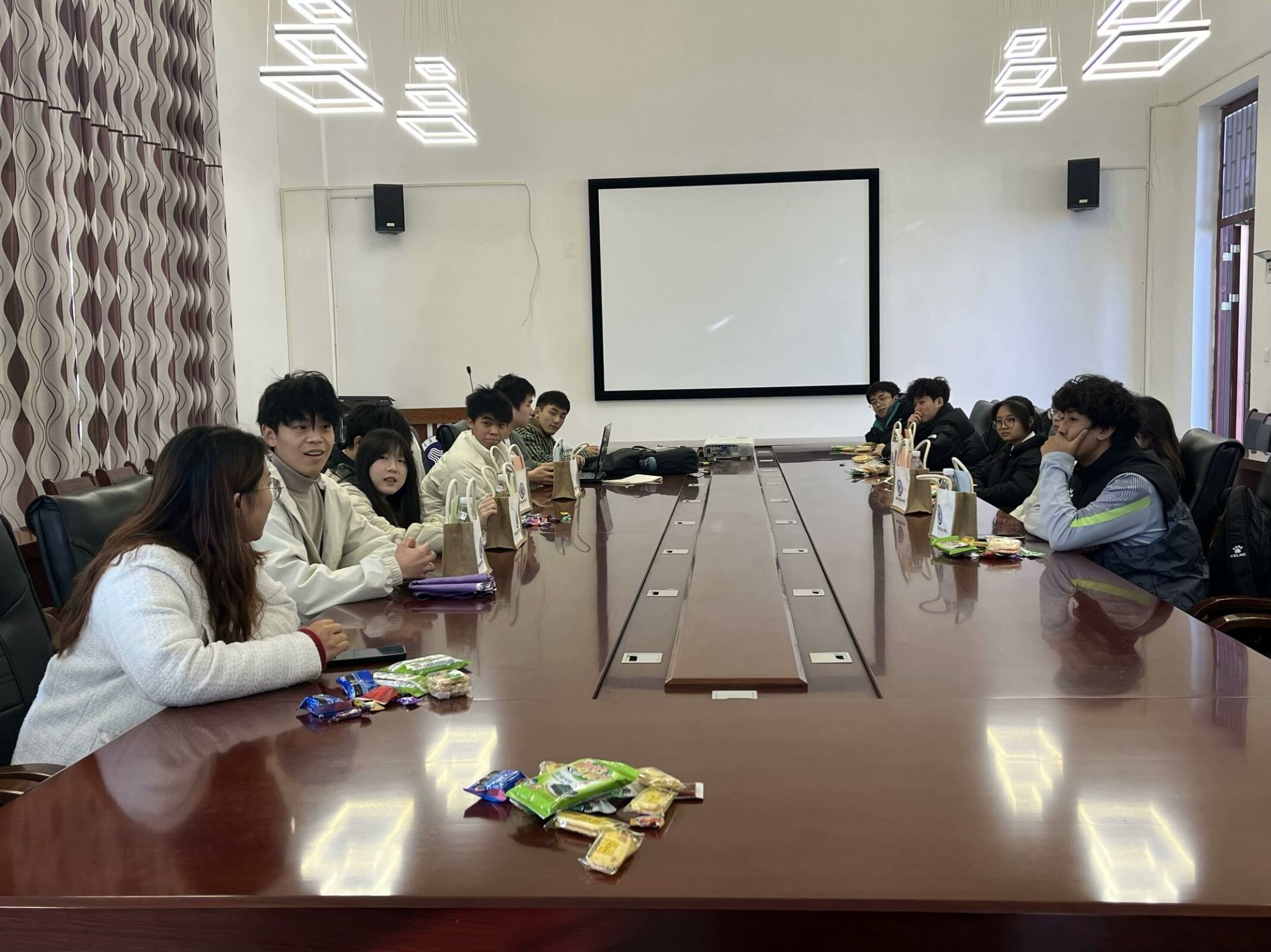 在积极交流合作的热潮中三院外联部成员齐聚一堂。通信与信息工程学院为两院部门准备了一份小小的礼物。其中包含了一罐可栽培的植物种子,它的结果拥有无限的可能就像我们三院的合作虽然刚萌也同样有无限可能。智能工程学院与外国语学院为大家提供了多种零食,大家坐在一起倾心交谈着工作。
