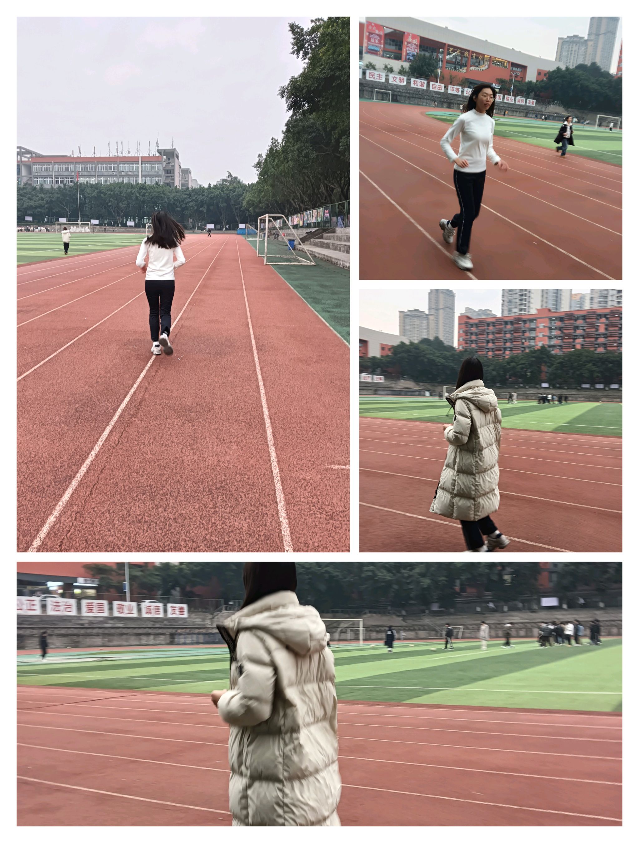 无论在晨曦微露的操场,还是夜幕低垂的跑道上,校园各隅均映照着同学们奔跑的剪影。我们亦捕捉并记录下他们跑步途中的欢愉时光。
