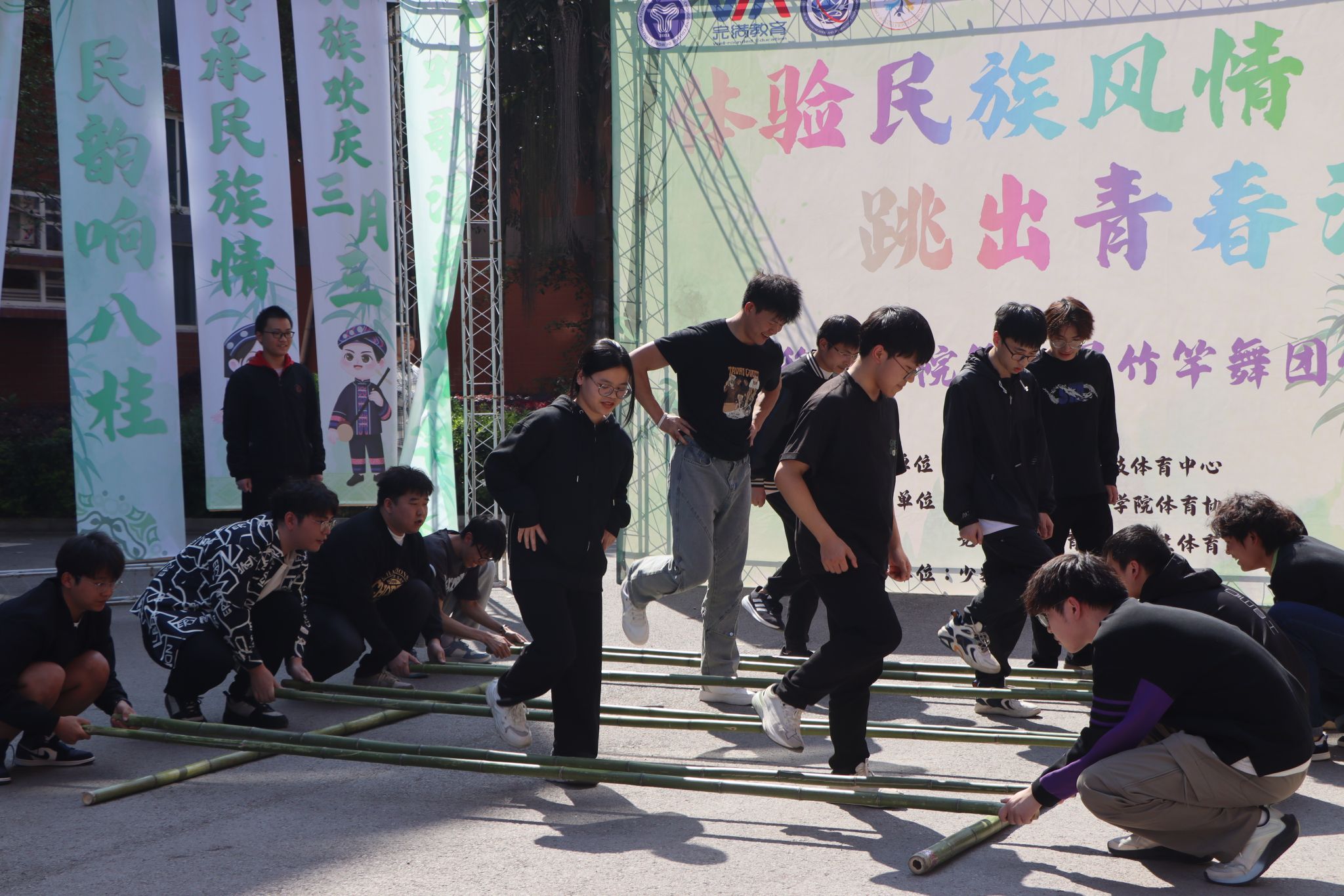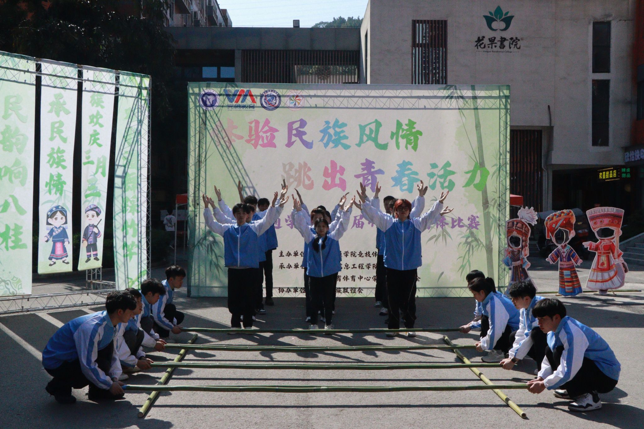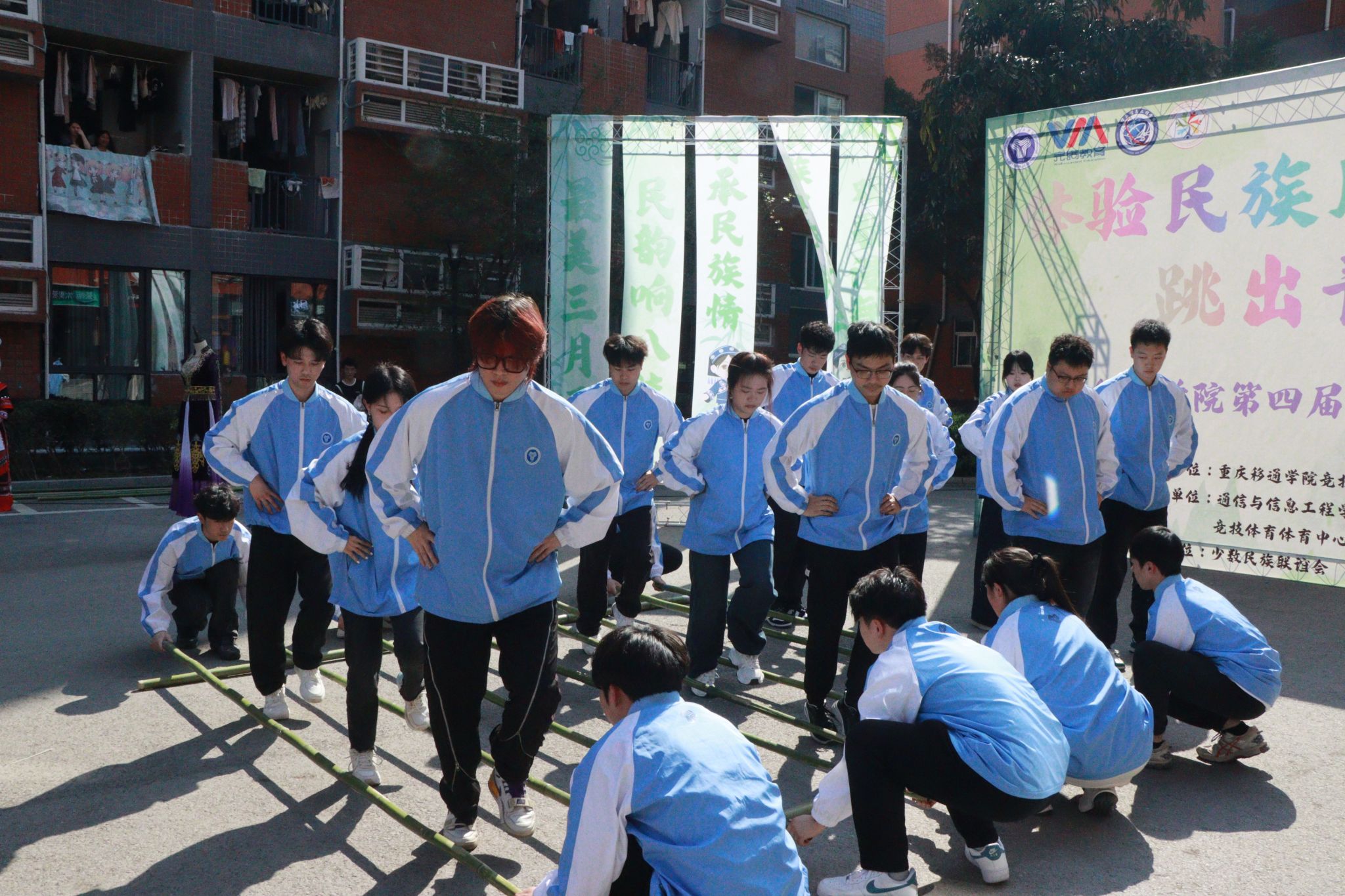 为积极响应校园体育文化节的号召,传承和弘扬我国传统民族文化,丰富校园体育文化生活,提高大学生团队协作能力,重庆移通学院“体验民族风情,跳出青春活力”竹竿舞团体比赛于2025年3月26日在花果书院小广场举行。此次活动由通信与信息工程学院体育协会与竞技体育中心学生体育联合会联合举办,少数民族联谊会协办。共有8支队伍参赛,150余名同学欢聚花果书院门前,一起体验竹竿舞的乐趣,感受传统民族体育项目的魅力。