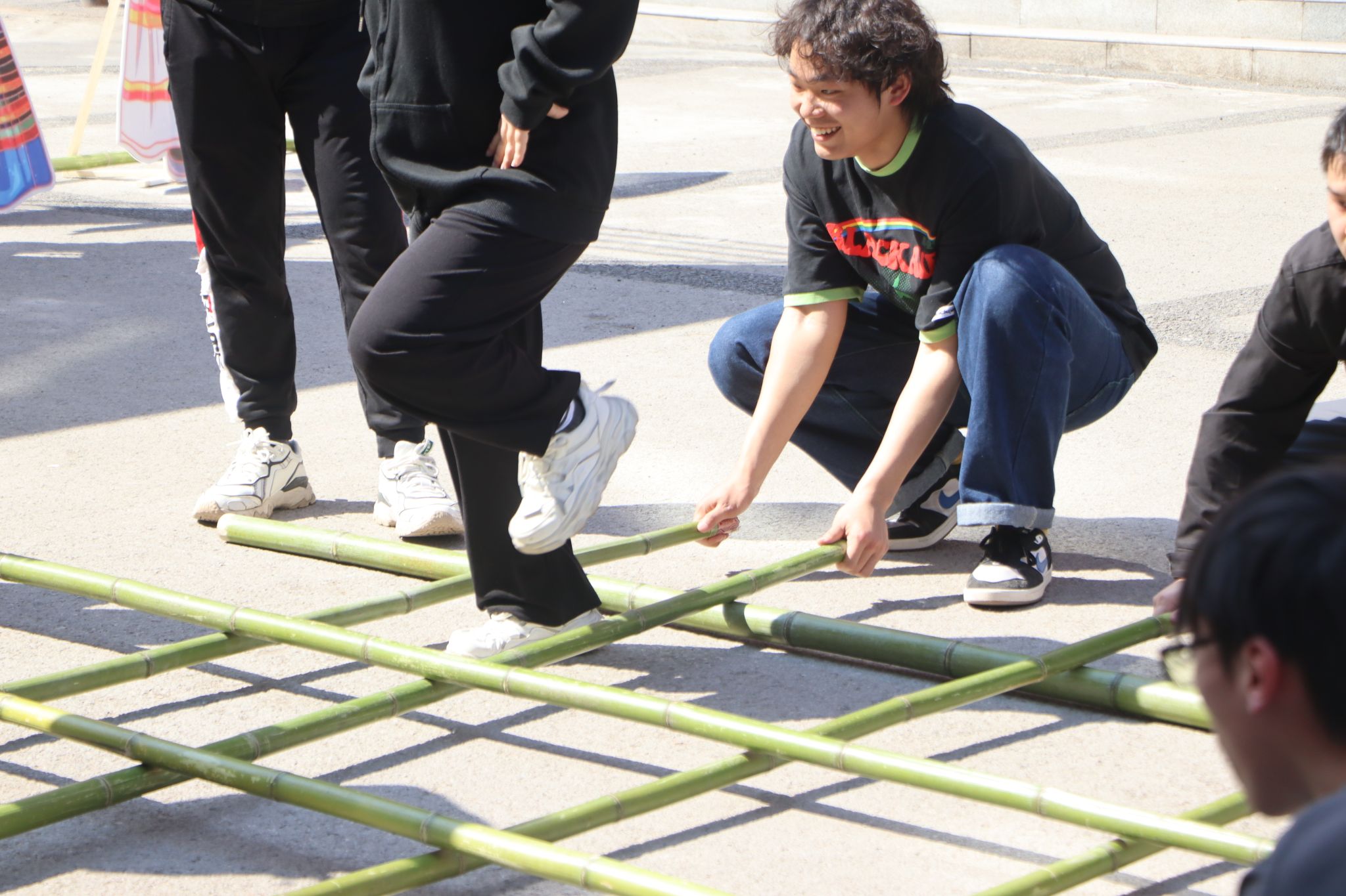 竹竿音符响全场,舞影翩翩动人心。随着激昂的鼓点响起,各队伍的表演逐渐展开。打竿人员手持细长的竹竿,开始有节奏、有规律地分合手中竹竿,并以“井”字为基础,将竹竿摆放成“米”字、“十”字、“多排”形等各种独特的造型,传统与现代的融合,令人眼前一亮。在节奏鲜明的竹竿声中,舞者们则在竹竿分合的瞬间,敏捷地进退跳跃,他们或如燕子般轻盈地掠过竹竿,或鱼跃穿过由竹竿竖立而成的“龙门”,尽兴而欢又寓意美好。