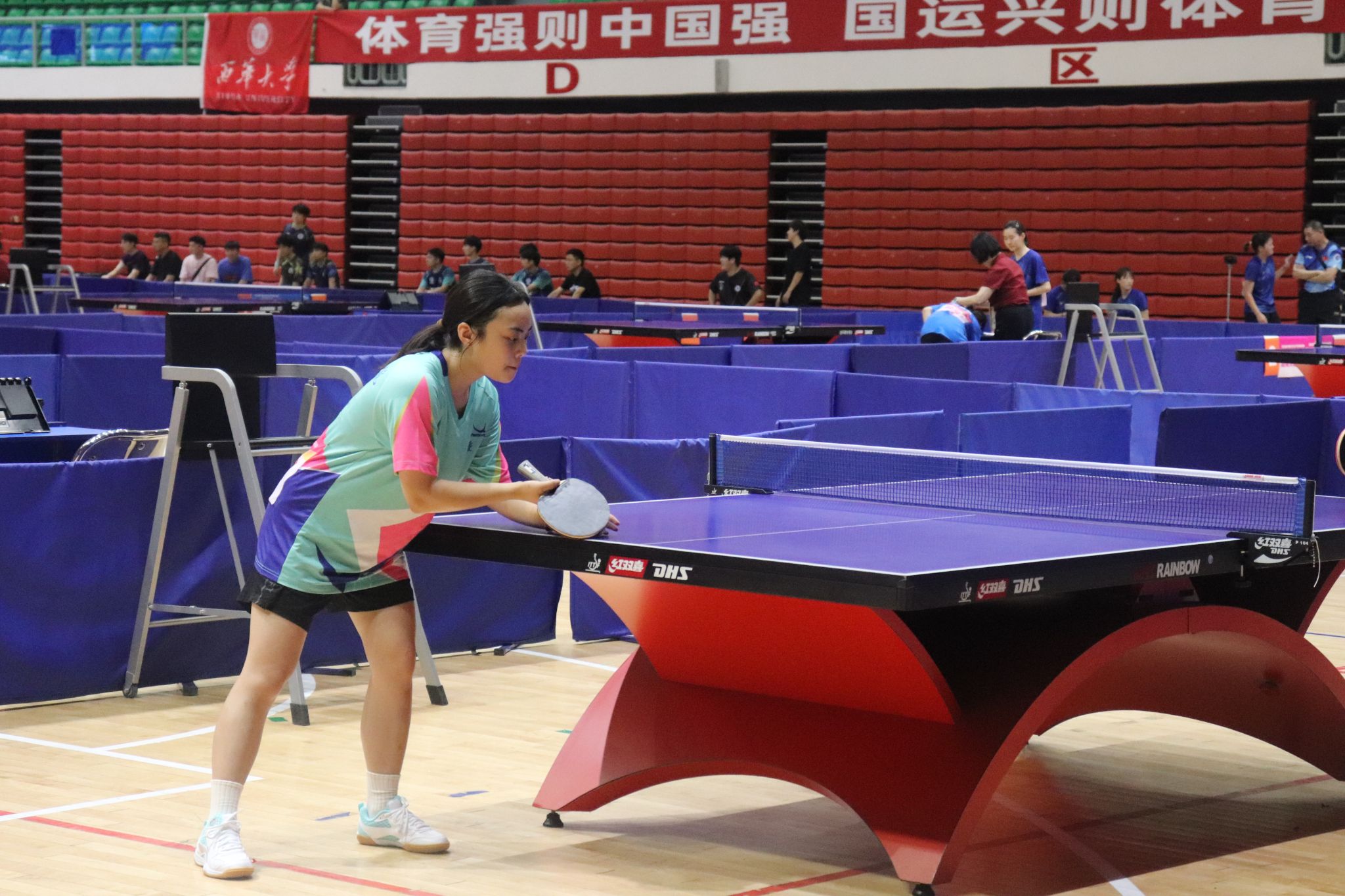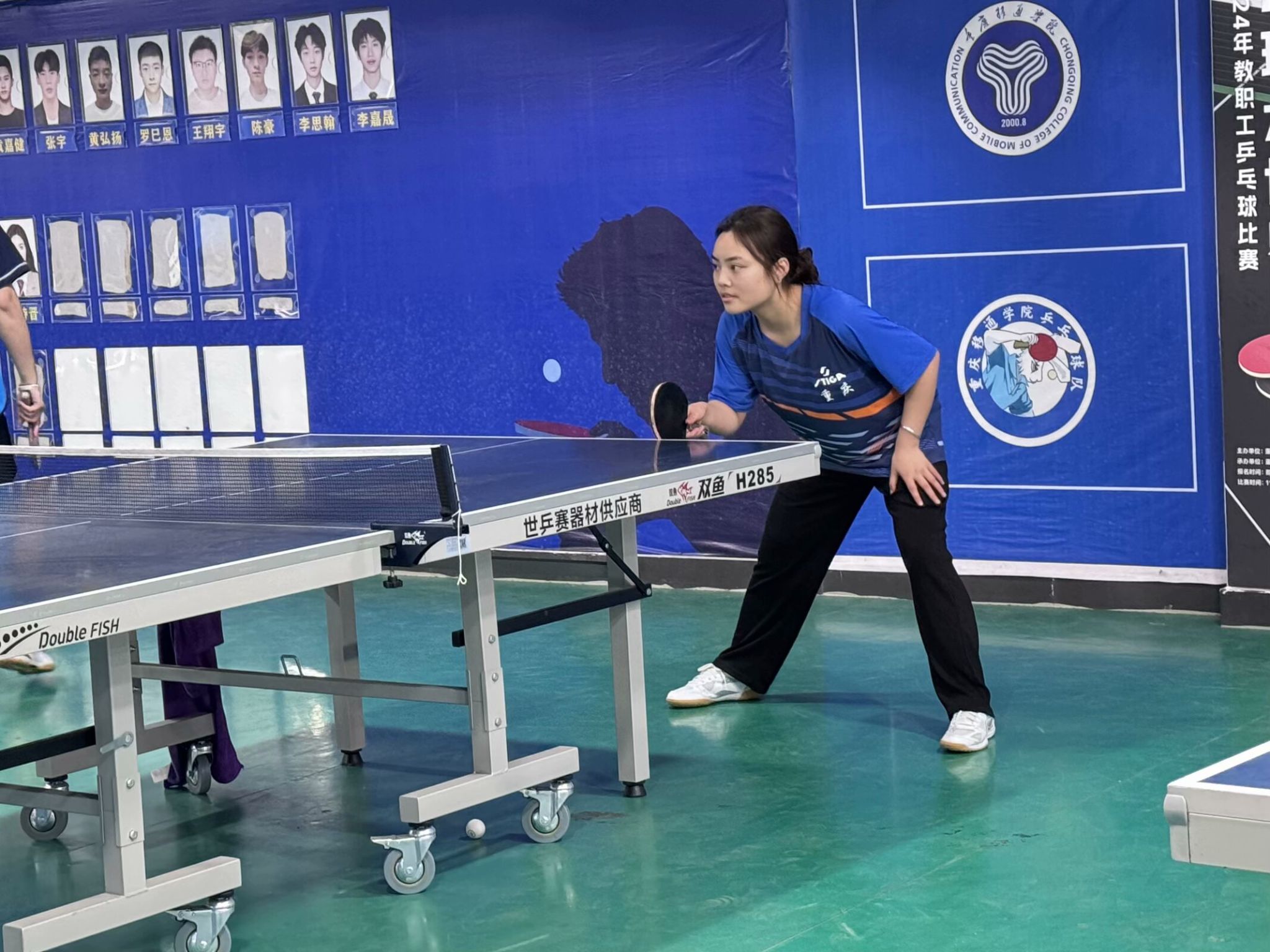 在赛场的灯光下,通信与信息工程学院的两位主力队员正为夺冠之战做着最后准备。人工智能专升本4班的李春蓓手持横拍,正手反胶与反手长胶的特殊胶皮配置在灯光下泛着微光。日常训练中保持着单日400次多球连打的强度记录,在本届三江杯中成功克制三位种子选手的进攻,关键场次得分率高达82%。