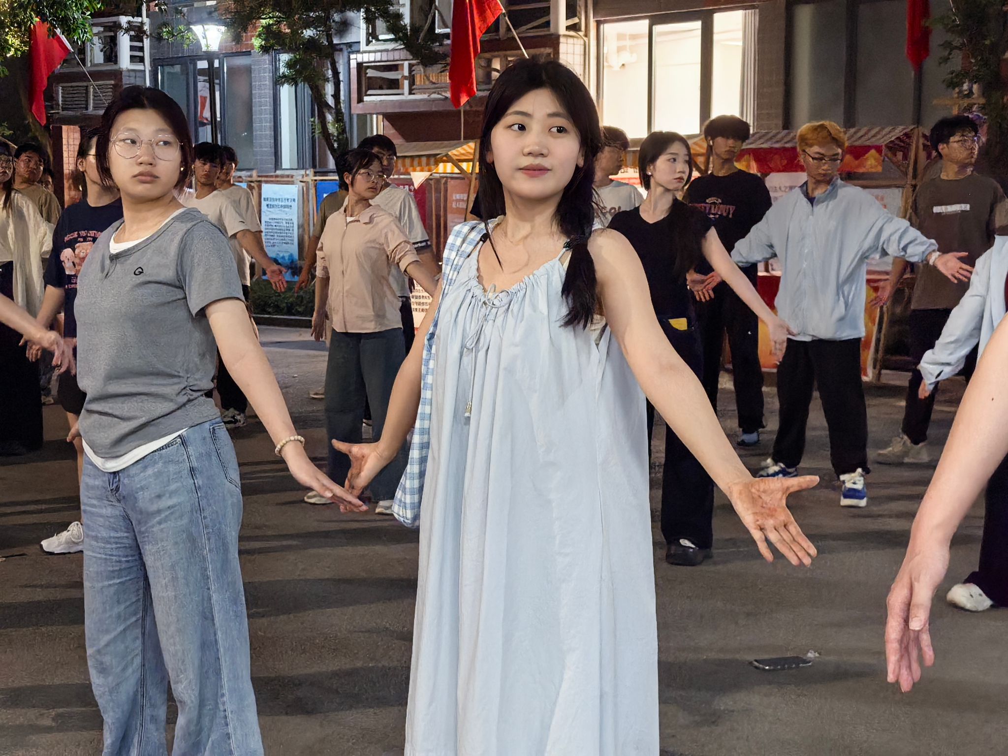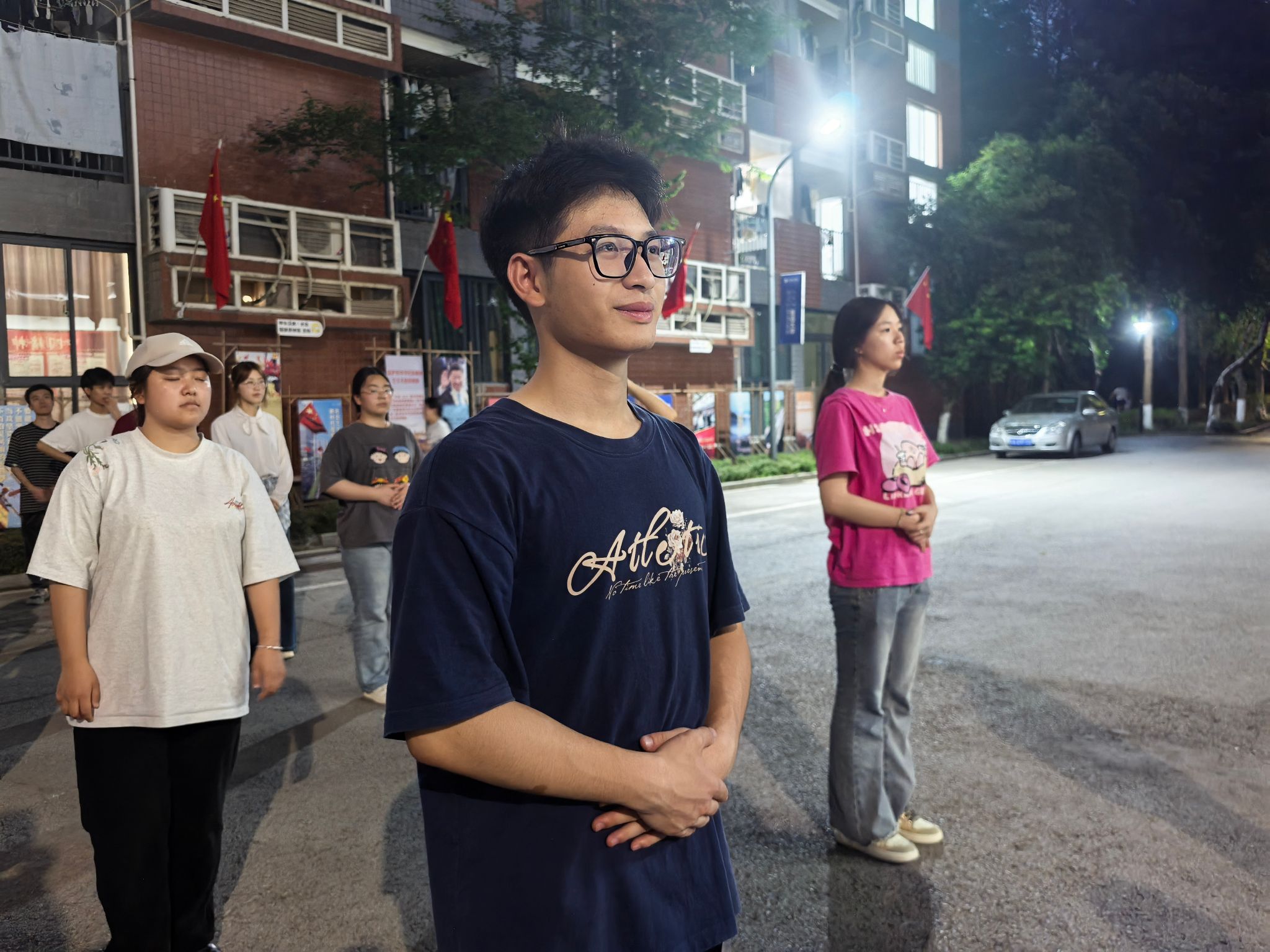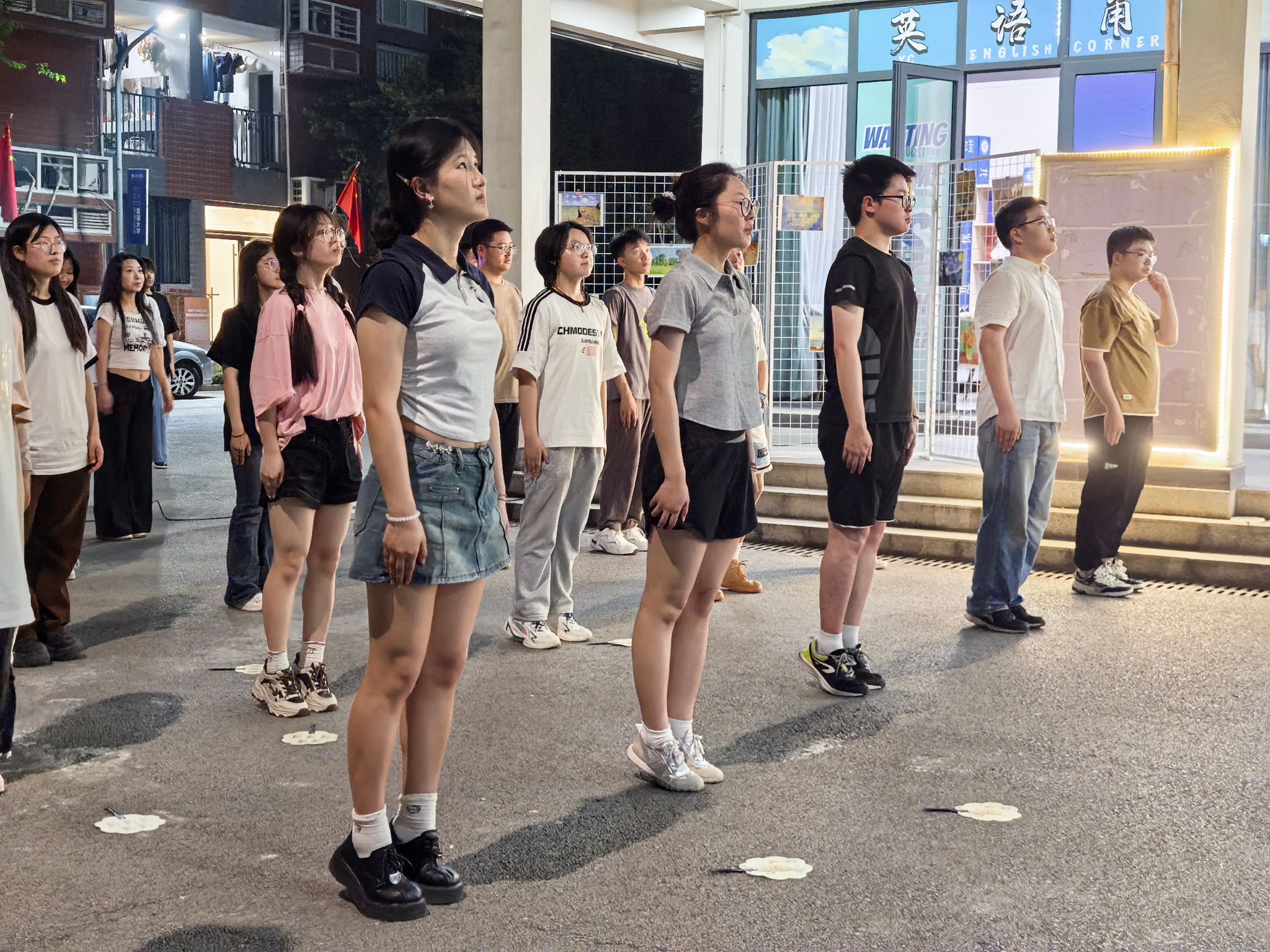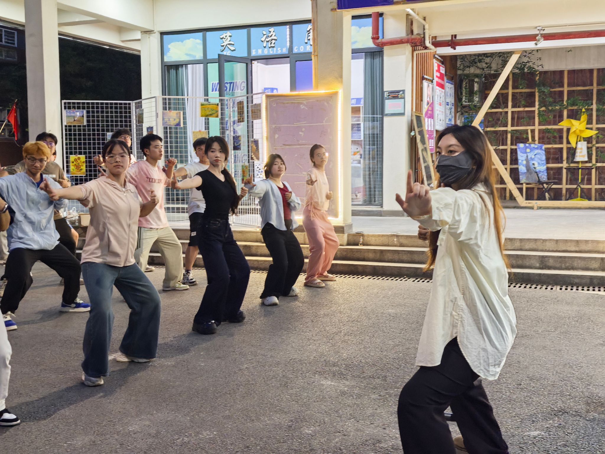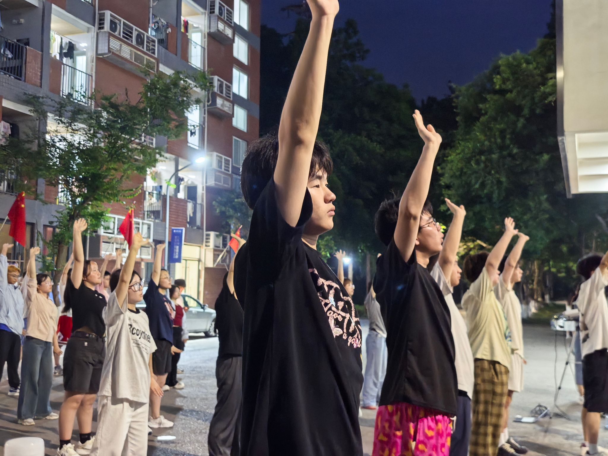 训练初期,队员们对 “两手托天理三焦”“左右开弓似射雕” 等招式的发力方式和呼吸节奏掌握不足,动作常显僵硬。我们邀请鱼城书院的老师进行动作指导。第一次合练时,队伍的连贯性差,单是的转手角度就反复纠正。傍晚的训练场不仅是技能提升的阵地,更是团队凝聚力的熔炉。老师们的精心指导,成员们互相纠错,互帮互助。“那些在夕阳下挥汗的傍晚,让我们真正懂得了‘台上一分钟,台下十年功’的含义。”