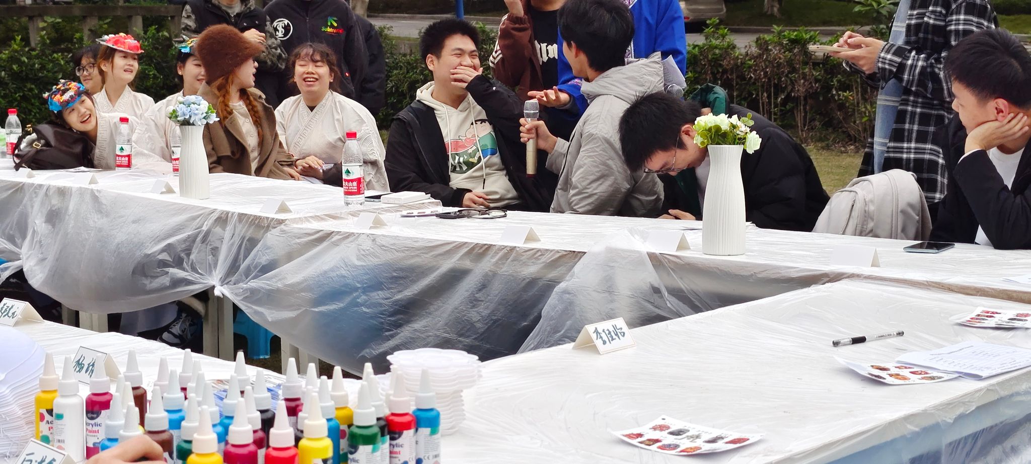 首先开启的是成语接龙小游戏,这一环节巧妙地效仿古时曲水流觞的雅趣,瞬间让现场的气氛活跃了起来。只见同学们纷纷开启 “最强大脑” 模式,一个个成语脱口而出,你来我往,应对自如,充分展示出了大家扎实的知识储备。现场欢声笑语不断,洋溢着青春的蓬勃朝气与活力,仿佛被一片热烈又欢快的氛围所笼罩。