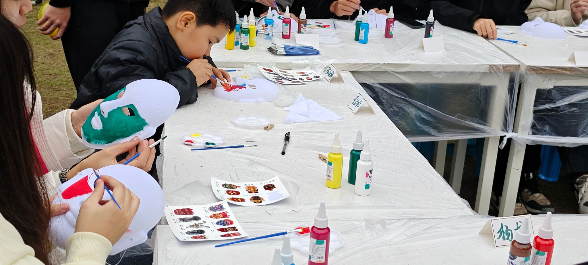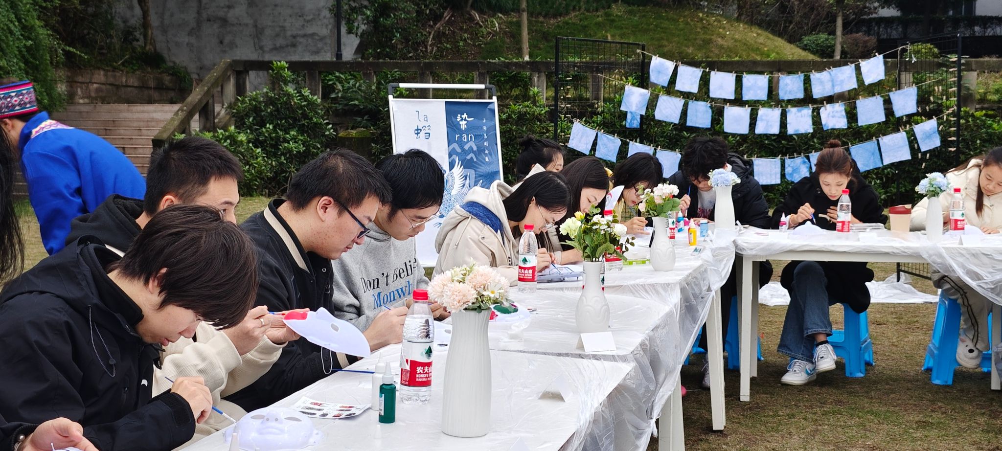 精彩绝伦的傩戏舞蹈表演结束后,傩戏面具制作和蜡染体验活动紧接着热闹开场了。