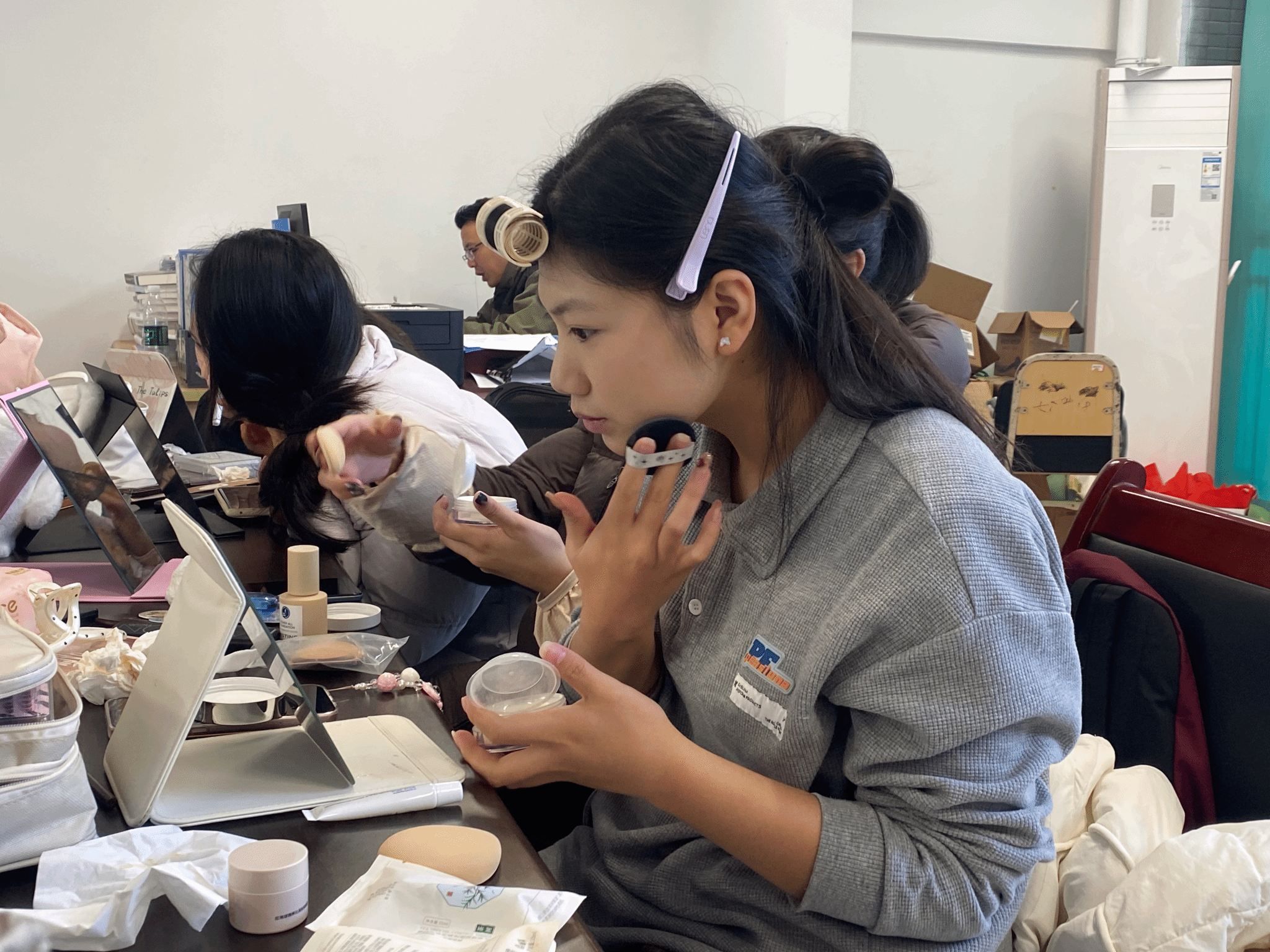 比赛当日,全体同学在第二实验楼集合,精心描绘妆容,整理发型,身着盛装,以最佳形象示人。他们眼中满是对舞台的向往,活力满满、姿态优美地登上舞台,尽显通信学子卓越风采。