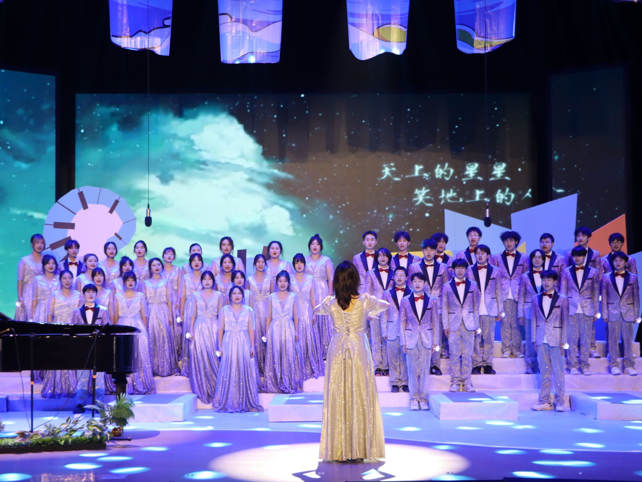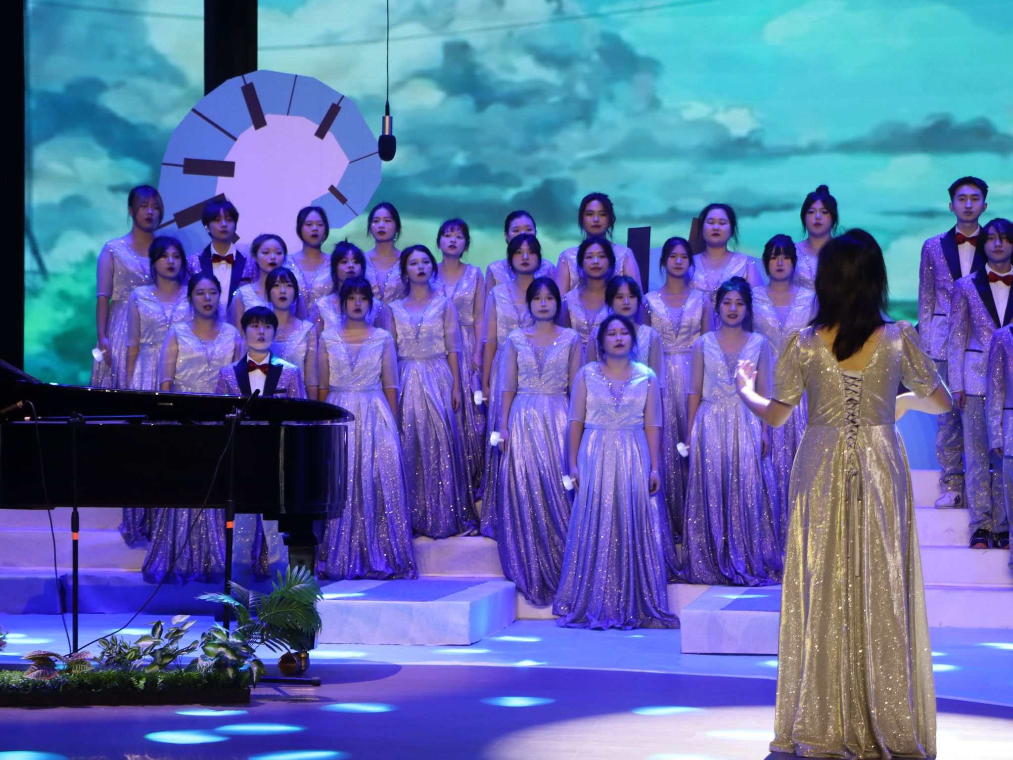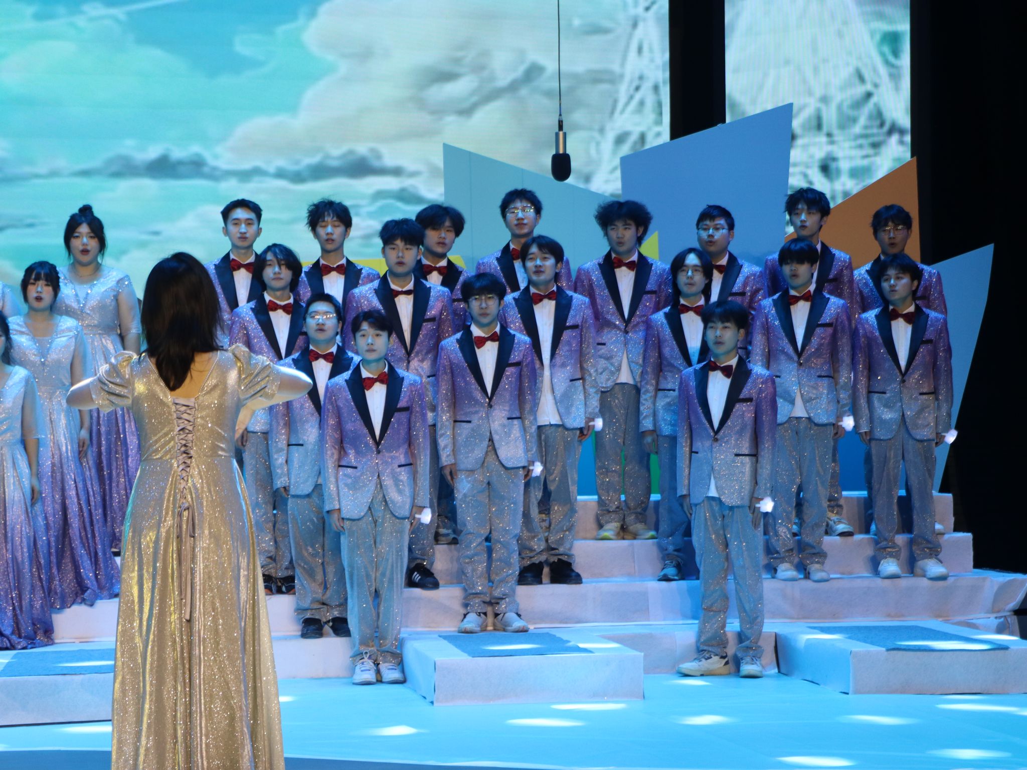 舞台上,灯光缓缓亮起,选手服装随音乐的节奏摆动,动人旋律与复杂和声展现出合唱独特魅力。每一个和声背后都彰显着团队默契。