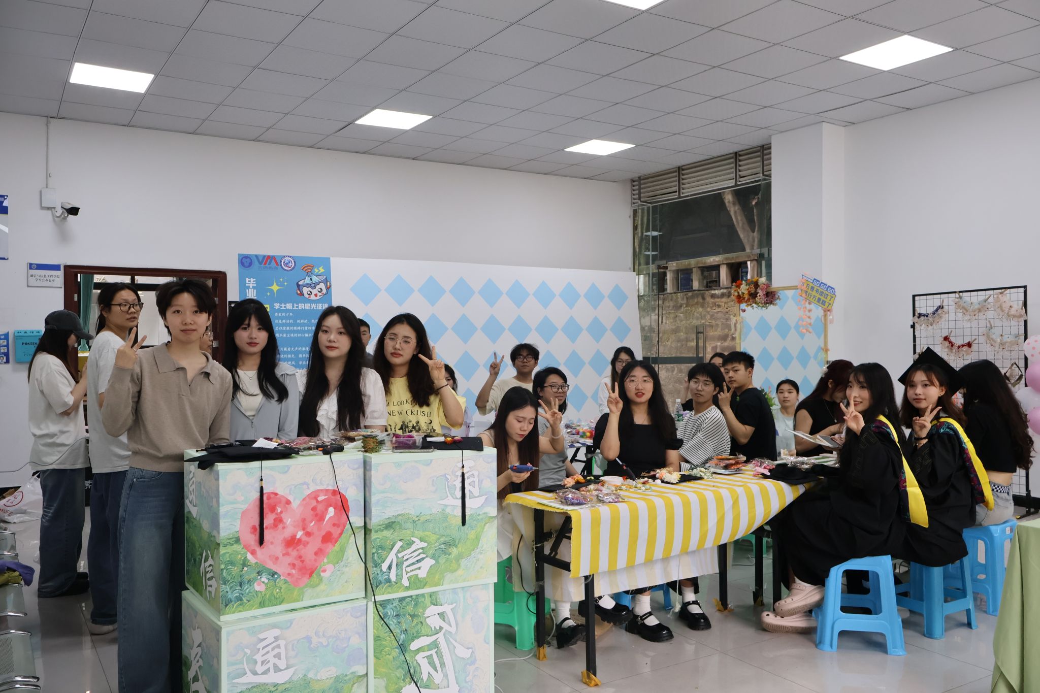 为了给毕业生们留下独特的校园记忆,表达对校园的眷恋与对未来的期许,2025年5月16日,通信与信息工程学院学生会艺术团在第二实验楼一楼举办了一场以“毕业帽上绘时光,云肩秀中绽芳华”为主题的创意毕业帽DIY活动,吸引了全体学生积极参与,他们以笔为媒,以帽为纸,在毕业帽和云肩上描绘青春的模样。