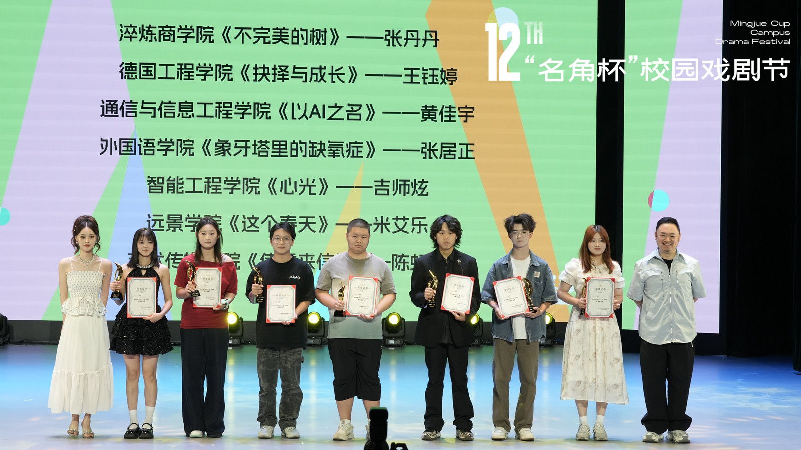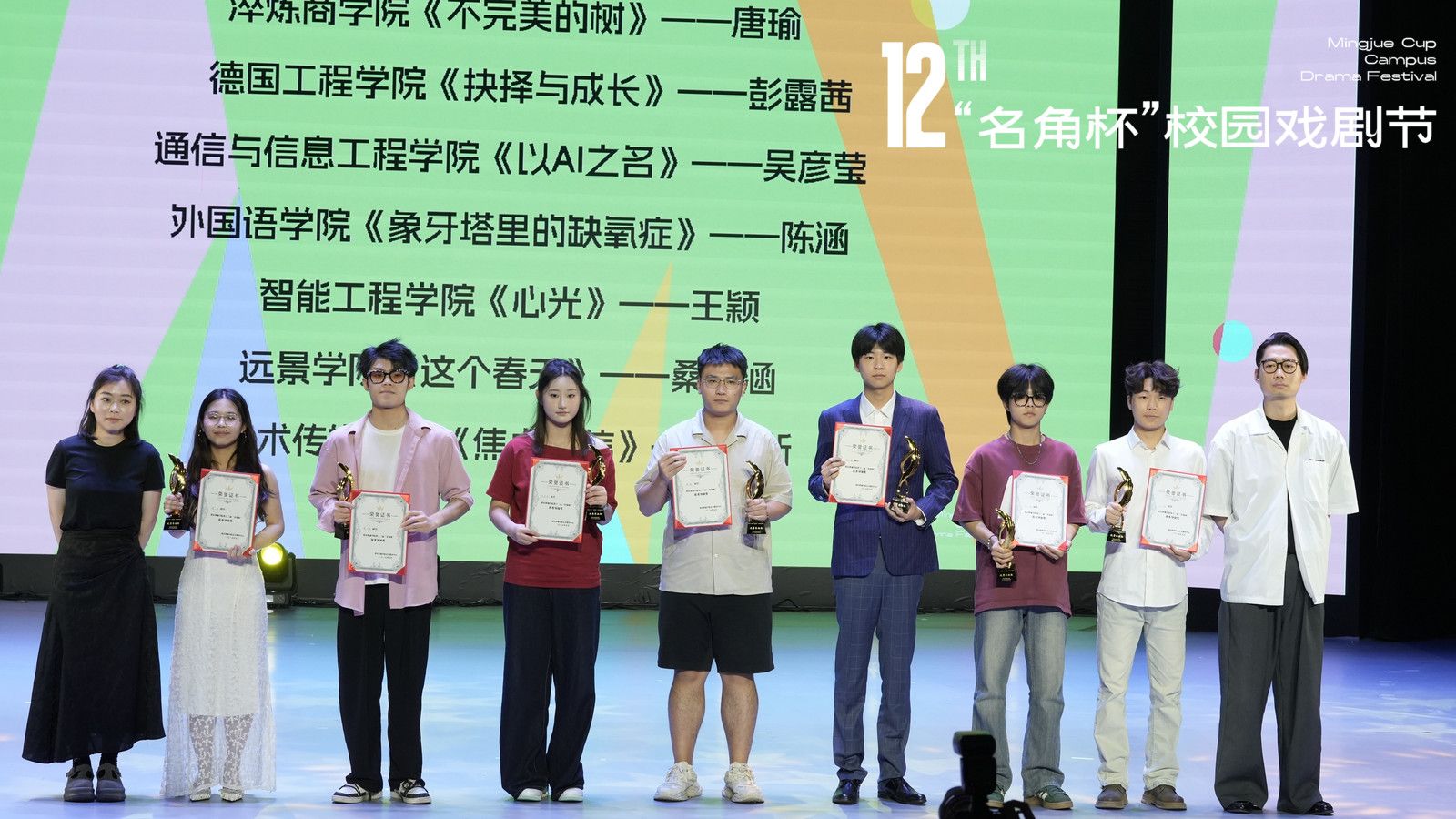 至此,重庆移通学院(合川校区)第十二届“名角杯”校园戏剧节已经落下帷幕。愿通信学子继续将通信风采发扬出去,在未来为梦想拼搏,为胜利奋斗,勇往直前!