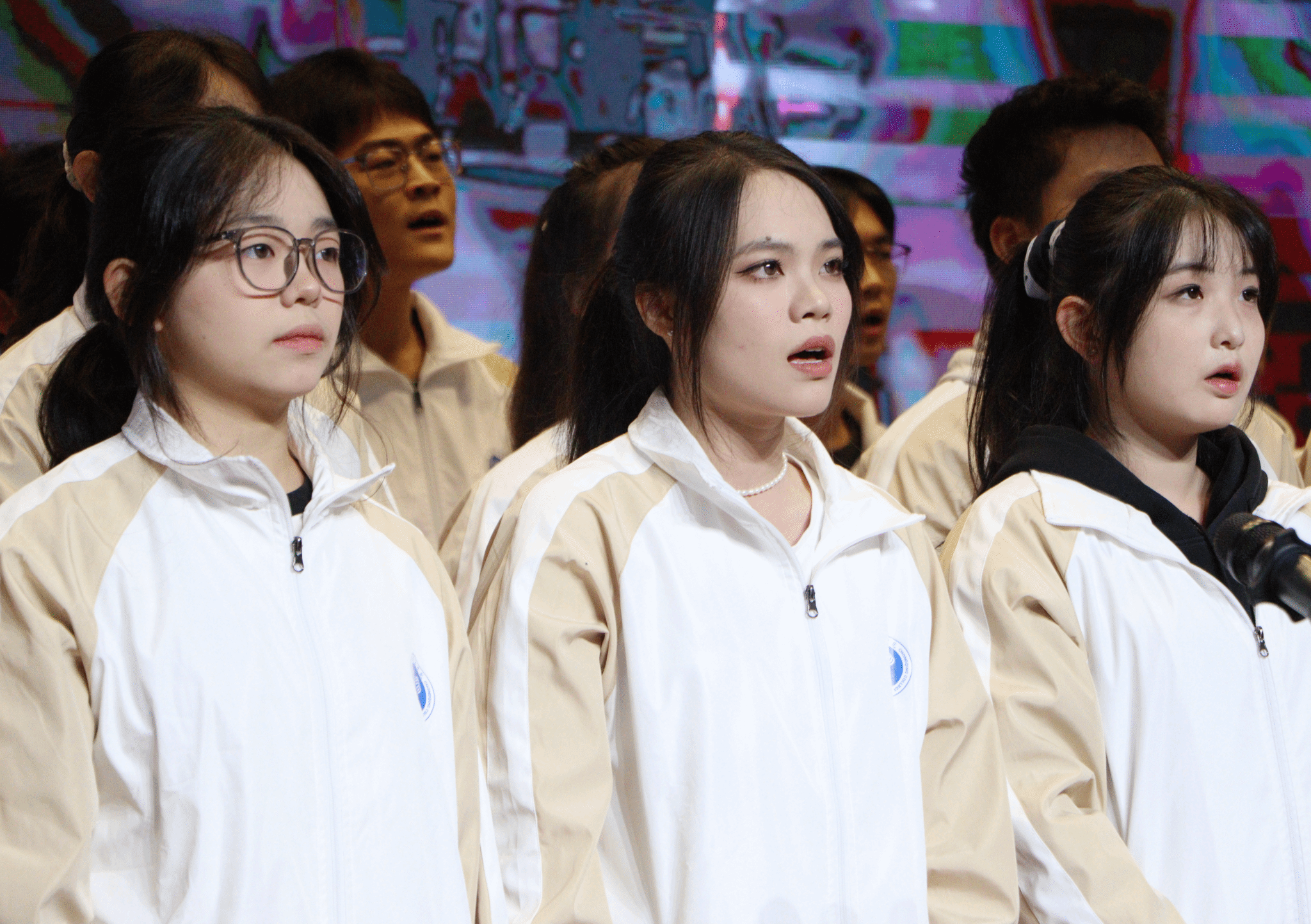 舞台上每一分钟的精彩呈现,都源于同学们台下不懈的排练与磨合。从选曲编排、声部配合,到情感表达与舞台表现,各班充分利用课余时间精心准备,将集体智慧融入每一个音符。各声部默契协作,器乐伴奏相得益彰,共同编织出层次丰富、感人至深的合唱乐章。同学们用清澈的眼神与自信的笑容,展现了团结协作、积极向上的精神风貌。
