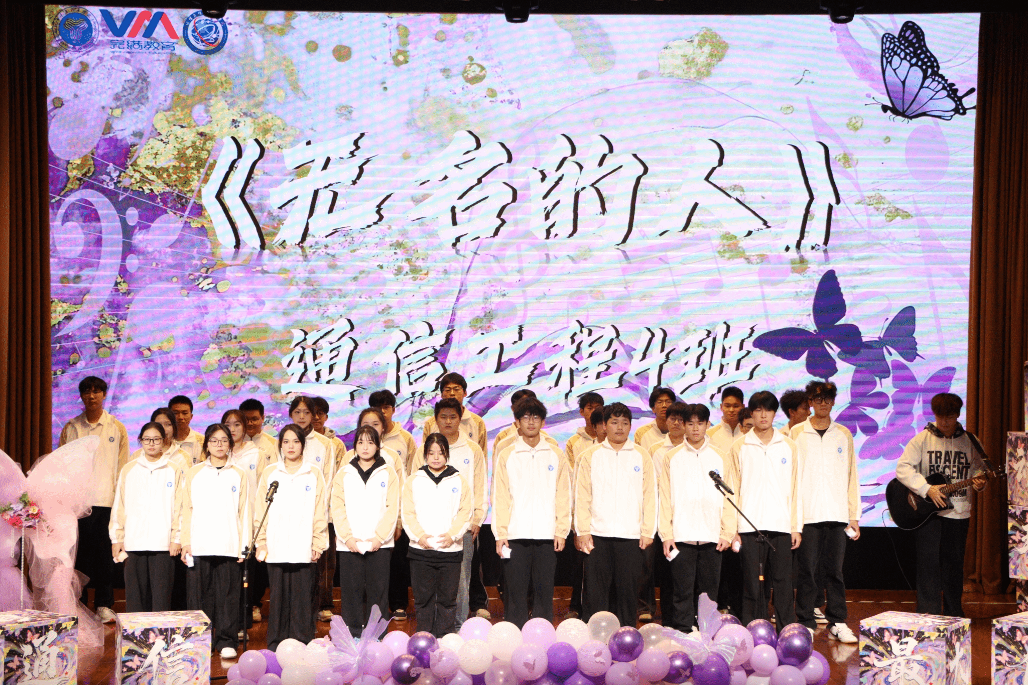 十支参赛队伍依次登台,他们不仅用歌声传递情感,更以选曲诠释态度。通信工程专升本1班带来的《稻香》以清新旋律唤起童年记忆;通信工程4班献唱的《无名的人》则以深情演绎触动了每个人心中最柔软的地方。