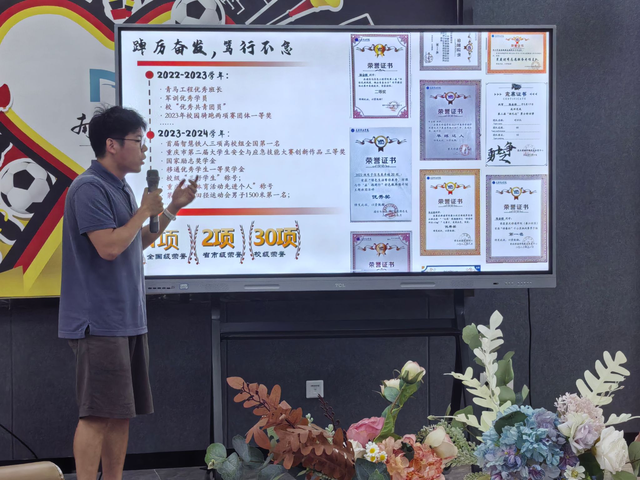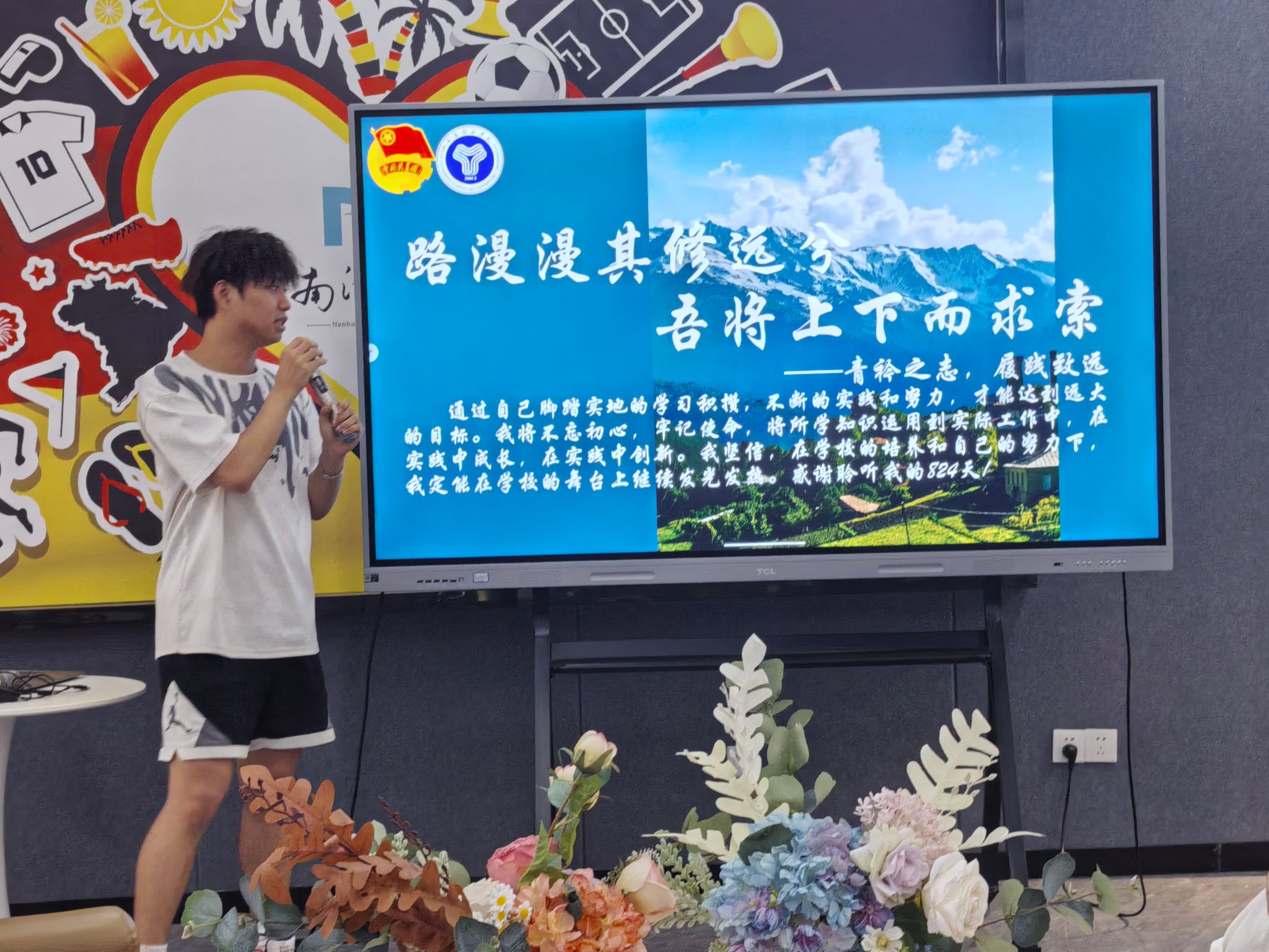 在经验分享环节,陈金桥学长首先回顾了其从普通学生到名列前茅的成长历程。他详细介绍了大一至大三期间,如何通过积极参与各类课外活动,科学规划并有效提升完满学分的实践经验。陈学长结合自身经历,系统分享了提升学业成绩与综合素质测评成绩的有效方法与策略。